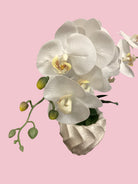 Double White Orchid In Wavy Vase