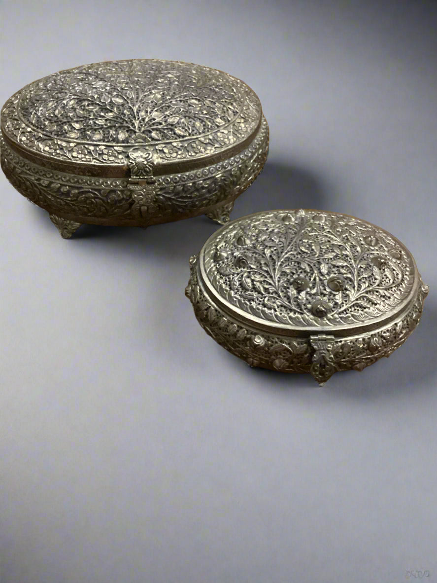 Pair Oval Silver Box Set