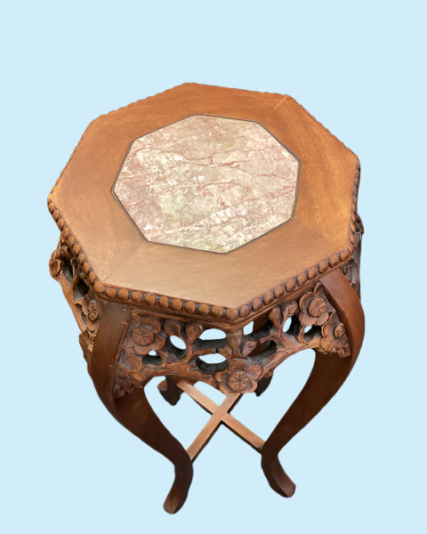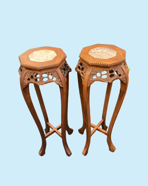 Marble Inset Top Carved Pedestal Pair
