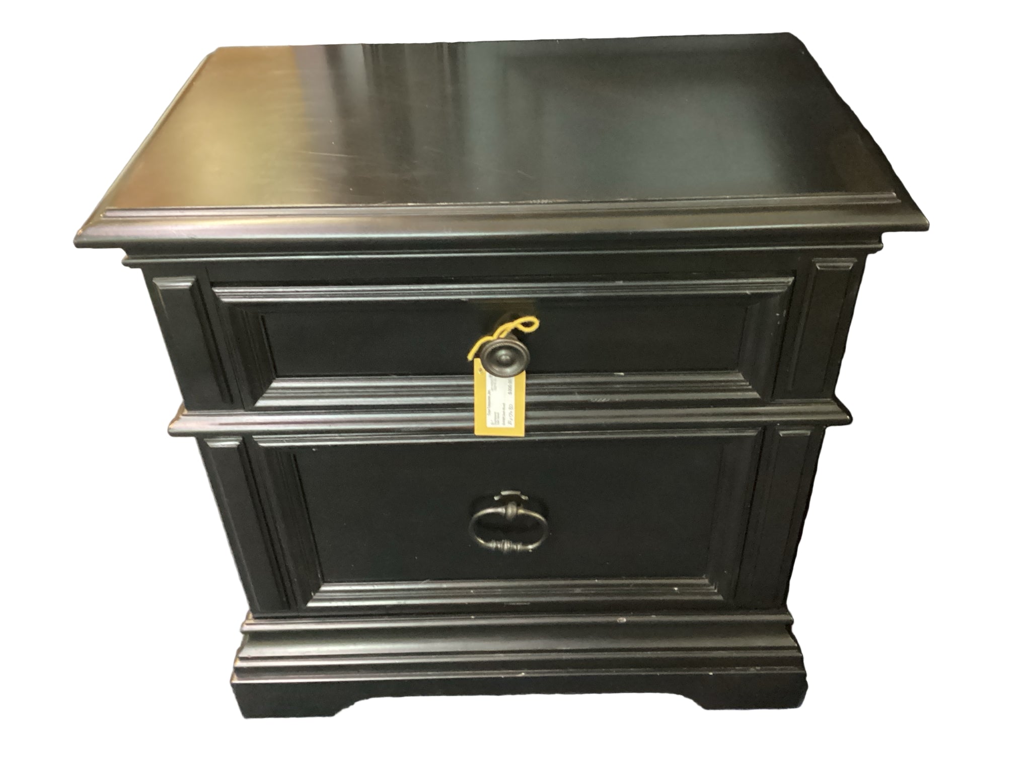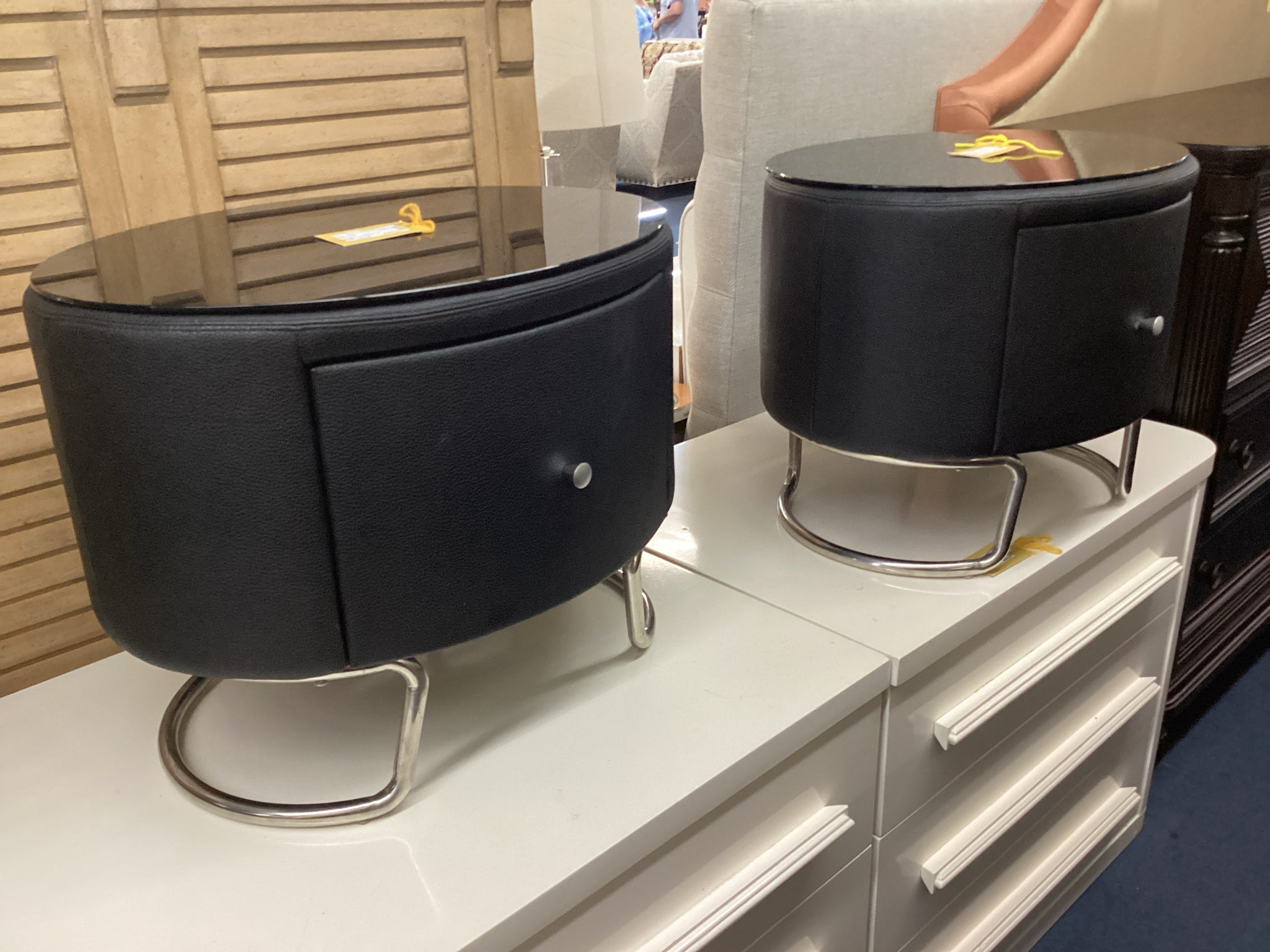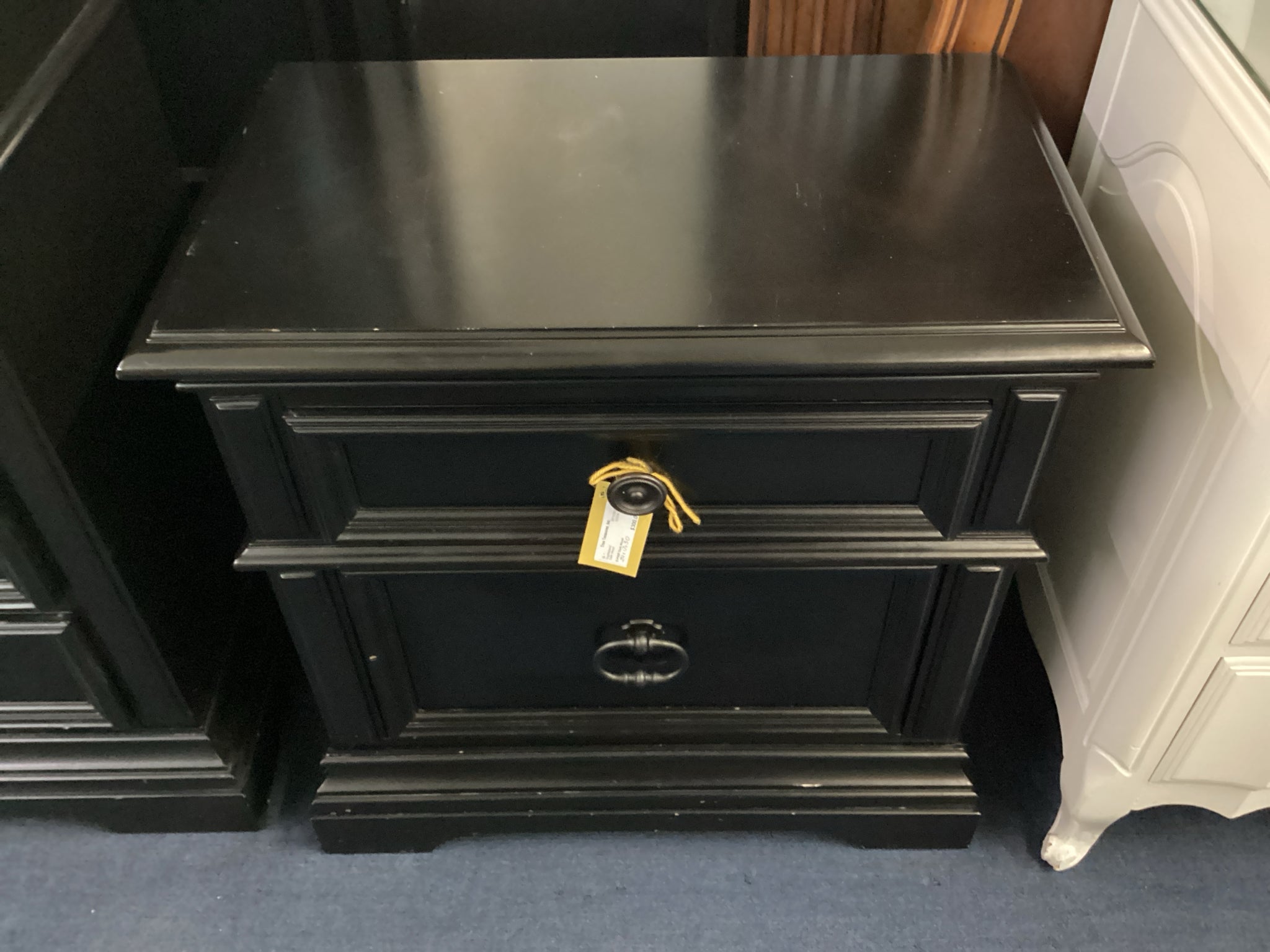 Pair Of Dark Wood Base Nightstands With Stone Tops
