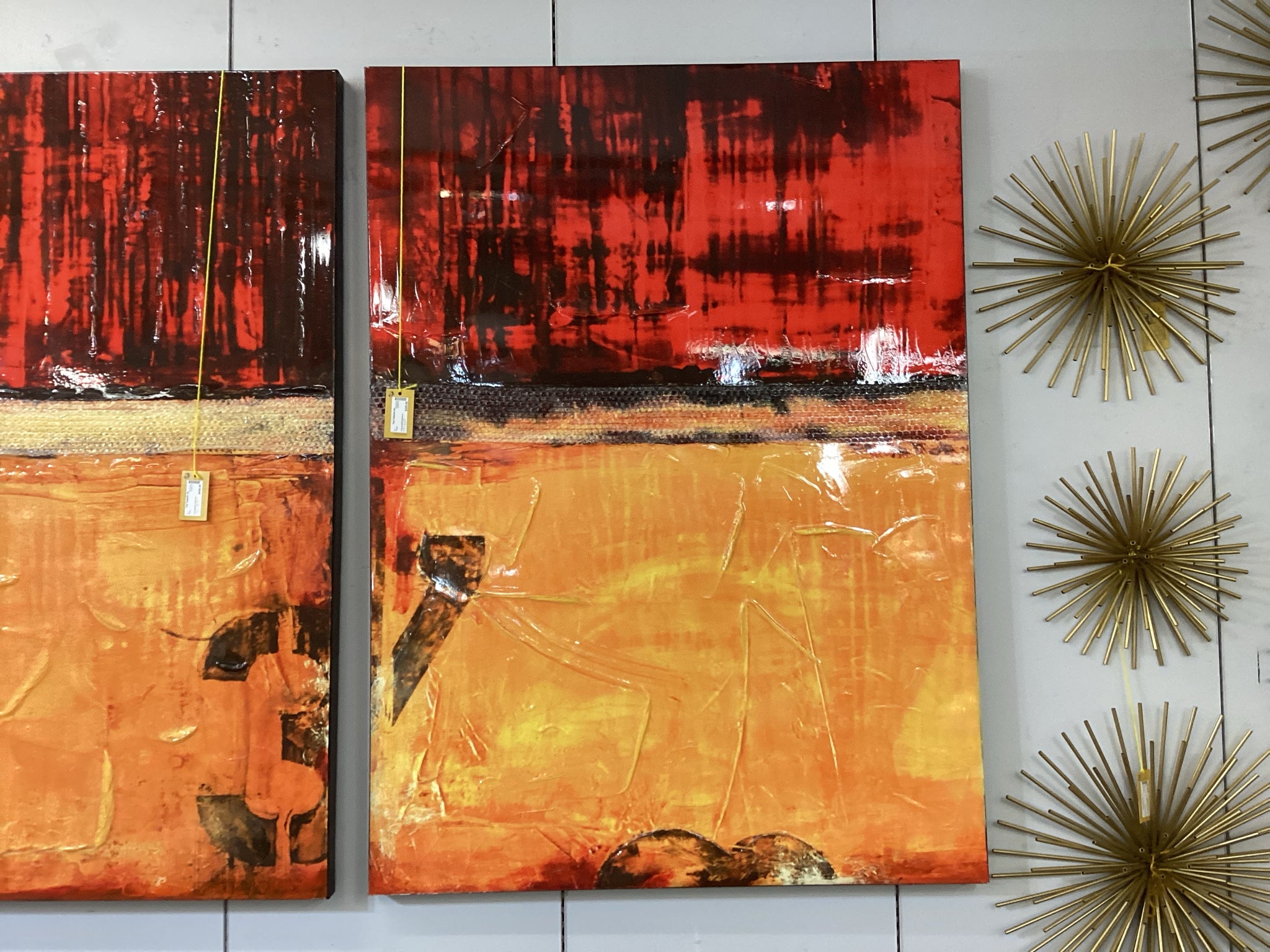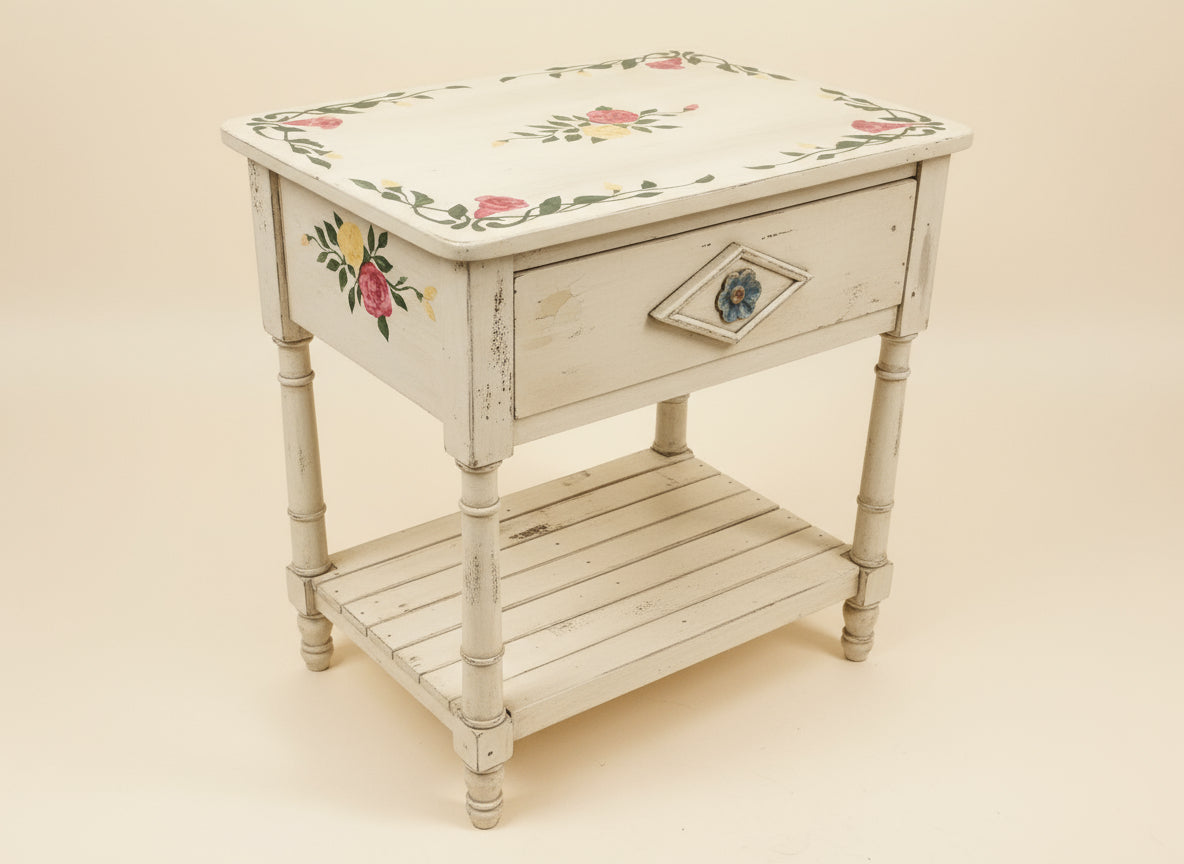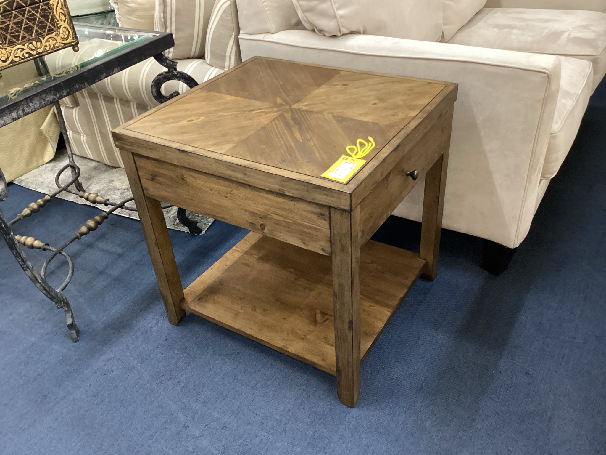 Pair Of Dark Wood Base Nightstands With Stone Tops