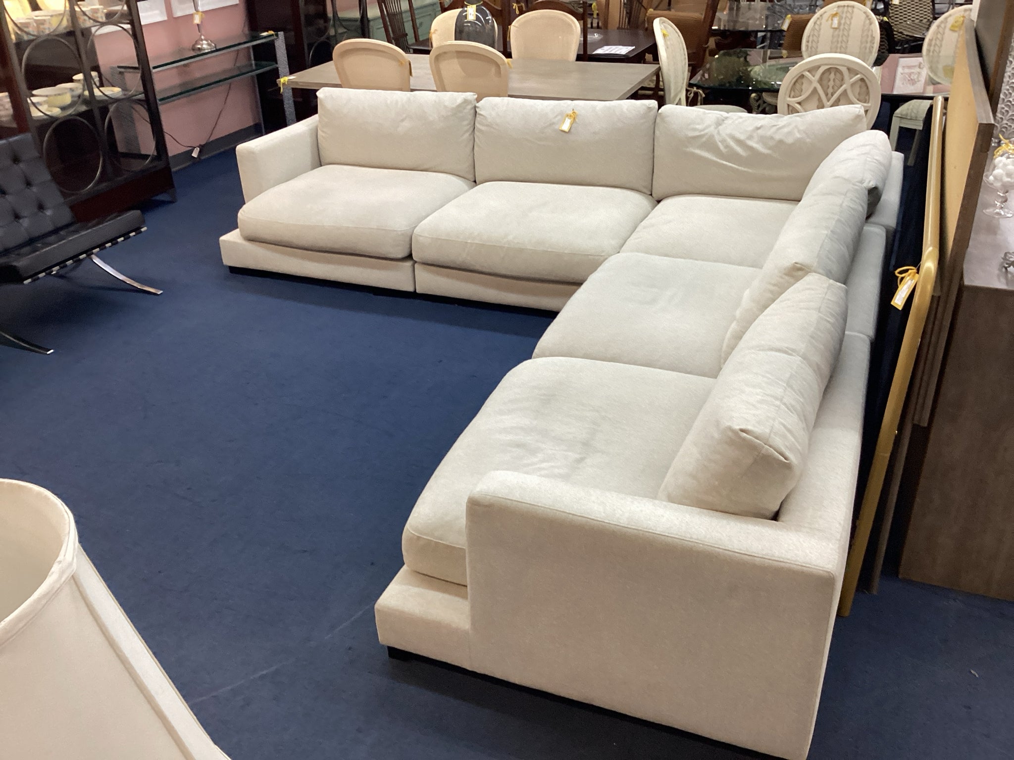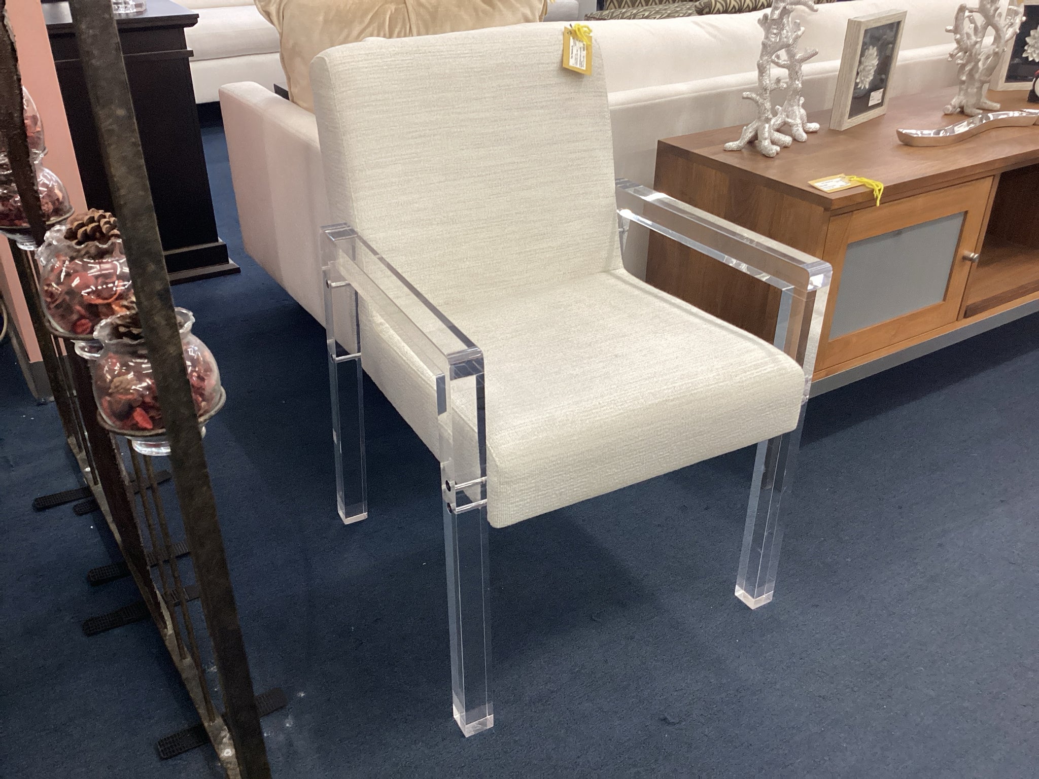 Pair Of Bernhardt White Fabric Living Room Chair With Lucite Arms