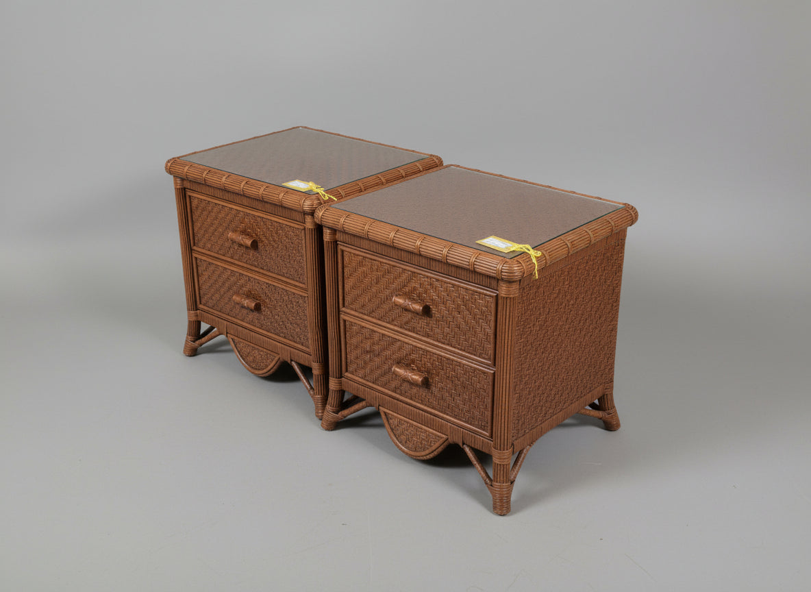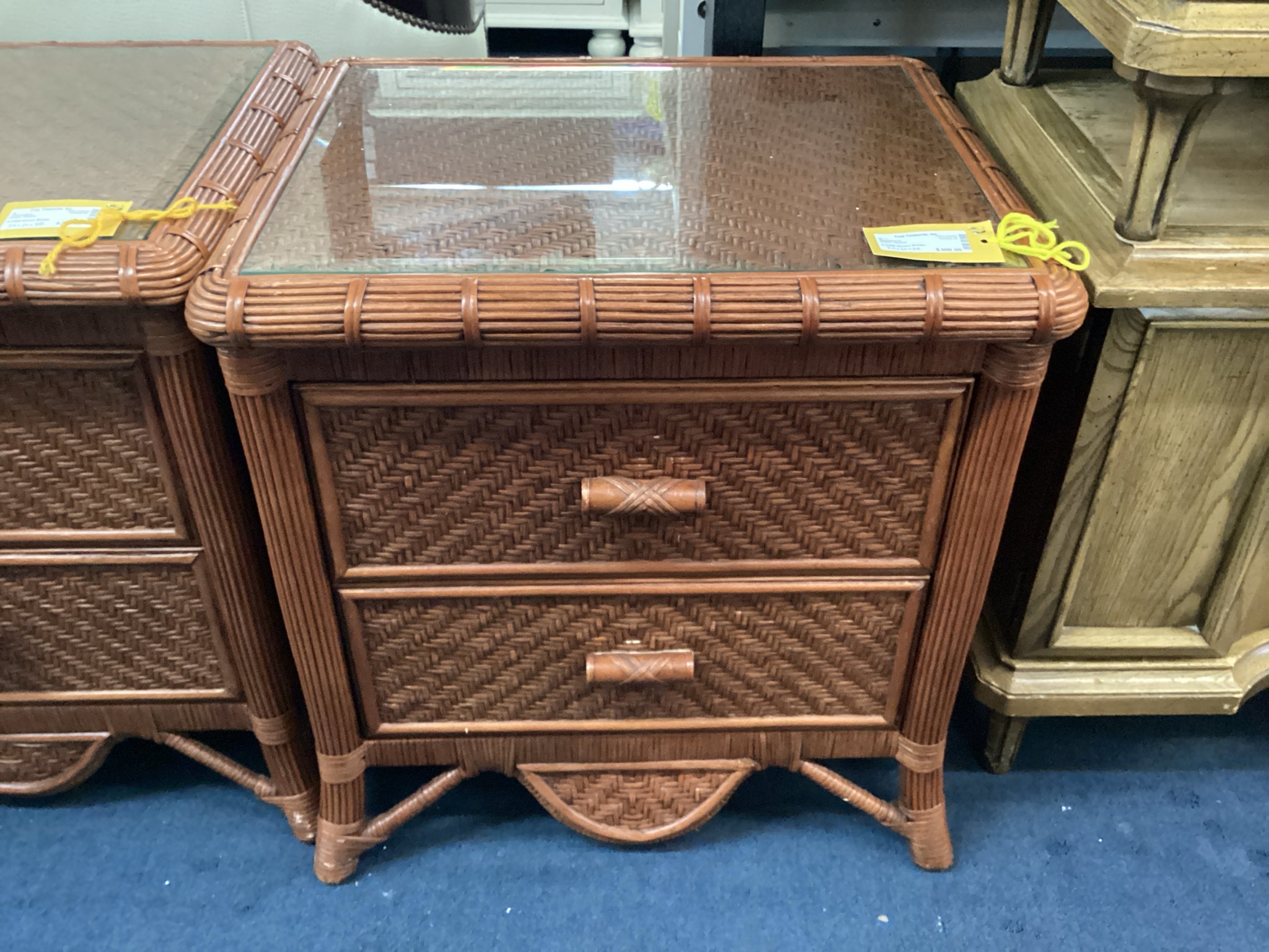 Pair Of Dark Wood Bamboo And Wicker End Tables