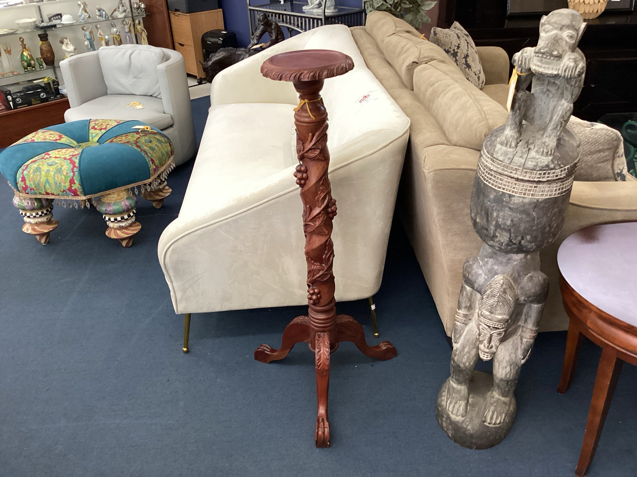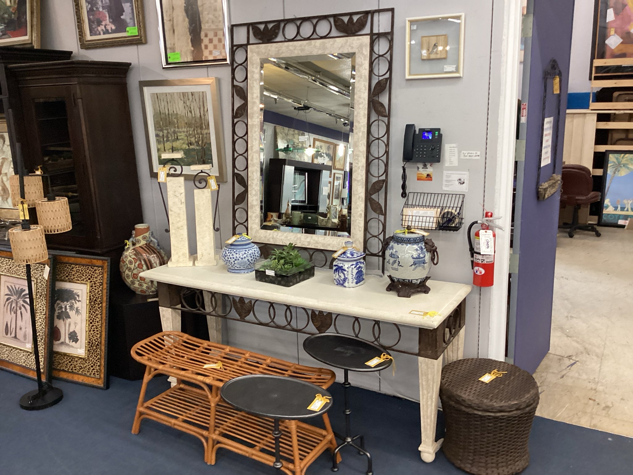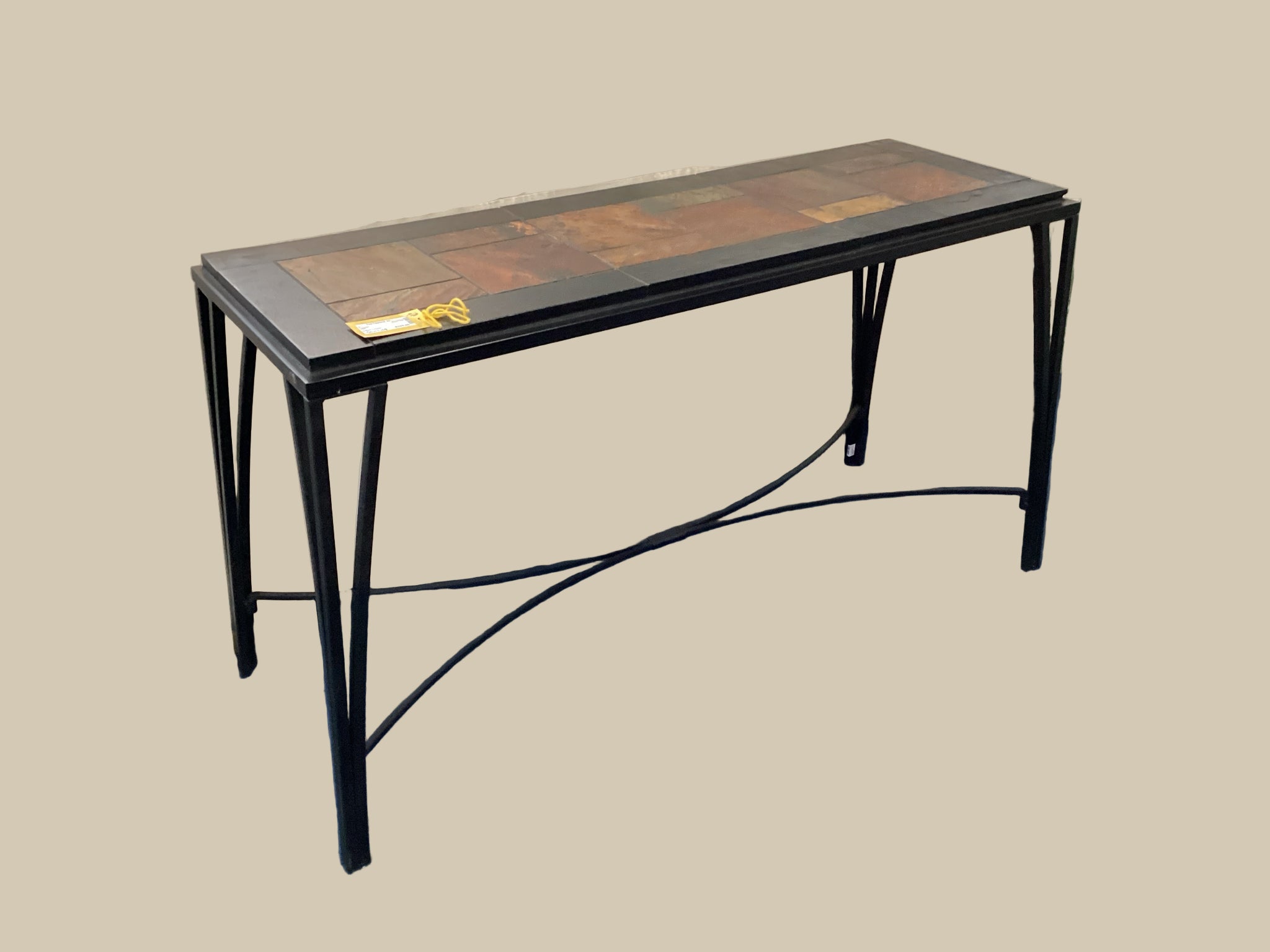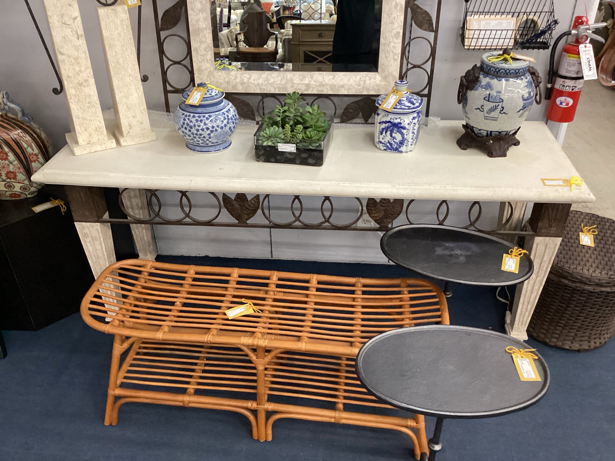 Square Light Wood Coffee Table With Faux Stone Top And Four Stools
