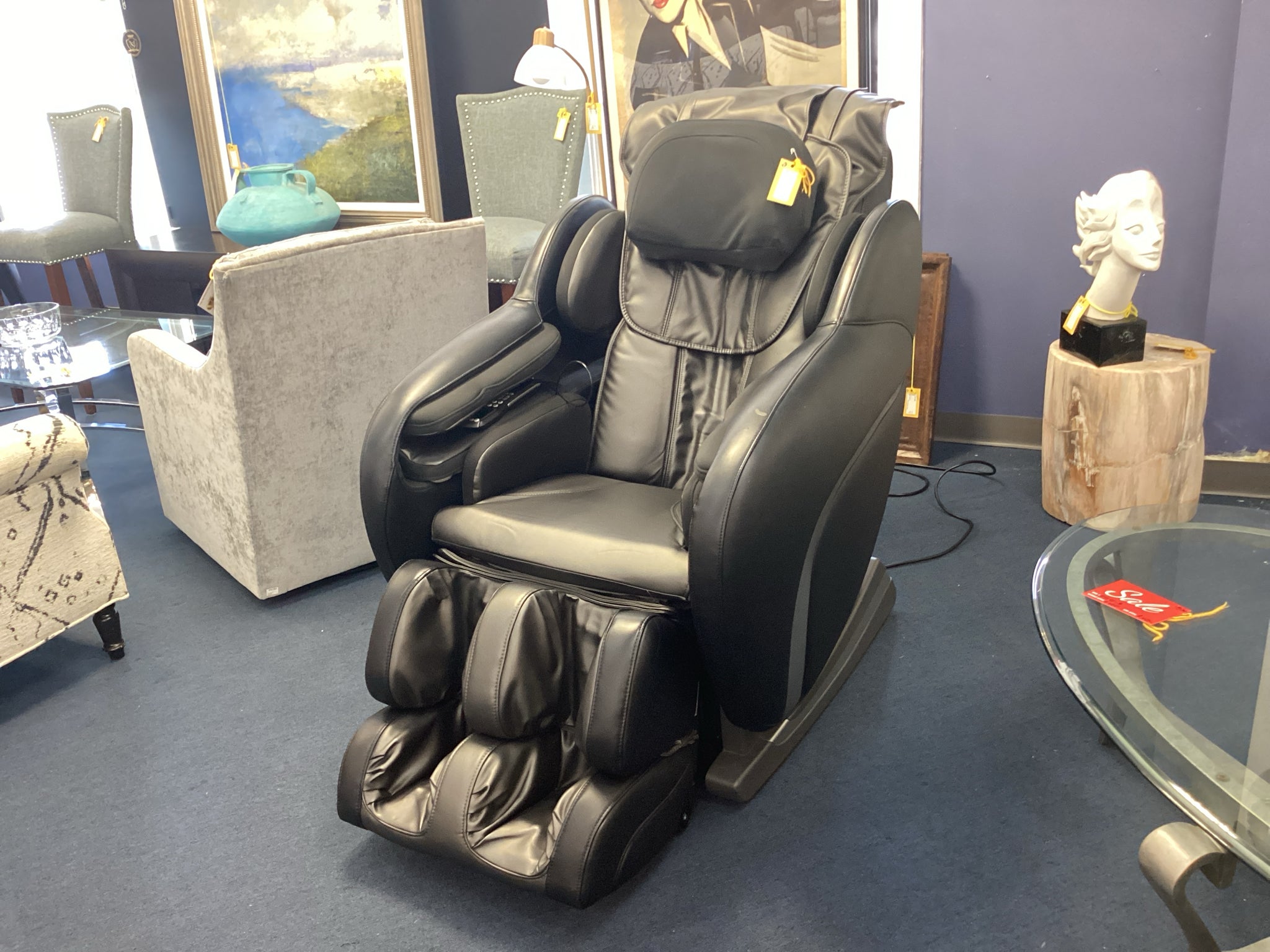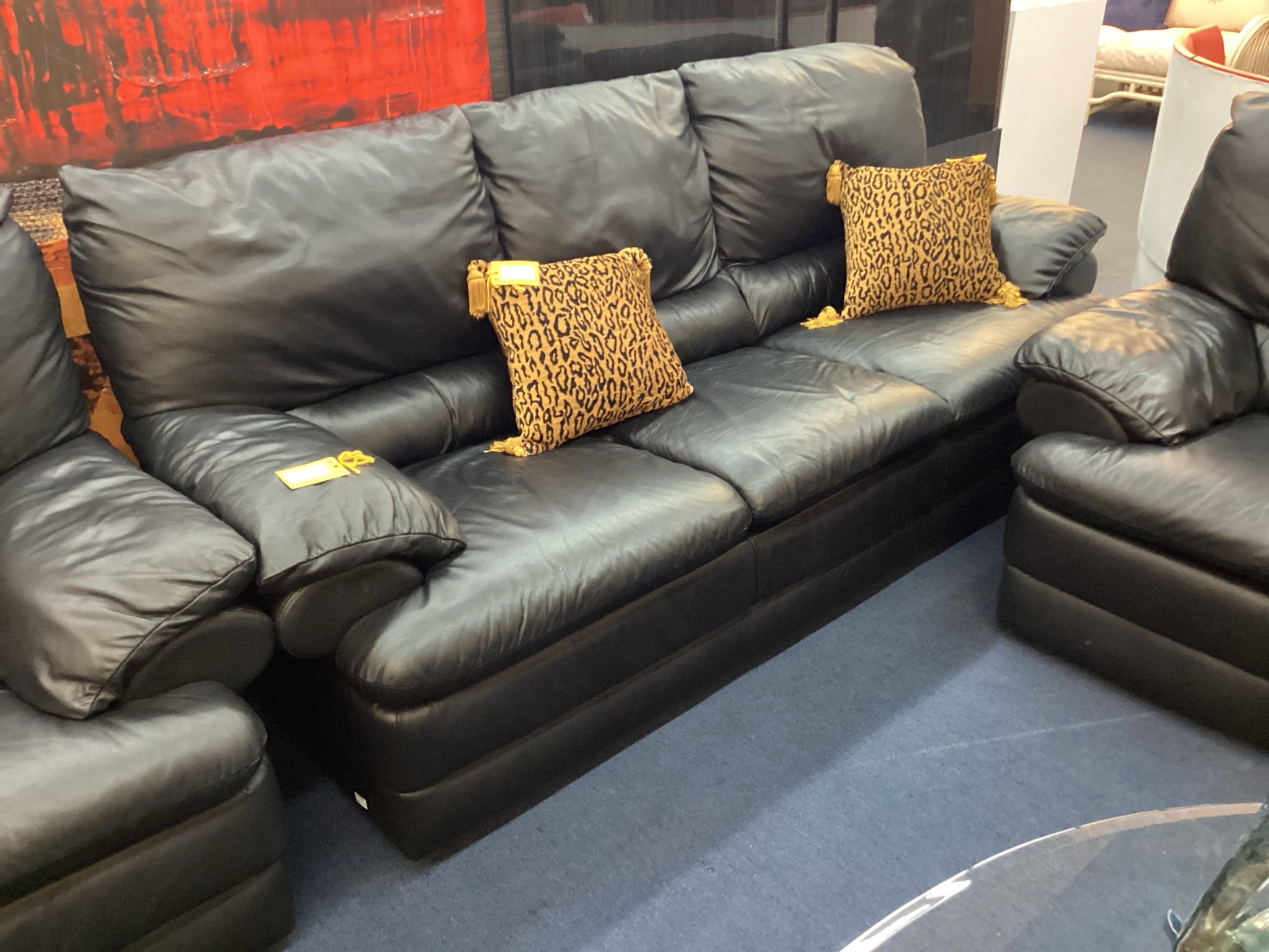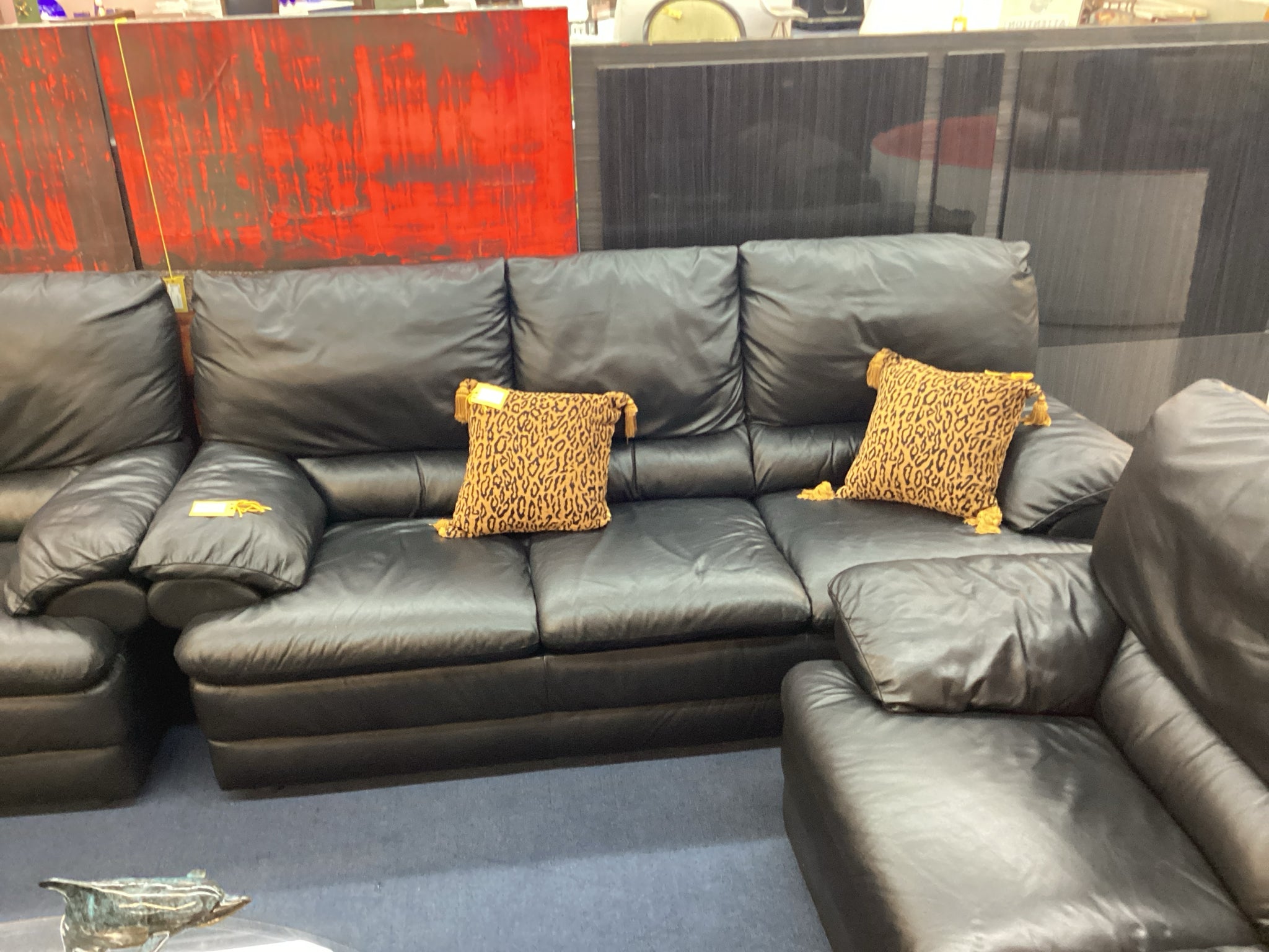 Black Faux Alligator Table With Eight Gray And Black Chairs