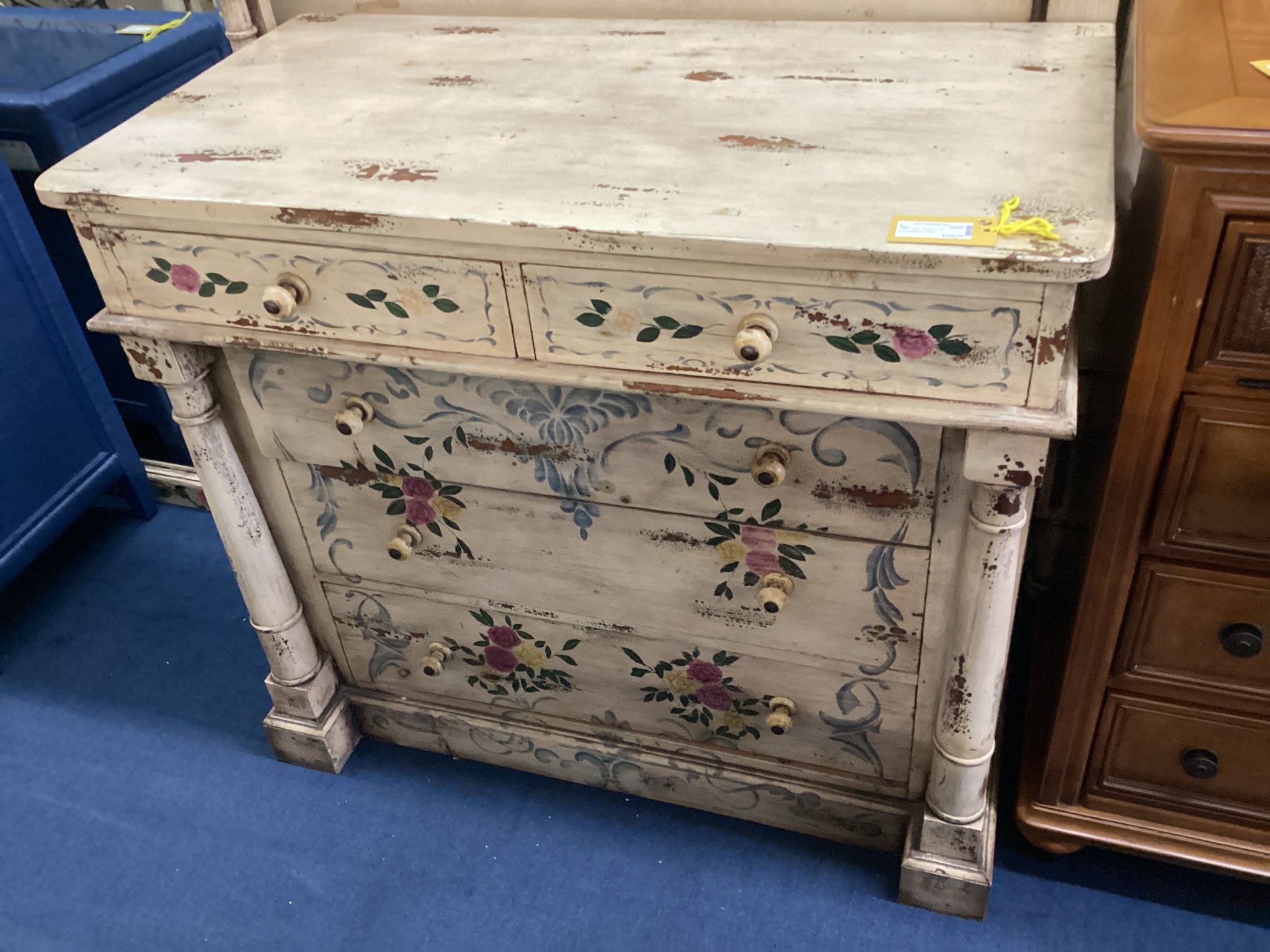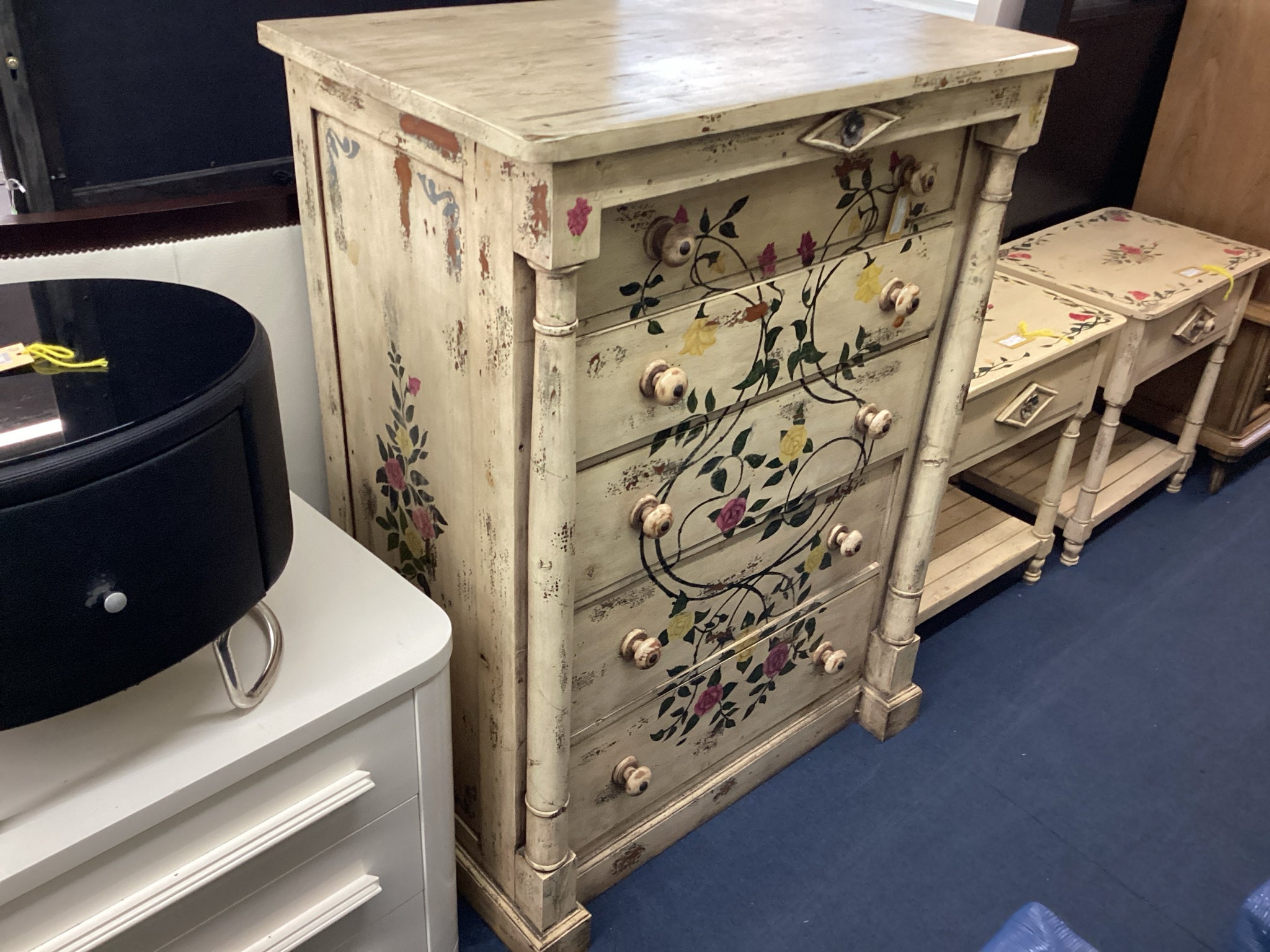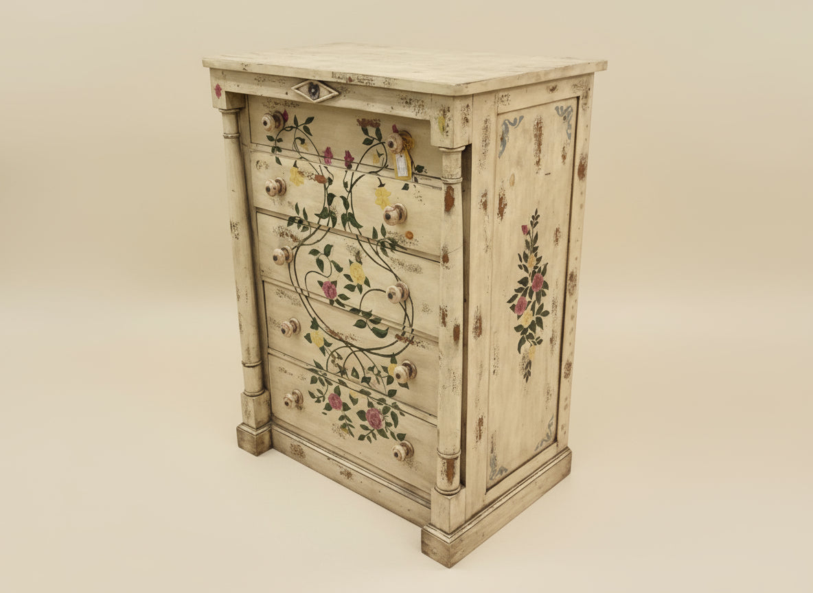 Cream Floral Chest With Five Drawers