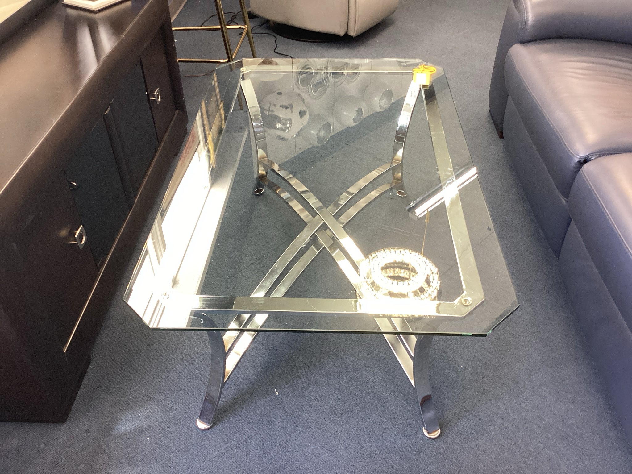 Chrome Base Coffee Table With Glass Top