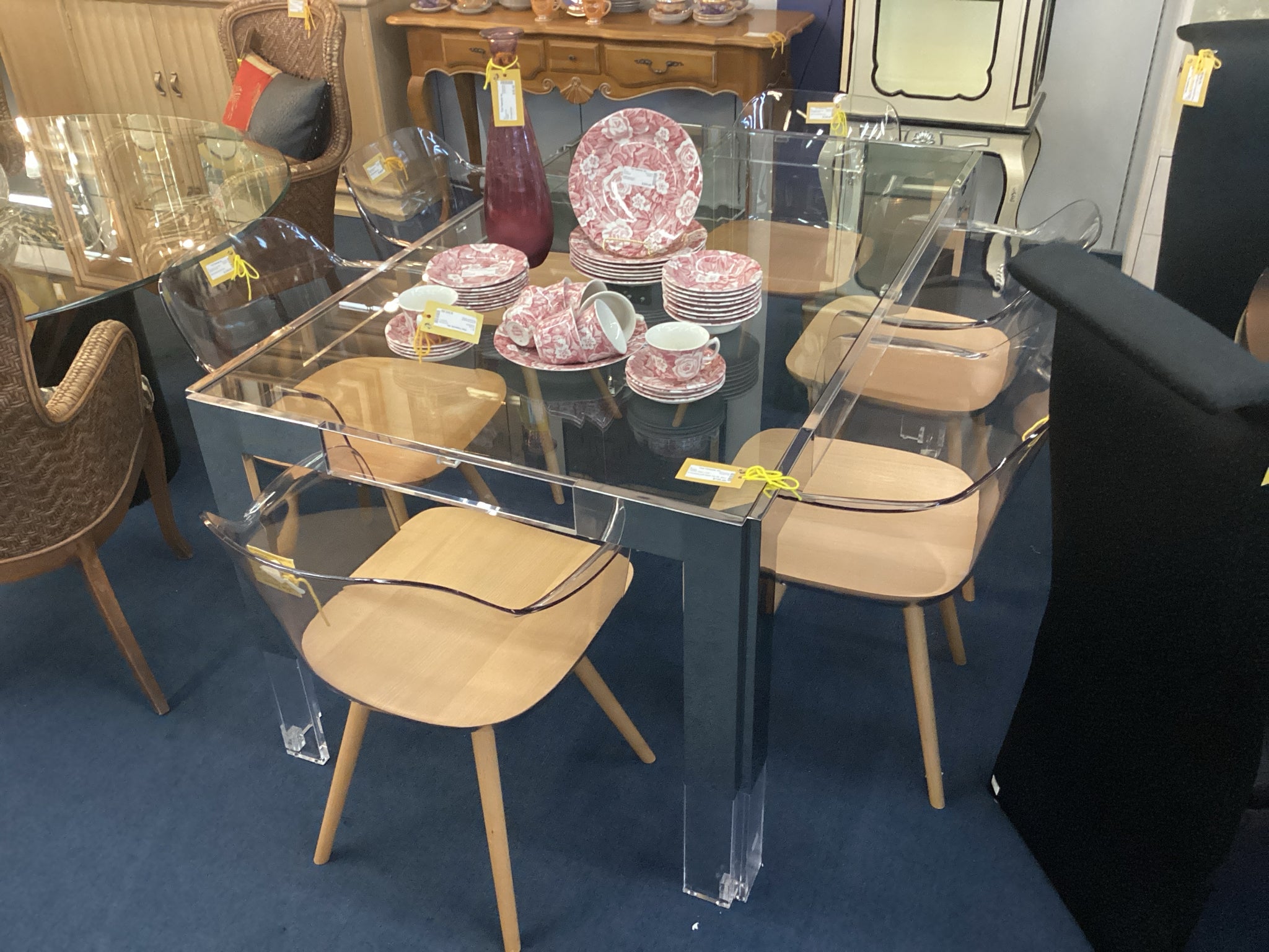 Chrome And Lucite Table With Glass Top