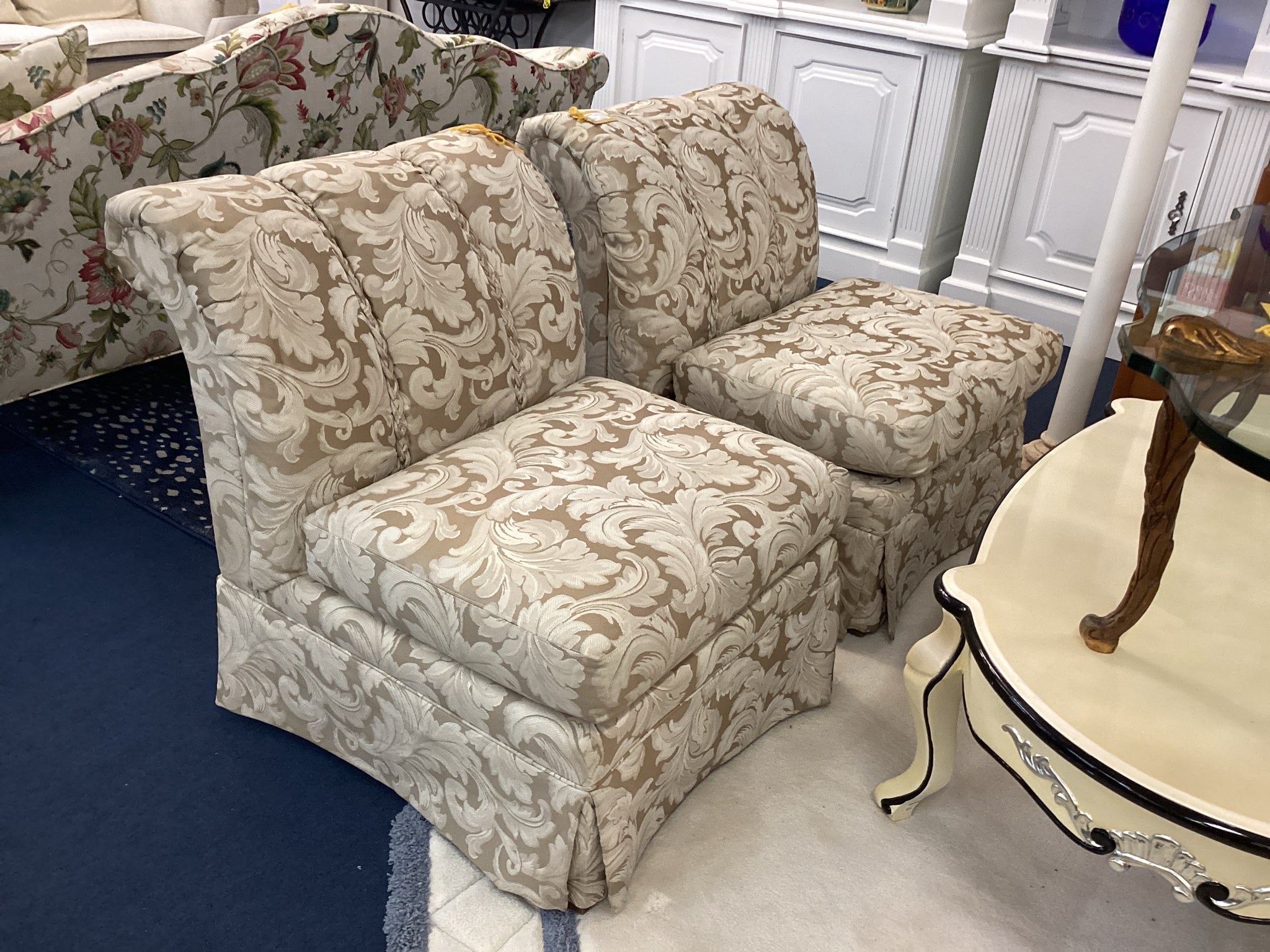 Cream And Tan Patterned Slipper Living Room Chair