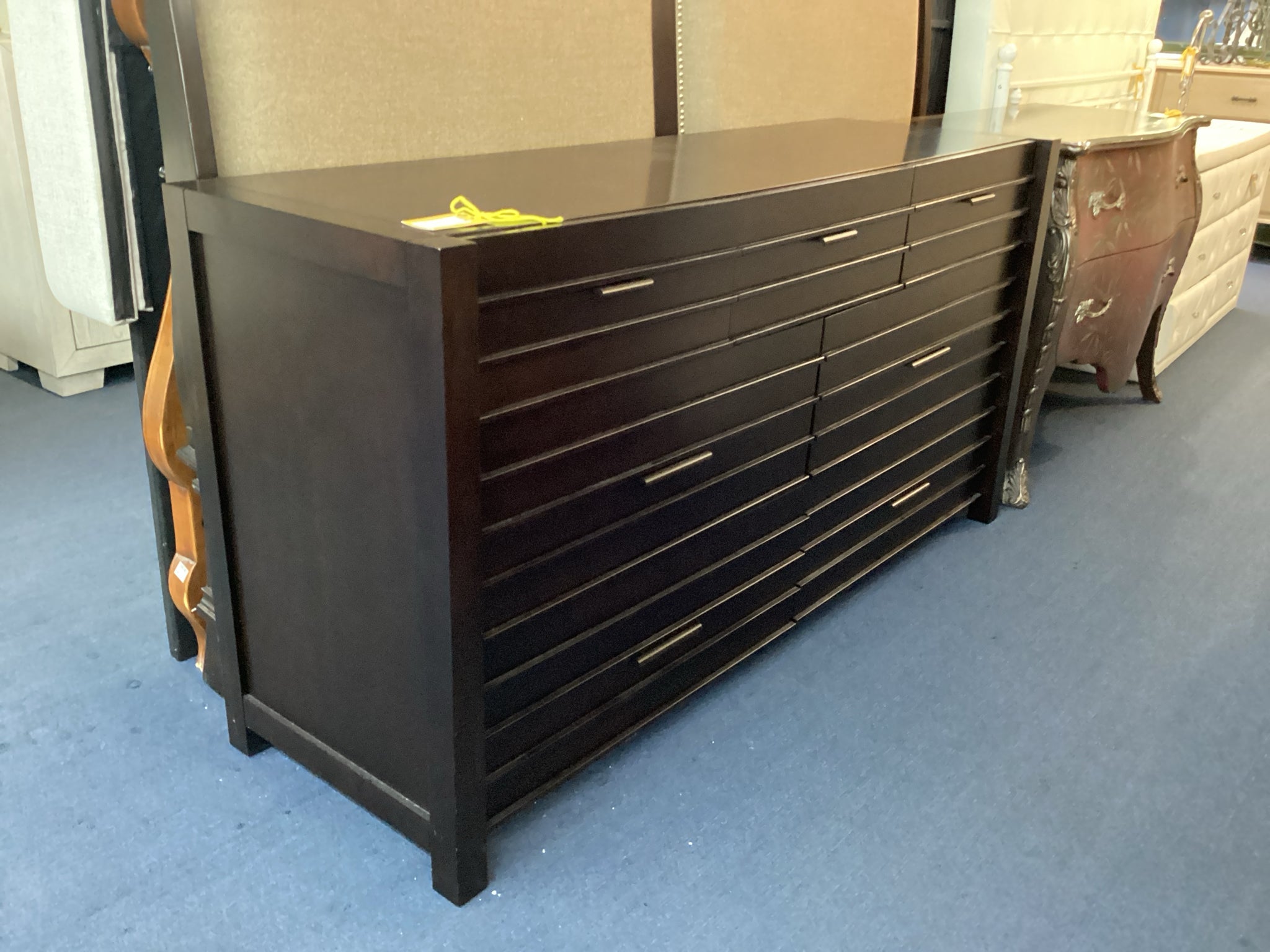 Dark Wood Server Cabinet With Two Doors And Three Drawers