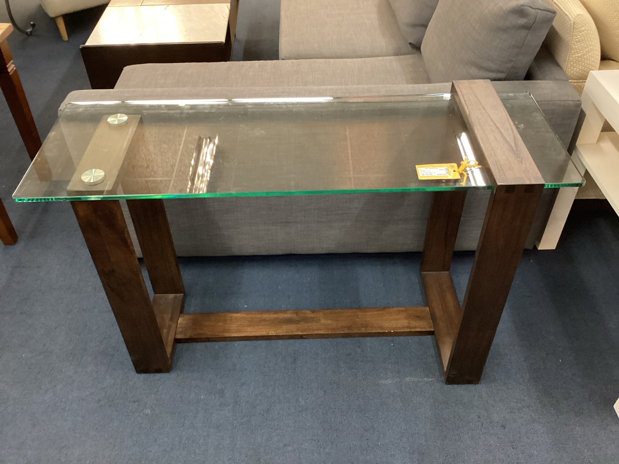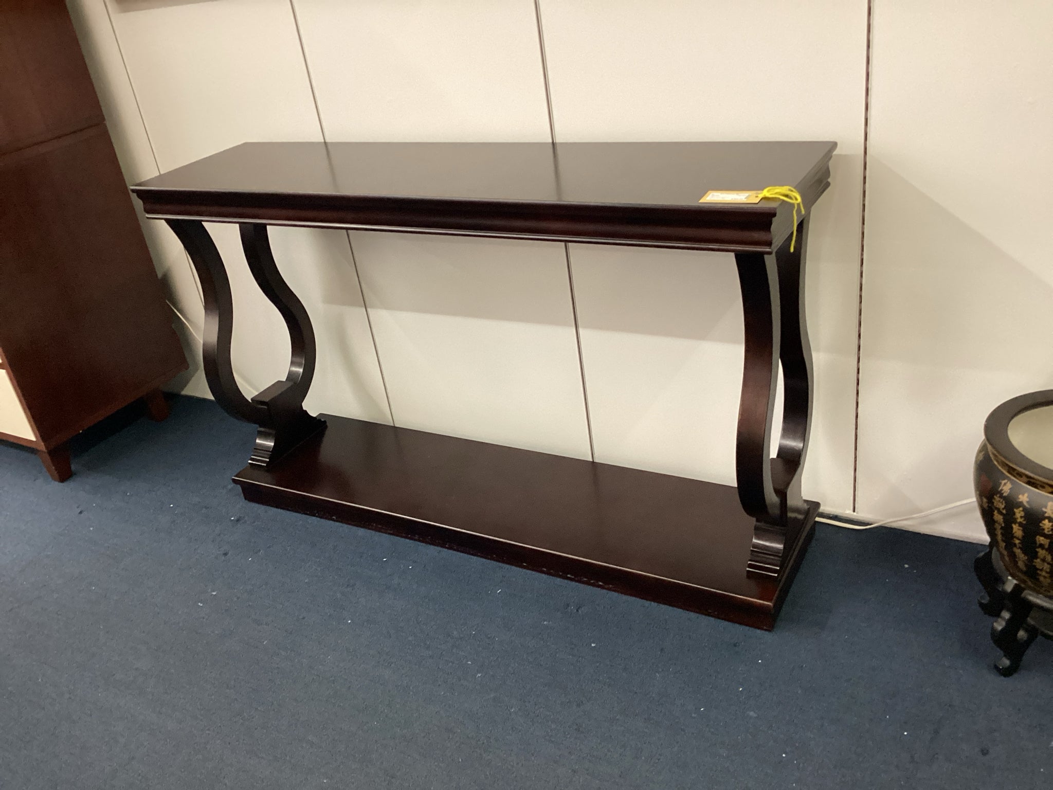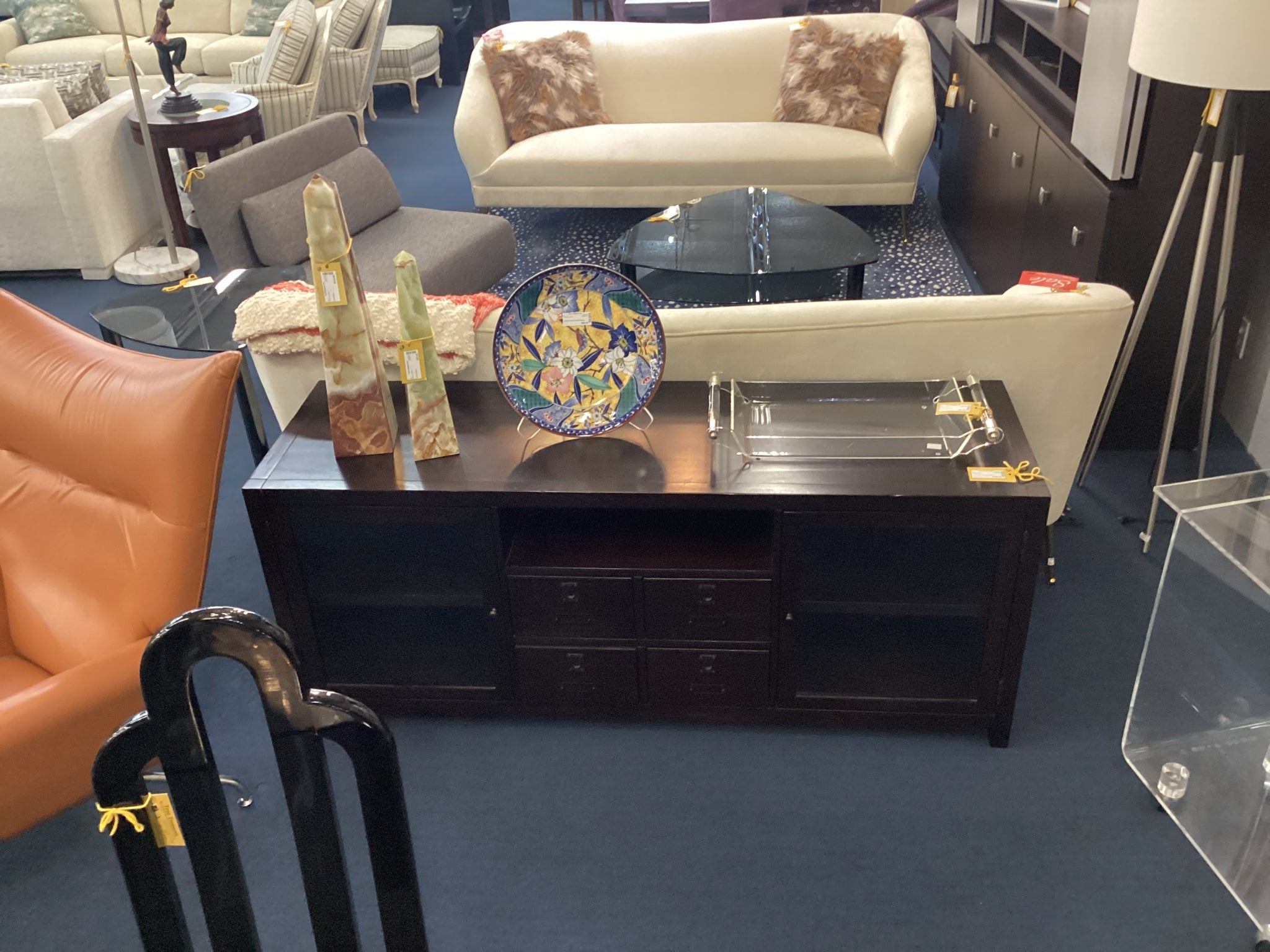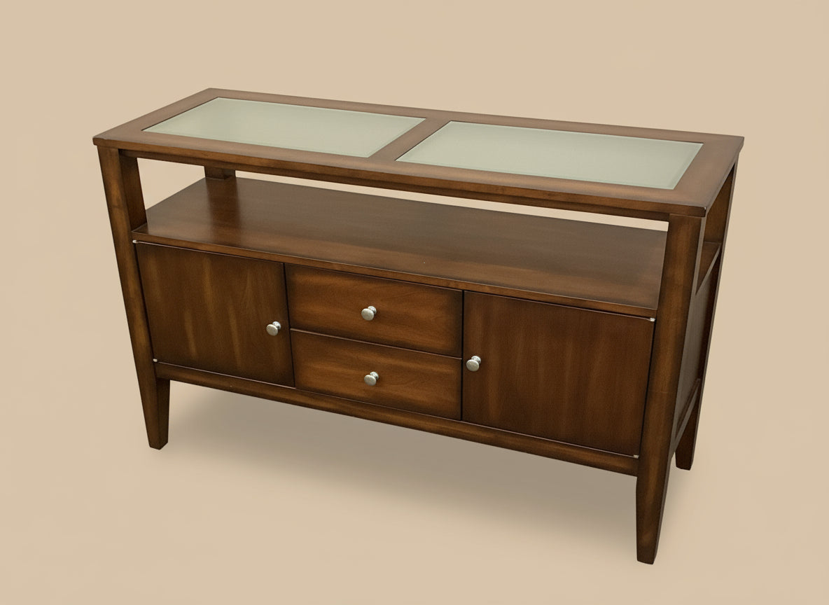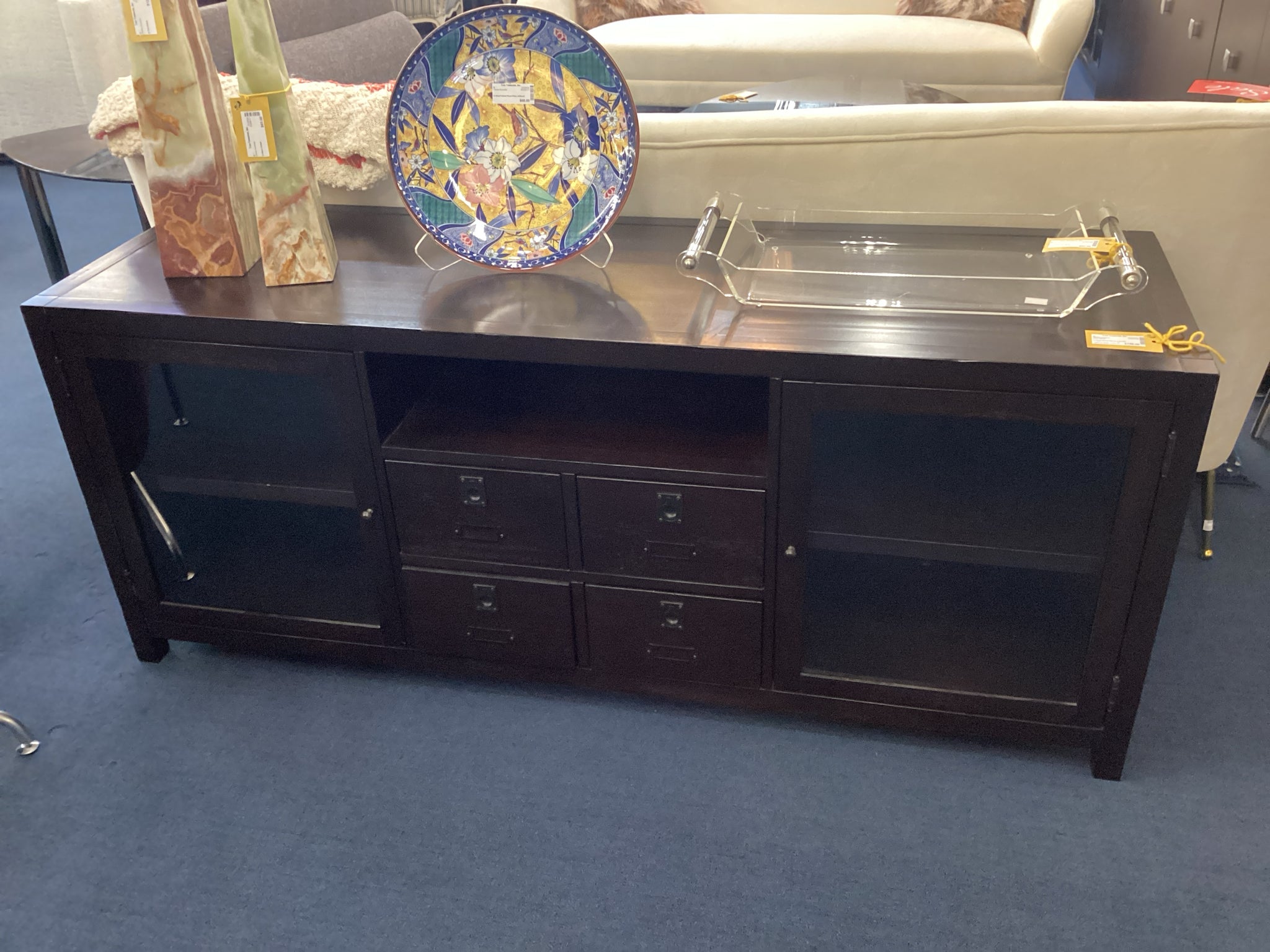 Dark Wood Console With Two Doors Two Drawers And Glass Inserts