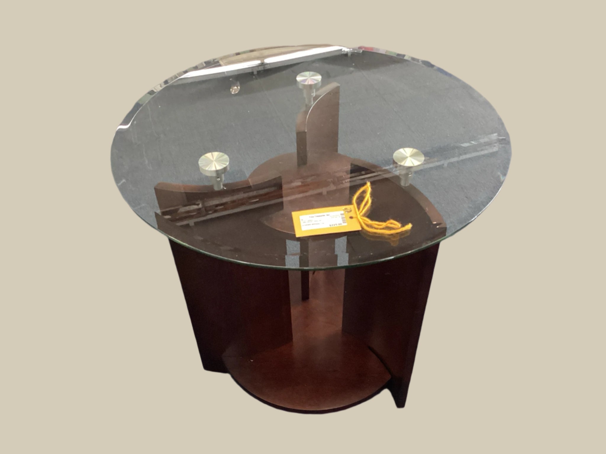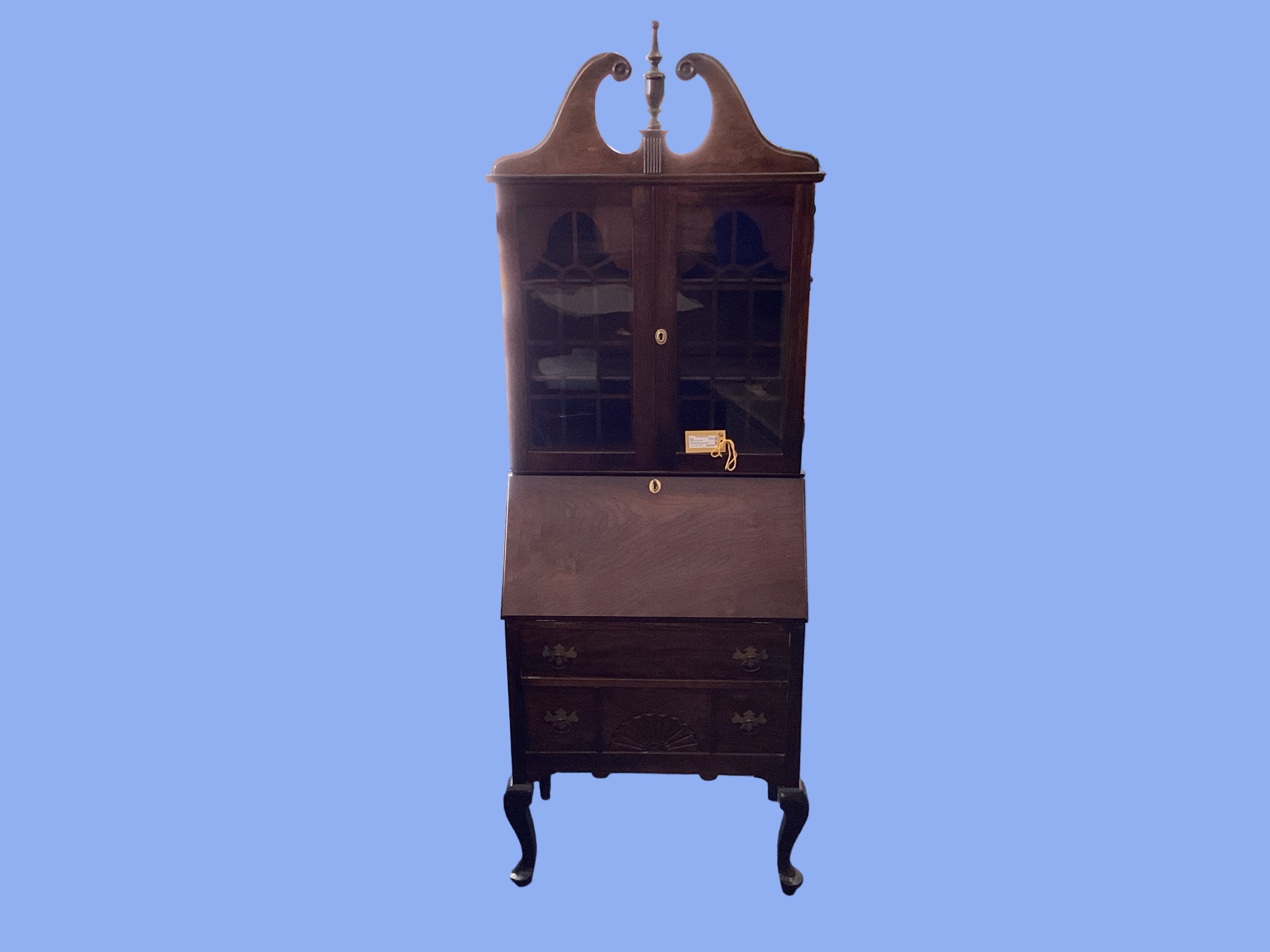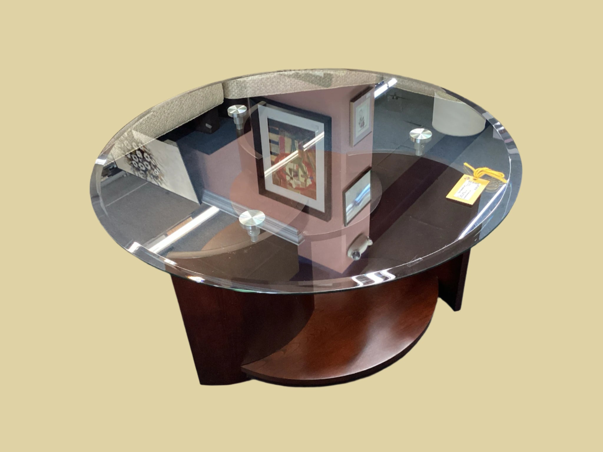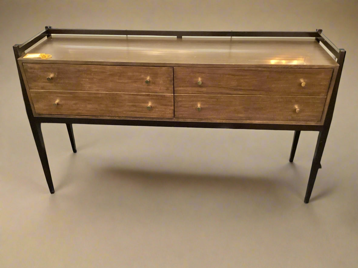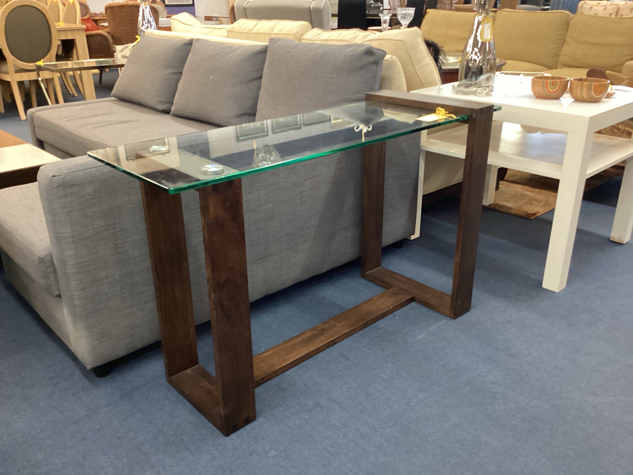 Dark Wood Console With Two Doors Two Drawers And Glass Inserts