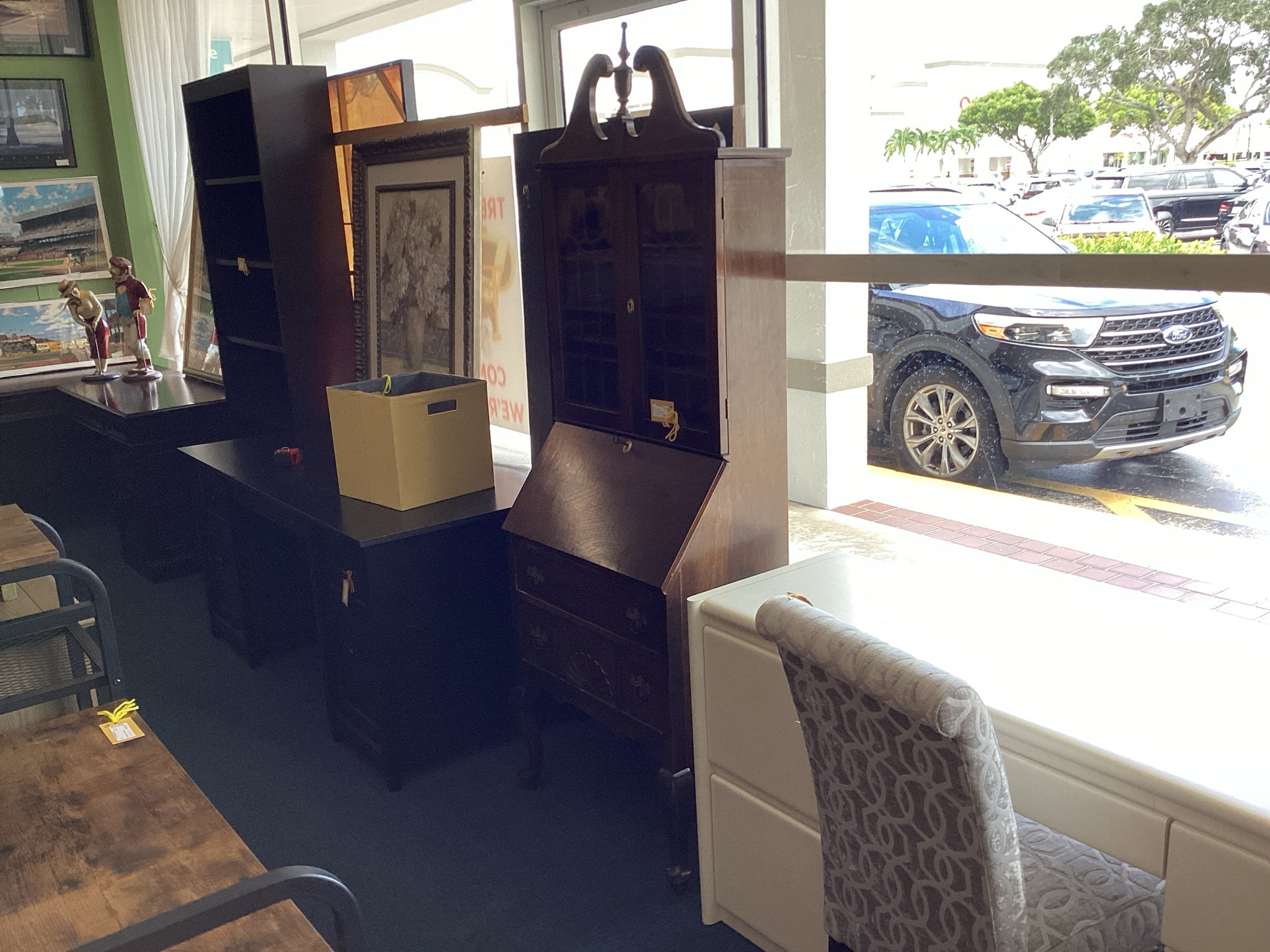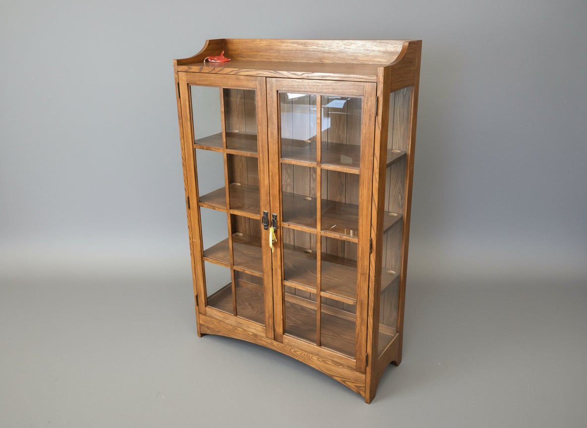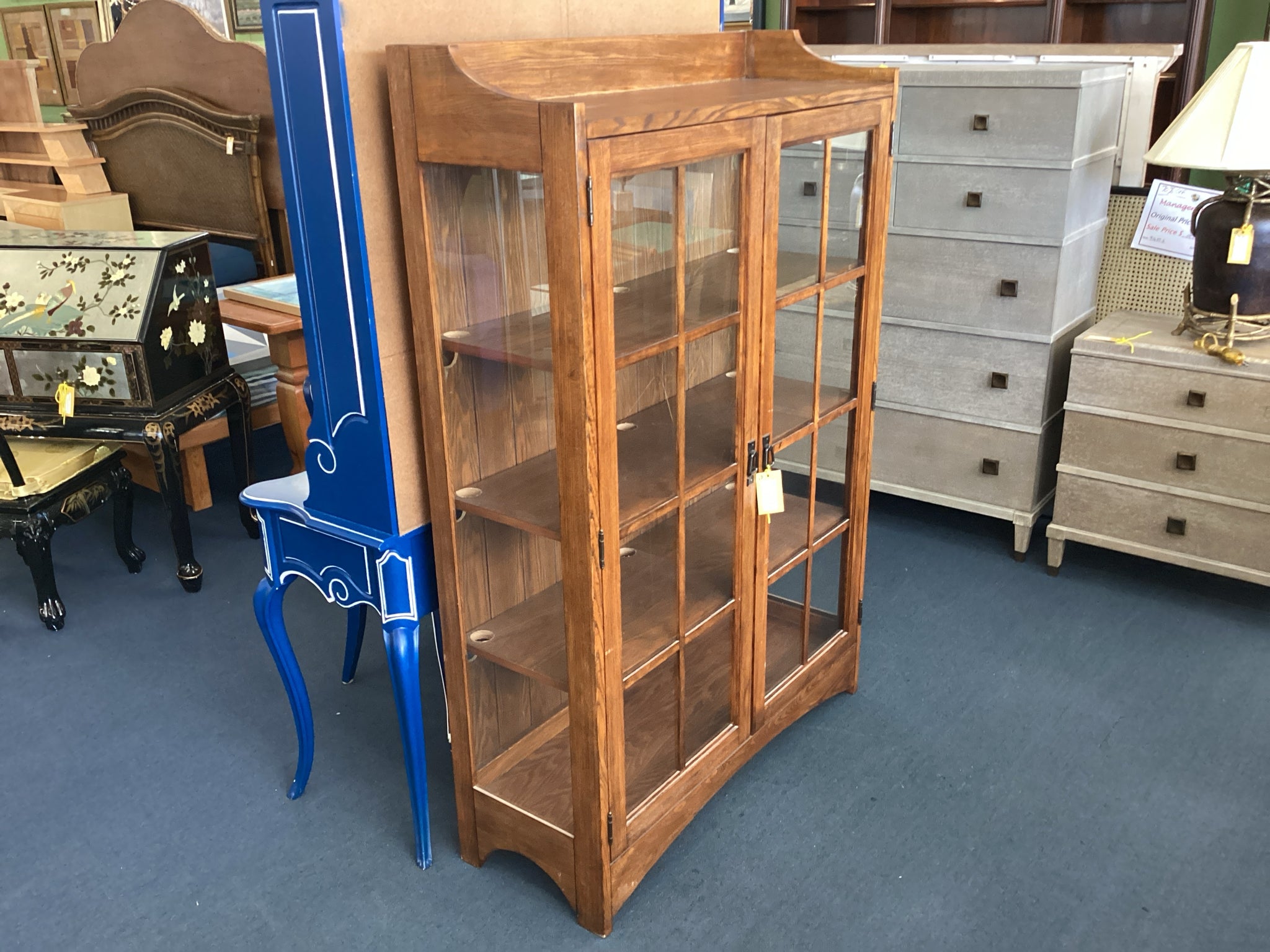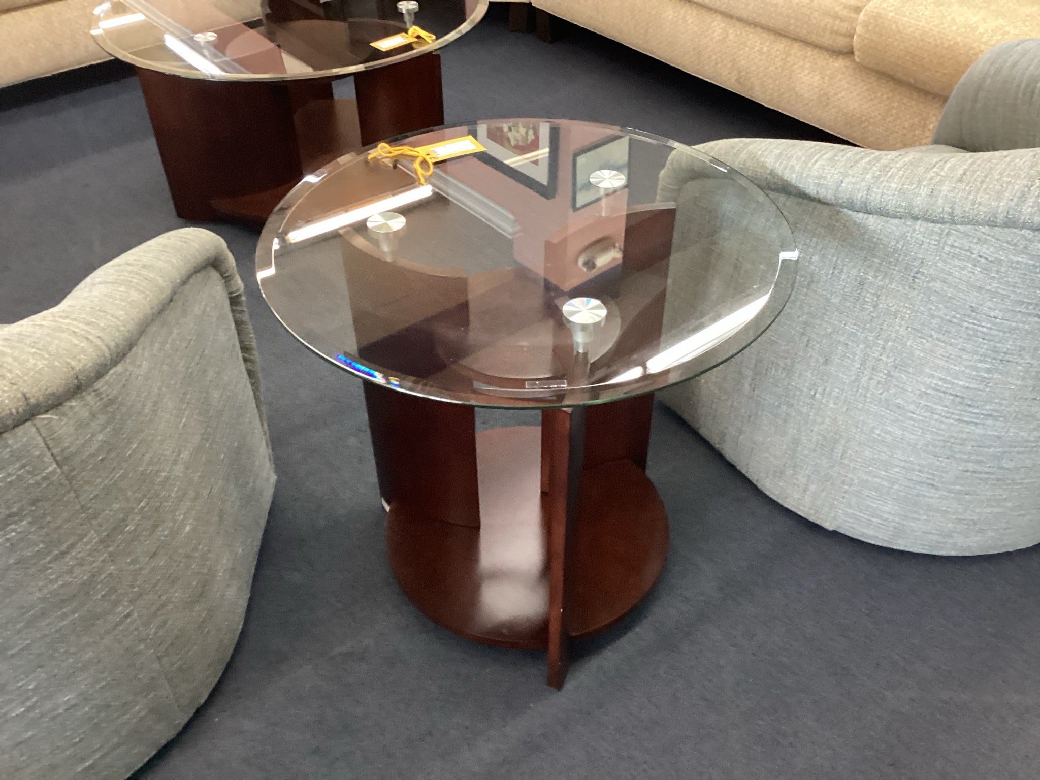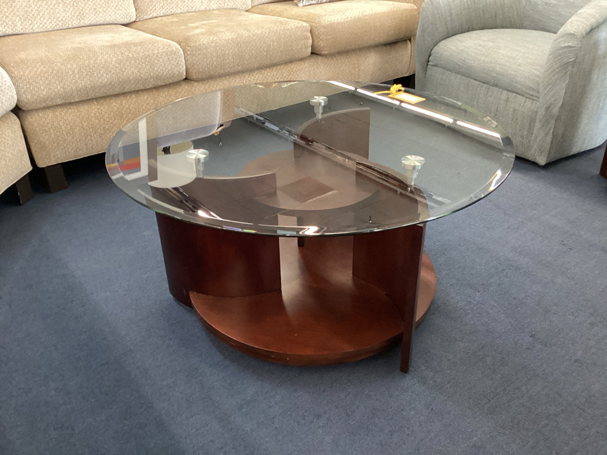 Dark Wood Console With Two Doors Two Drawers And Glass Inserts