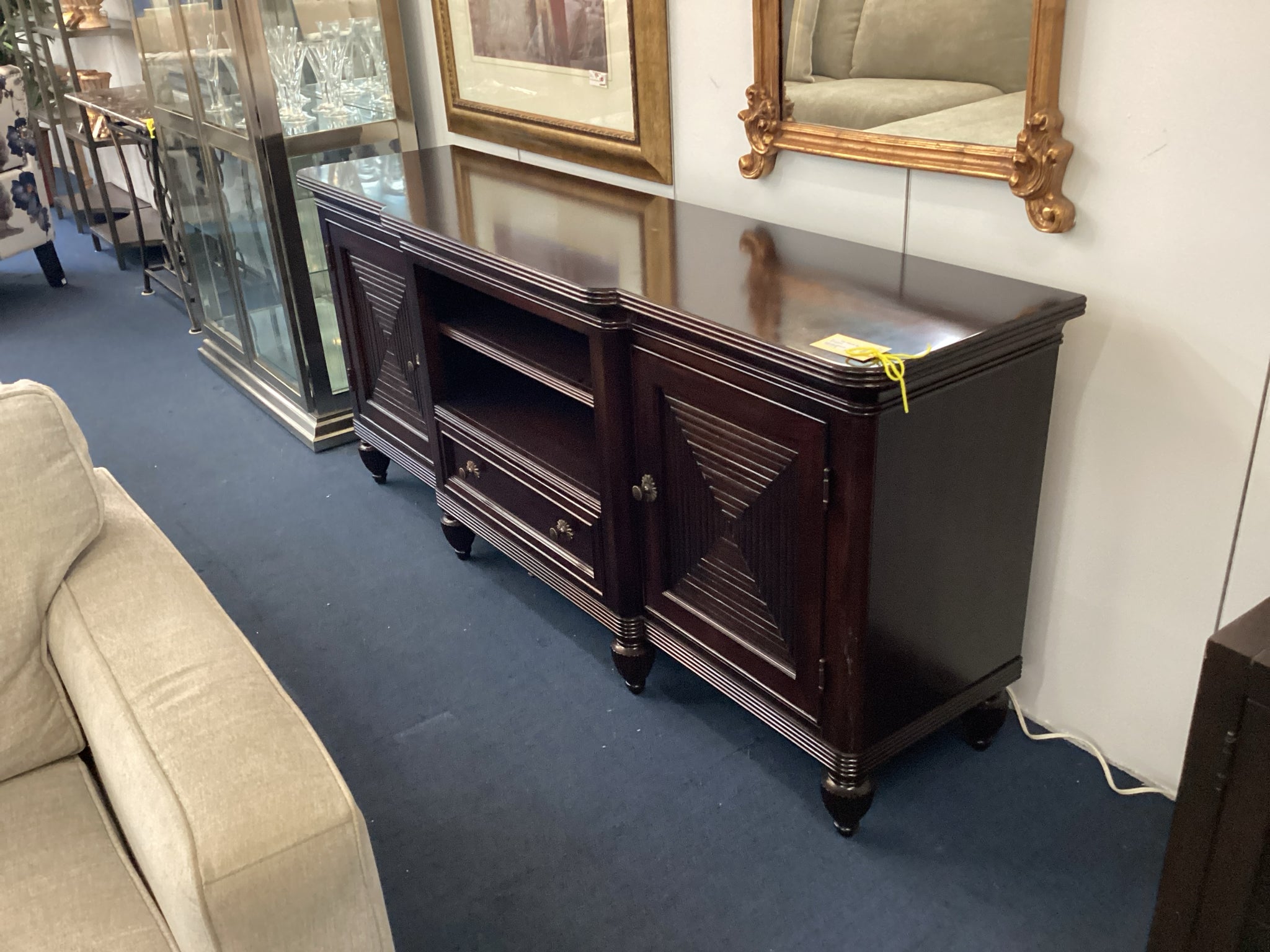 Dark Wood Media Cabinet With Two Doors And Two Drawers