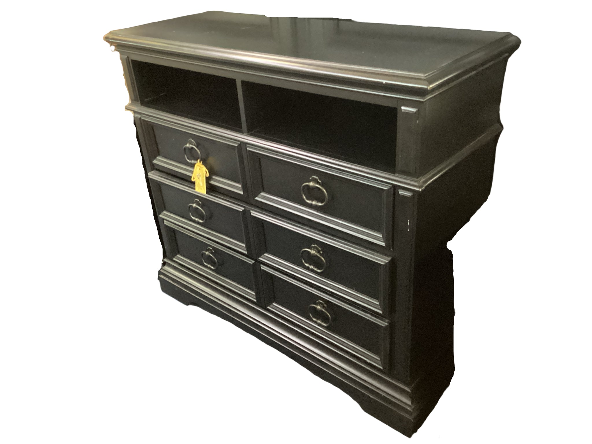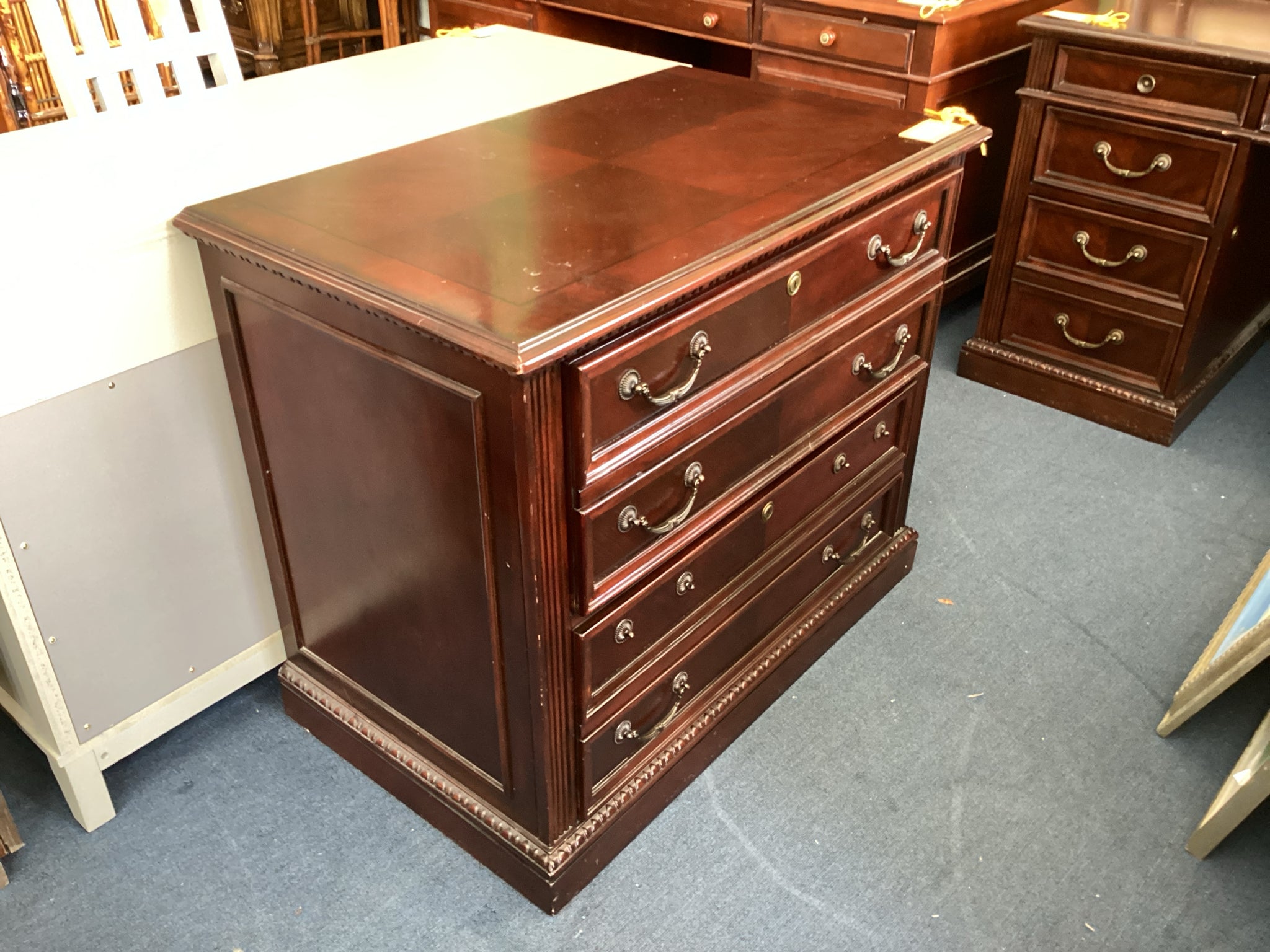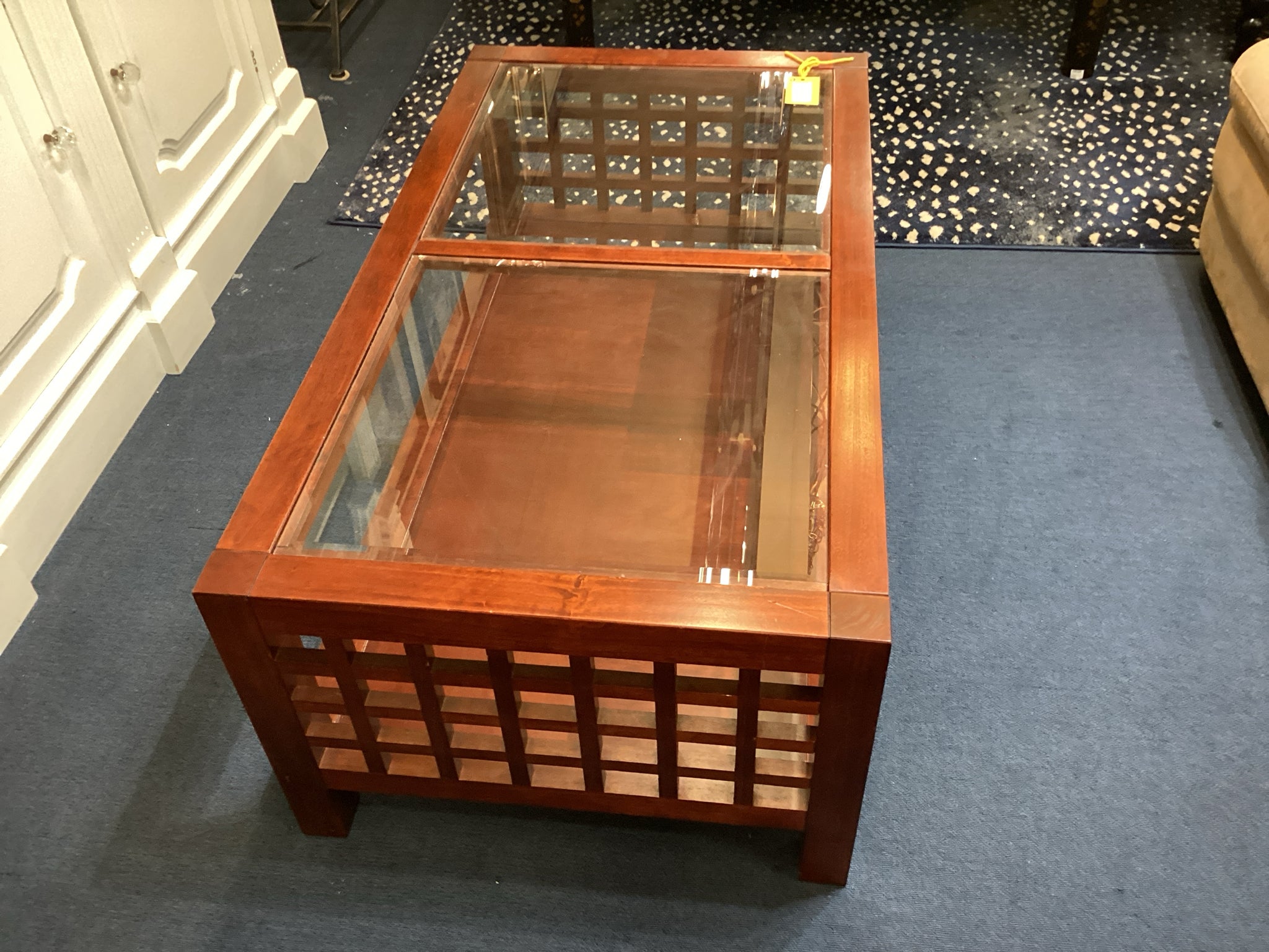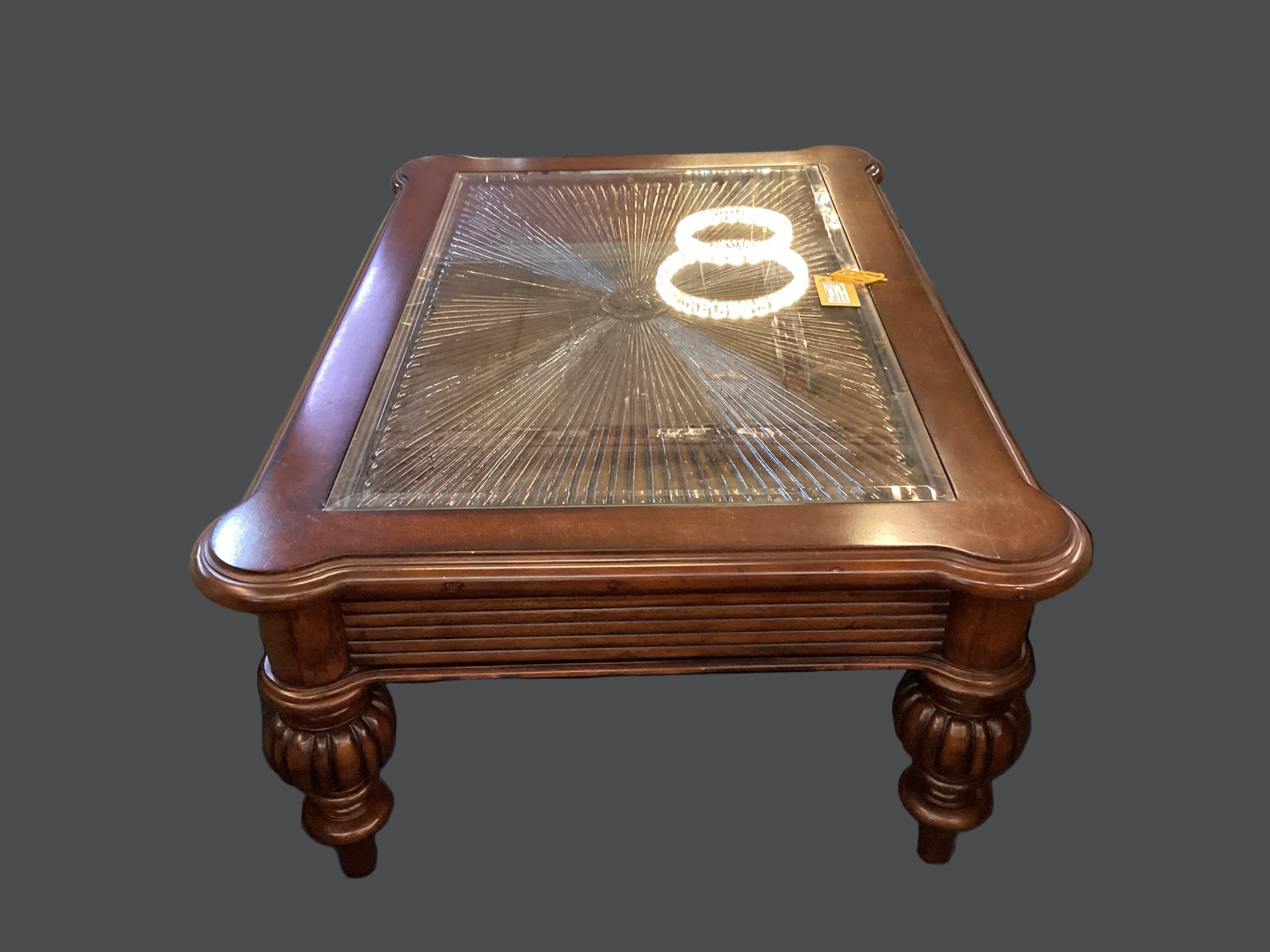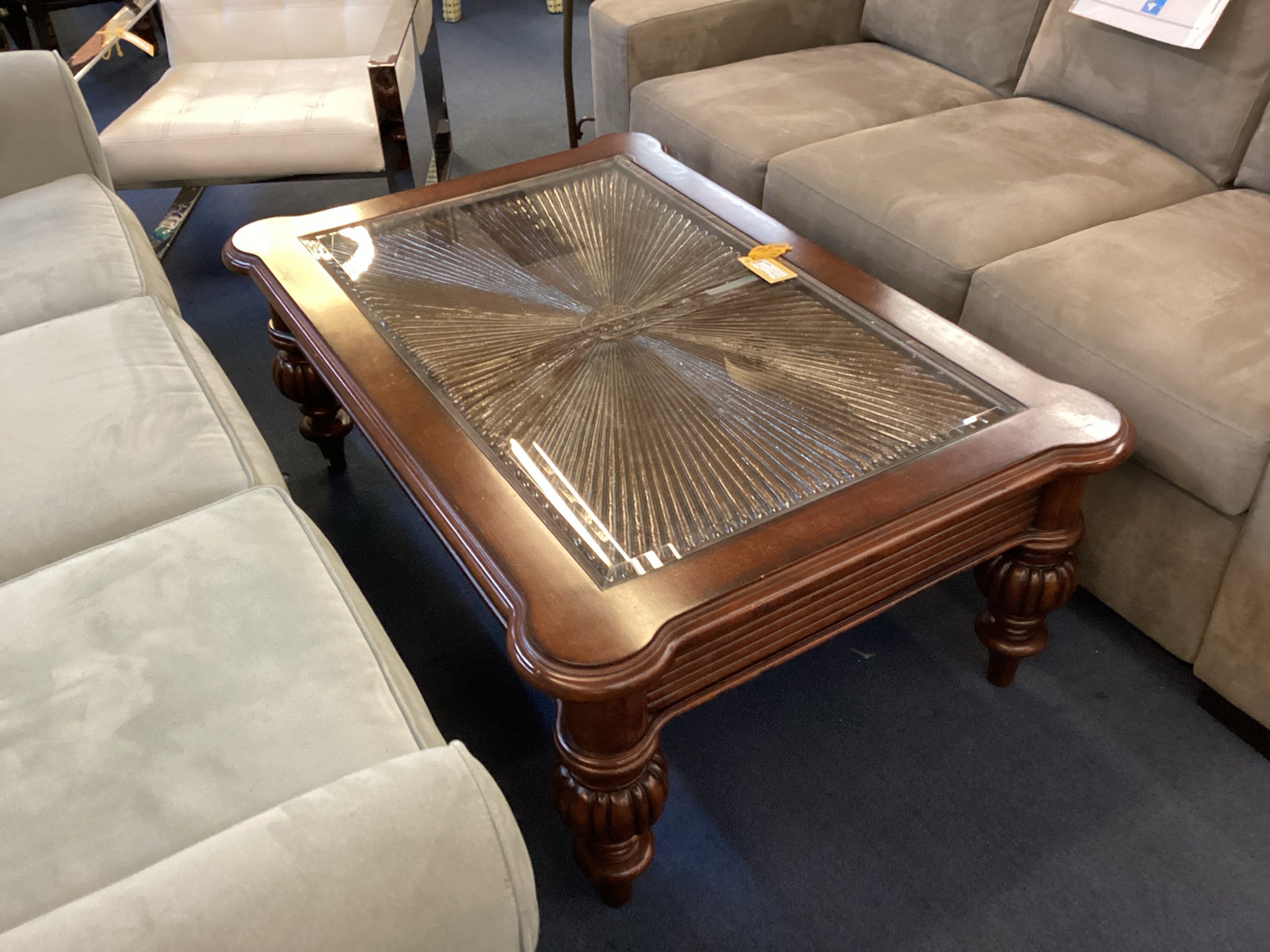 Dark Wood Tommy Bahama Style Glass Top Coffee Table