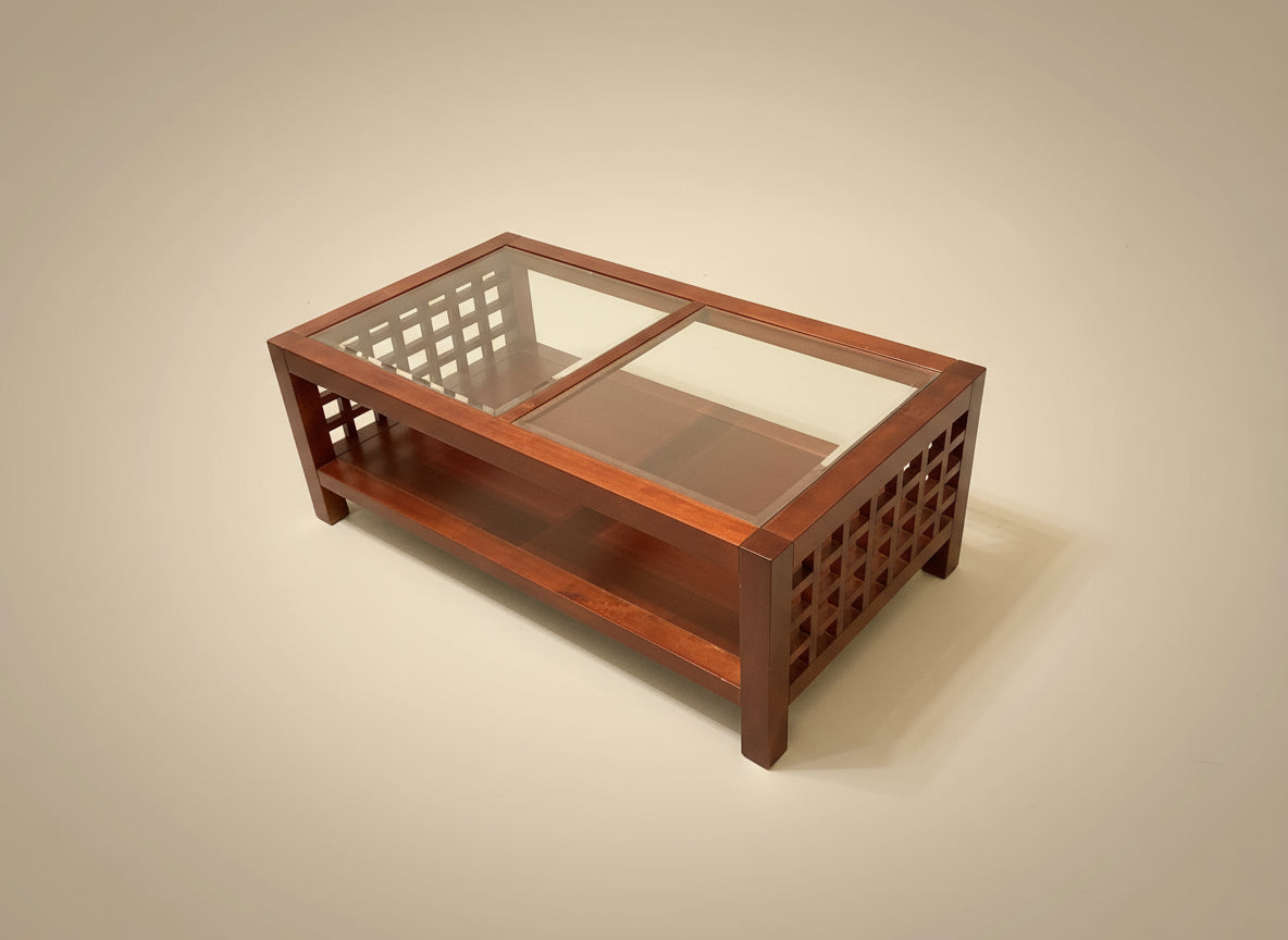 Dark Wood Two Tier Coffee Table With Glass Inserts