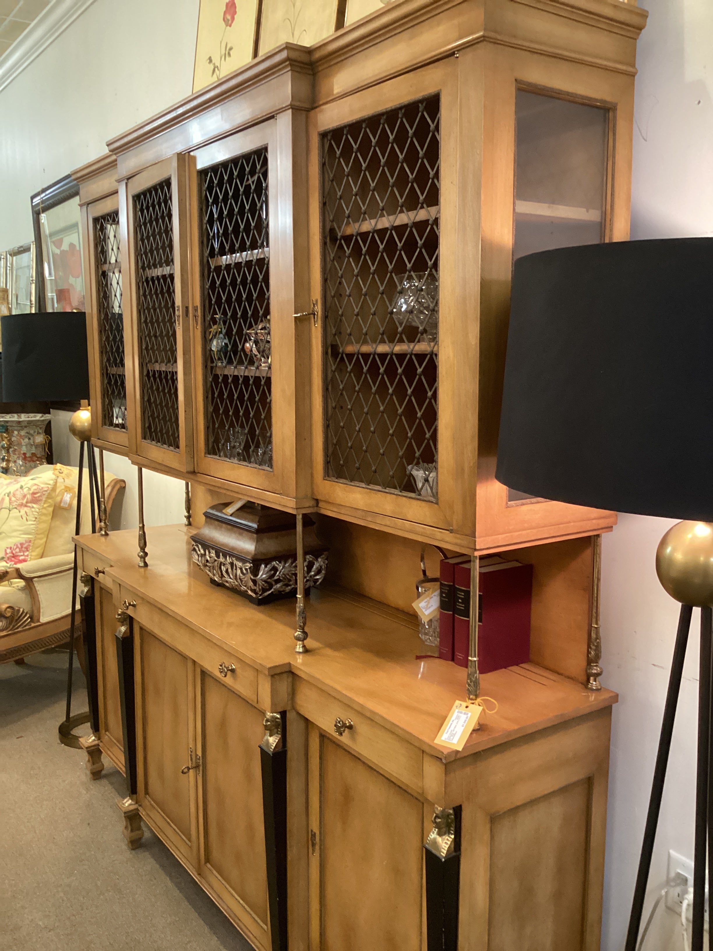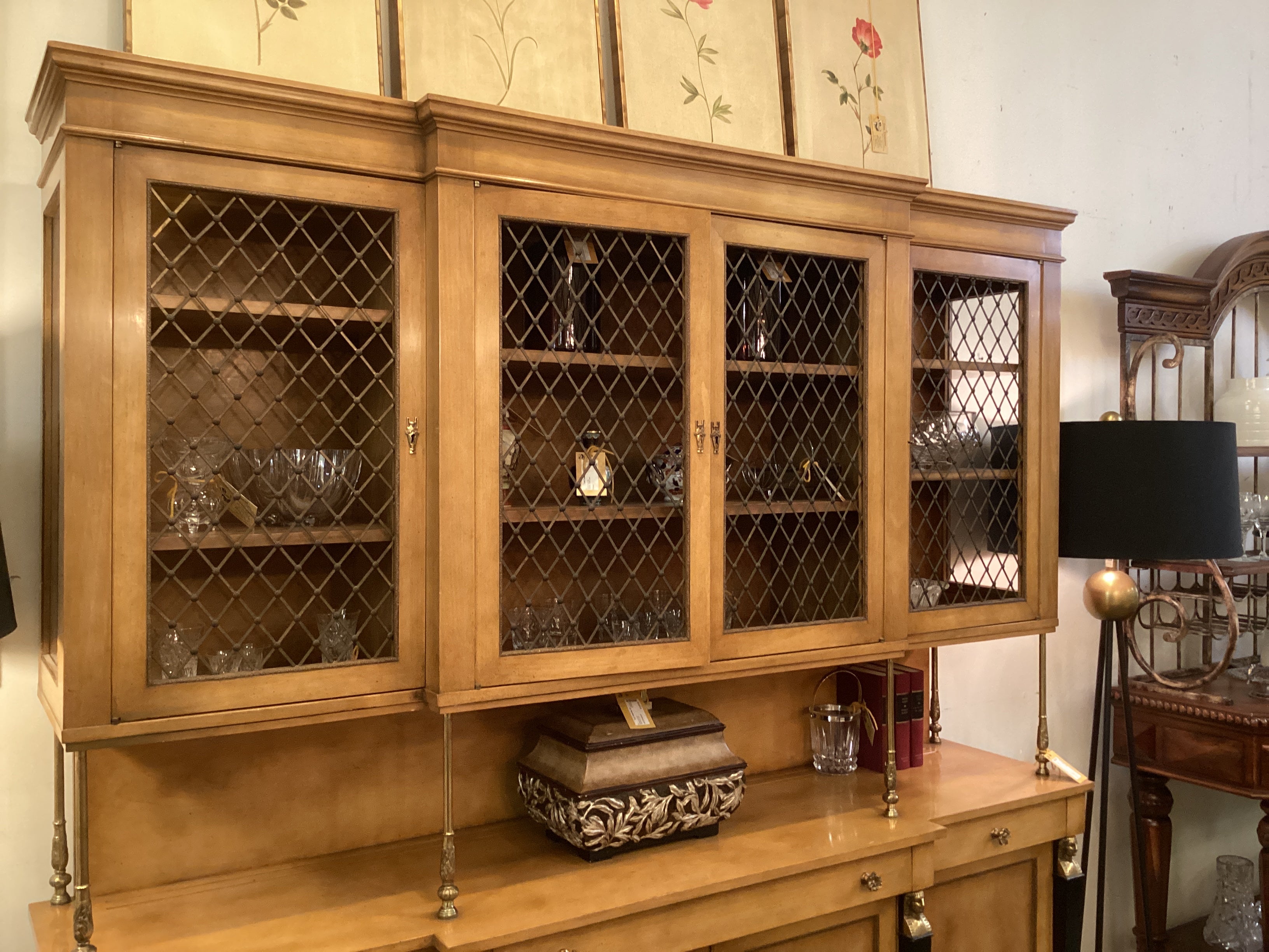 Light Wood 4 Door Iron and Sphinx Detail China Cabinet