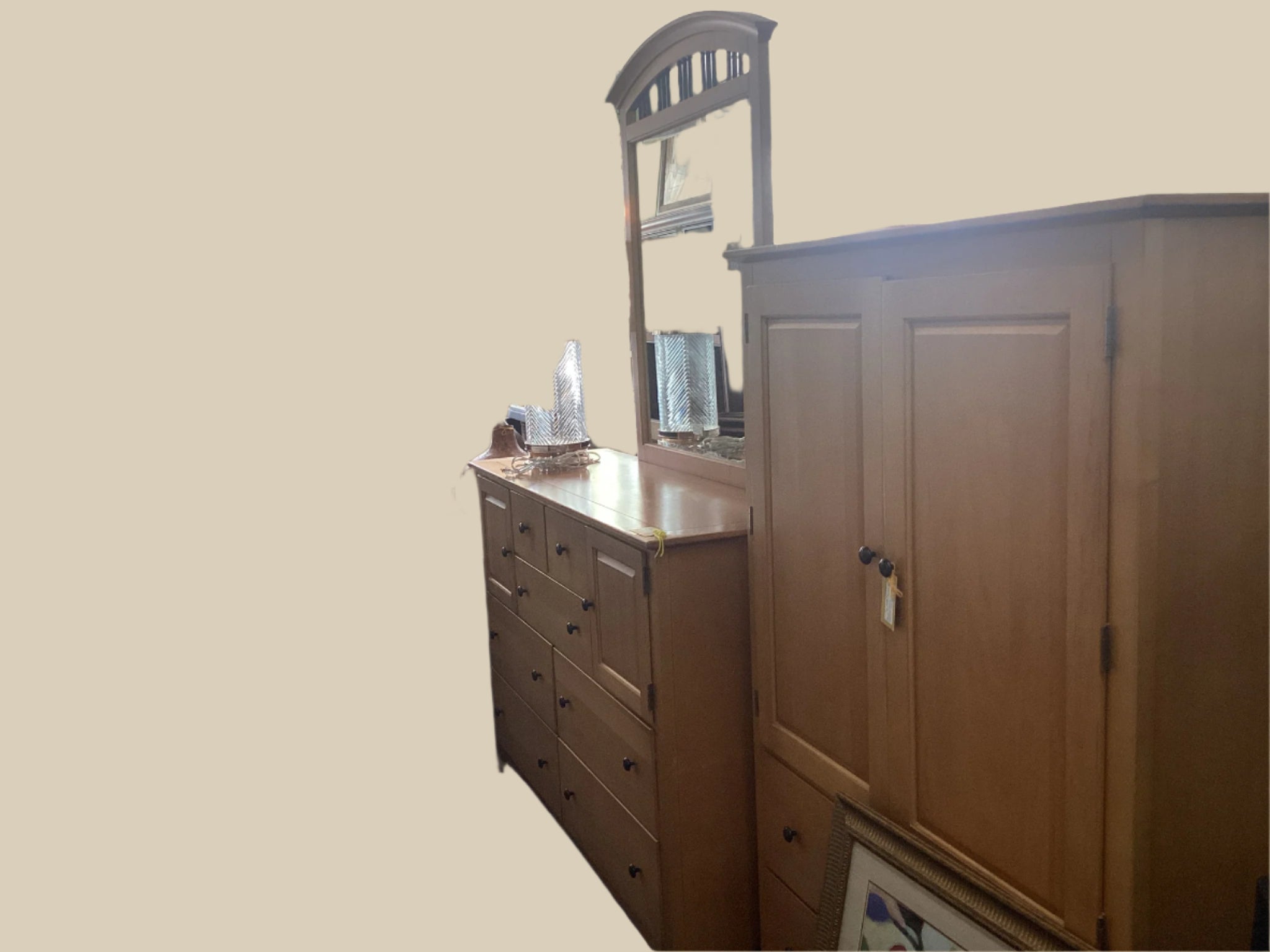 Light Wood Seven Drawer And Two Doors Dresser With Mirror