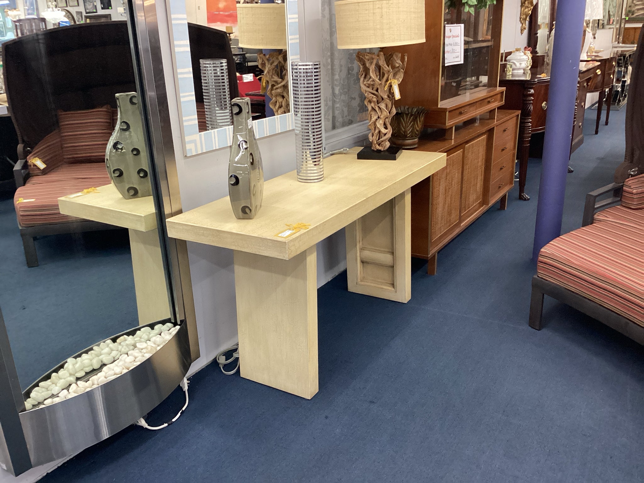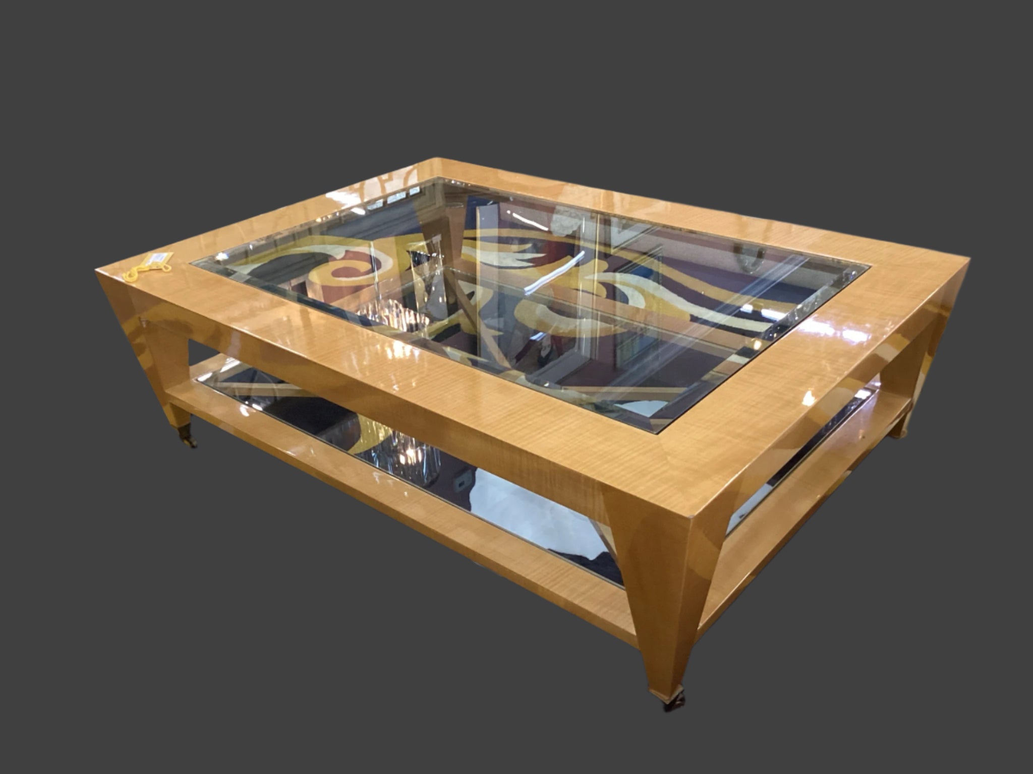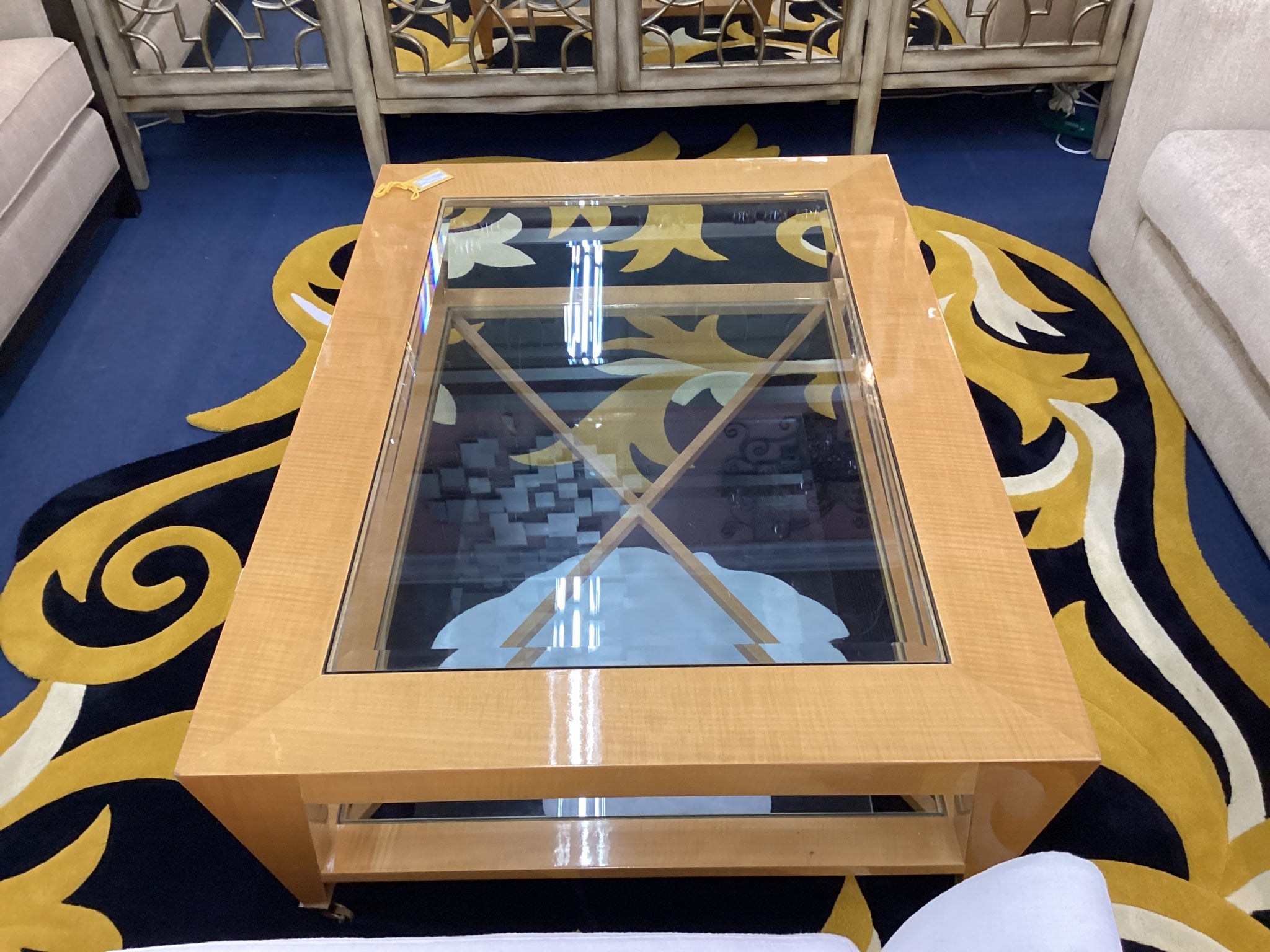 Light Wood Lacquer Two Tier Coffee Table With Glass Top
