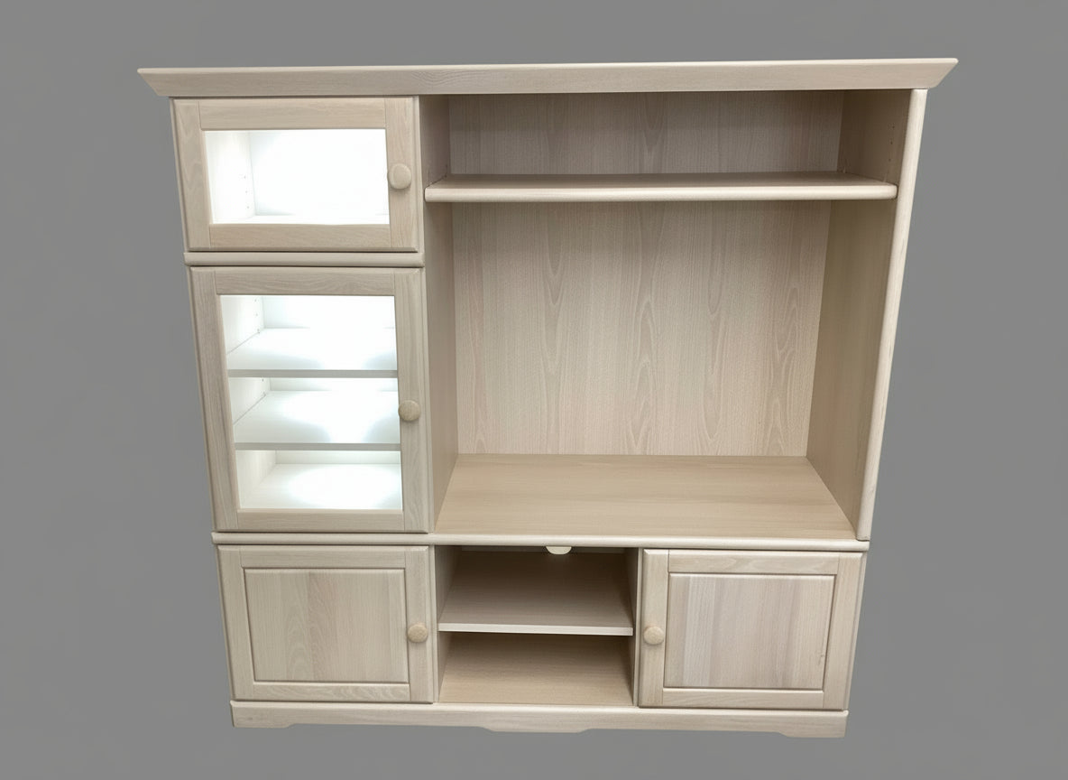 Two Piece Light Wood China Cabinet With Three Drawers And Three Doors