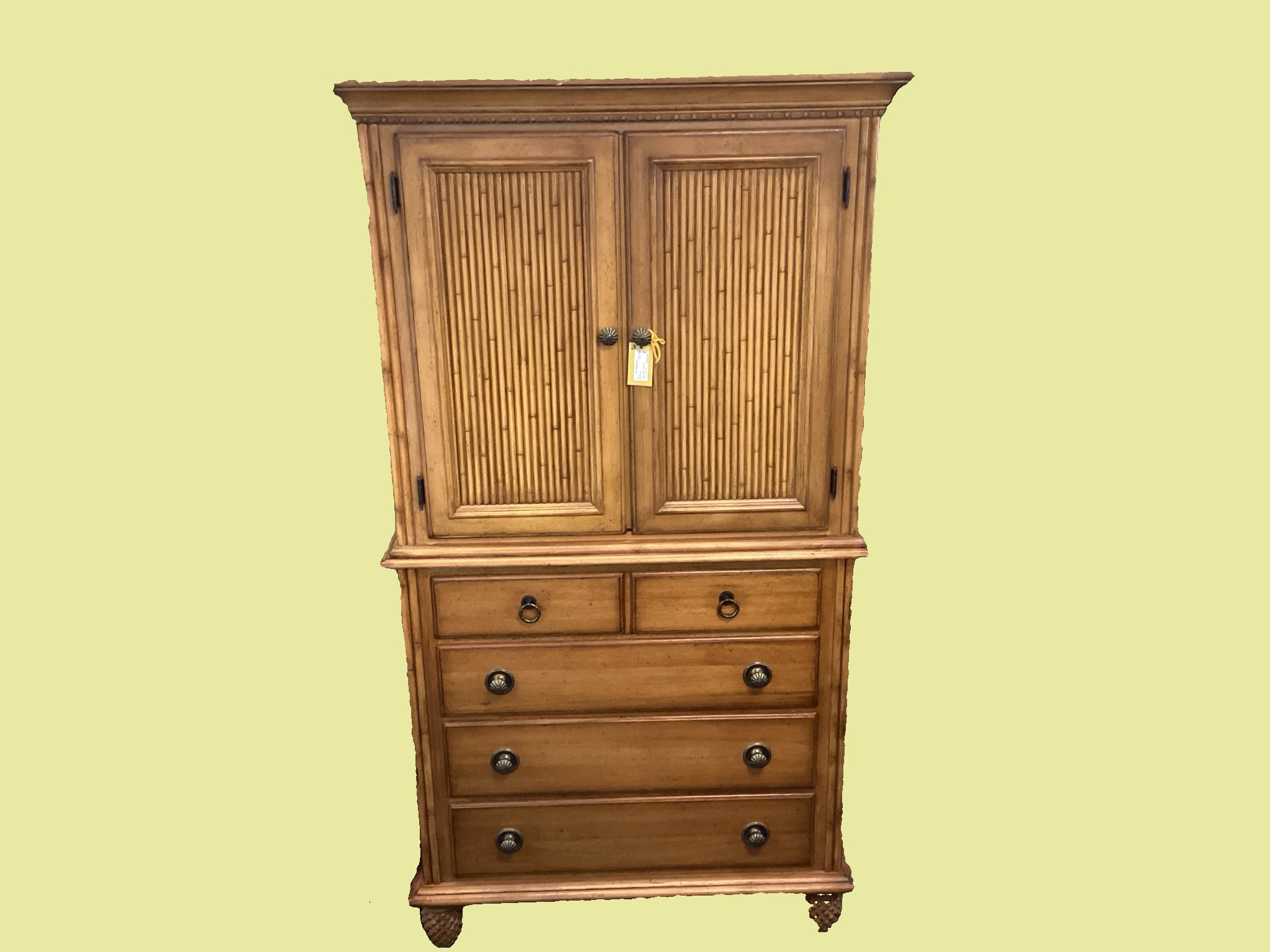 Medium Wood Two Door Armoire With Fourteen Drawers
