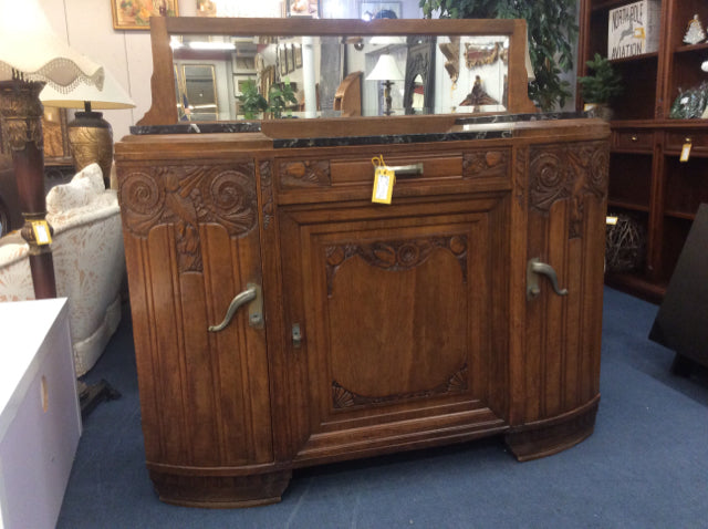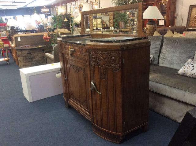 Medium Wood Buffet With 3 Doors 1 Drawer And Stone Top