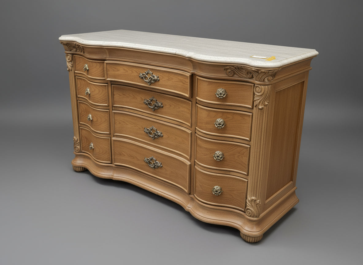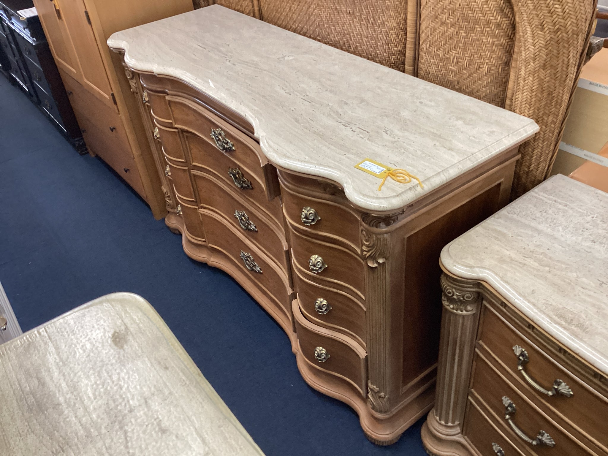 Bernhardt Medium Wood Dresser With Twelve Drawers And Stone Top