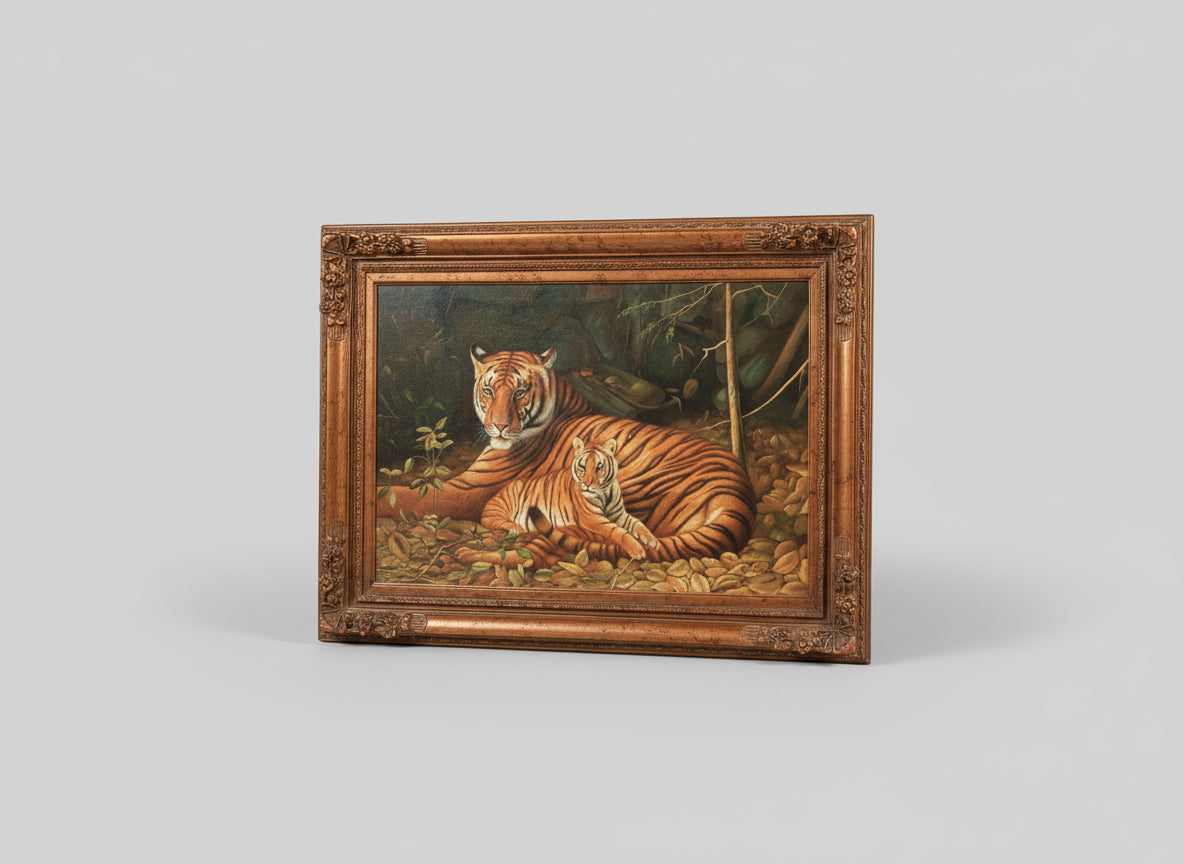 Framed Tiger And Cub Painting