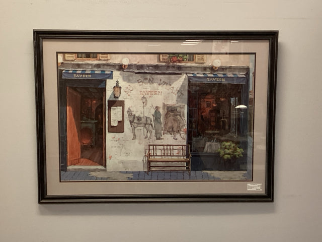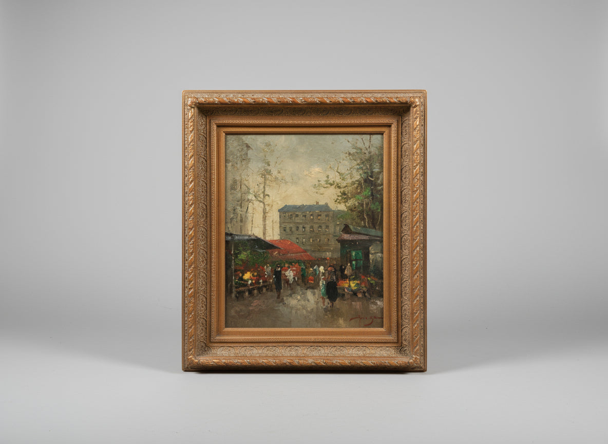 Framed Paris Street Scene Painting