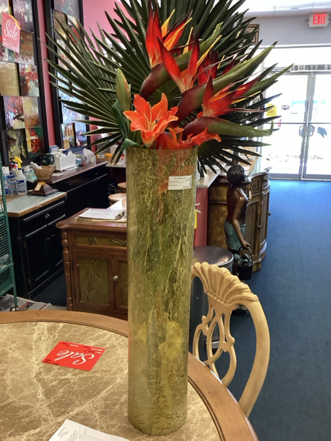 Frosted Glass Planter with Faux Plant