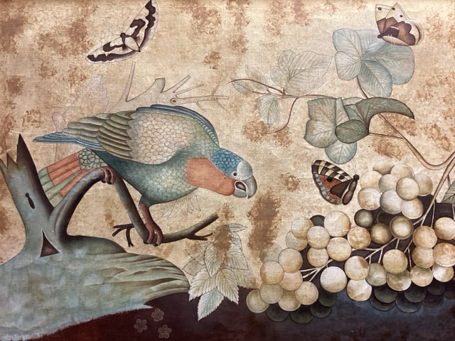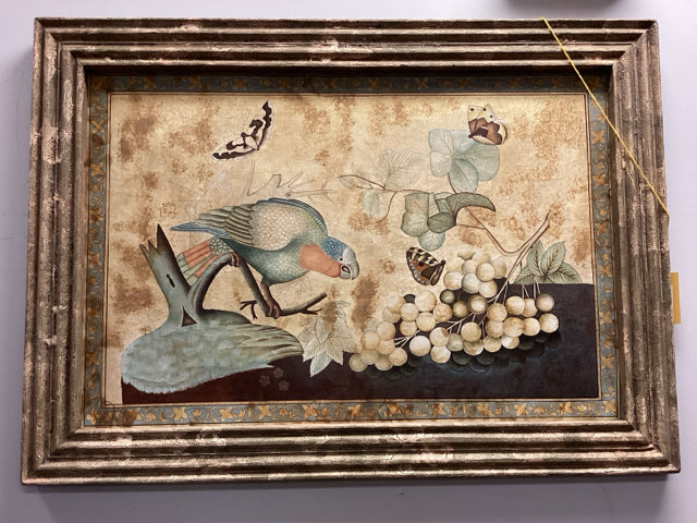 Framed Silk Painting Of Bird Butterflies & Florals