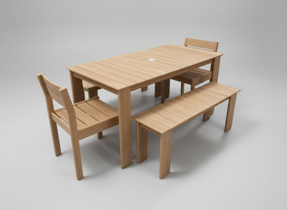Set Wood Outdoor Table with Two Benches and Two Chairs