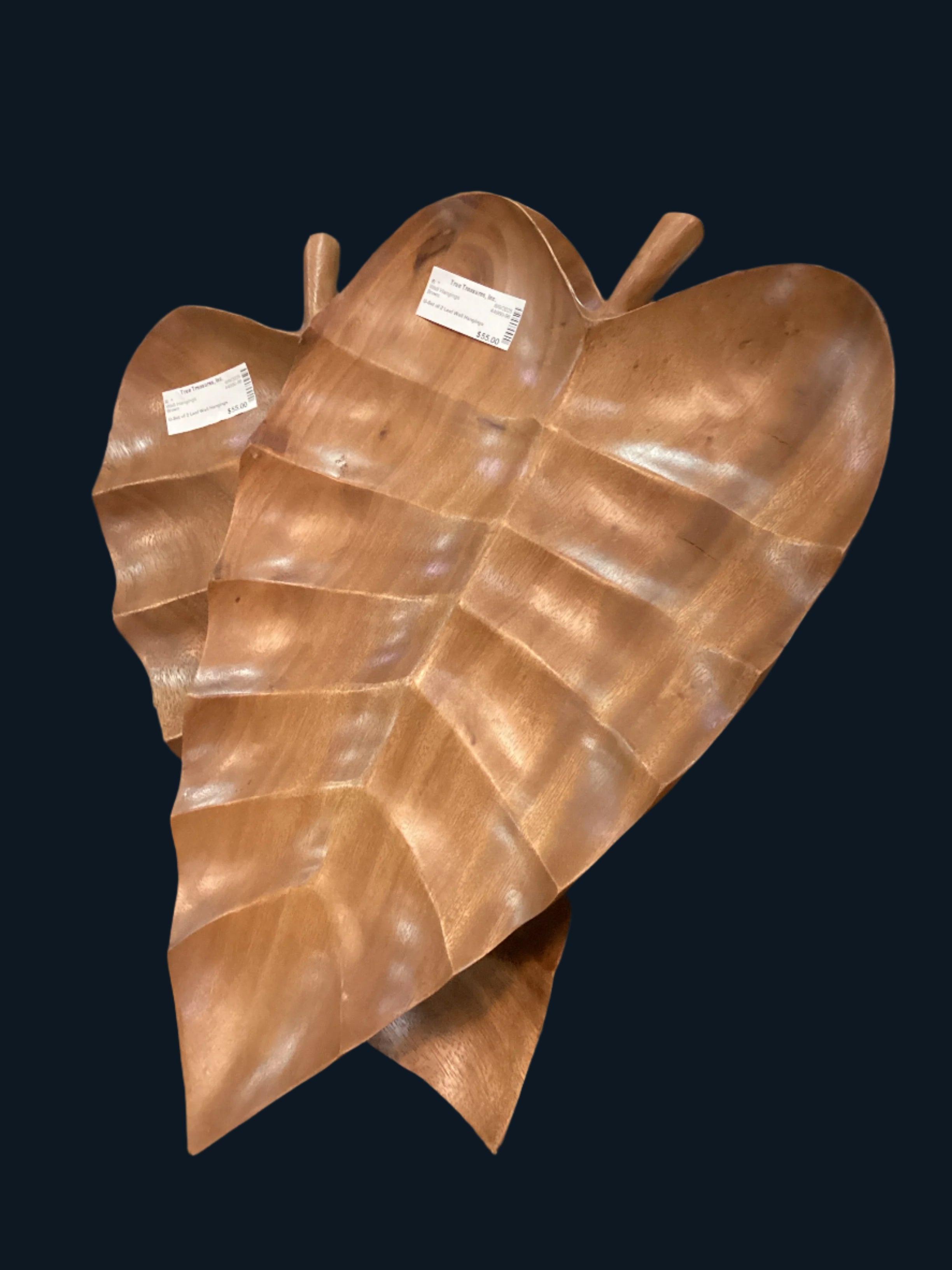 Set of Two Wooden Leaf Wall Hangings