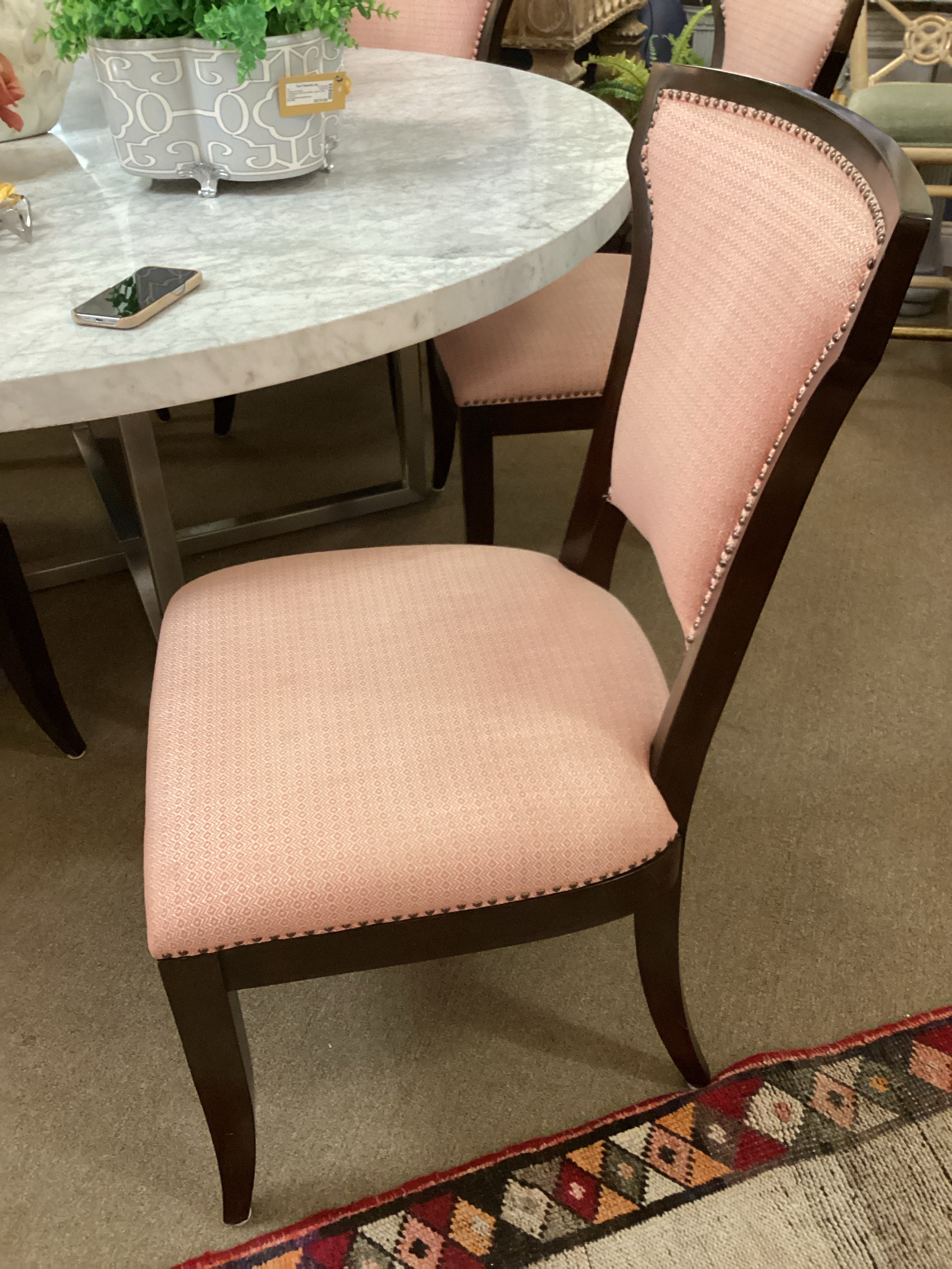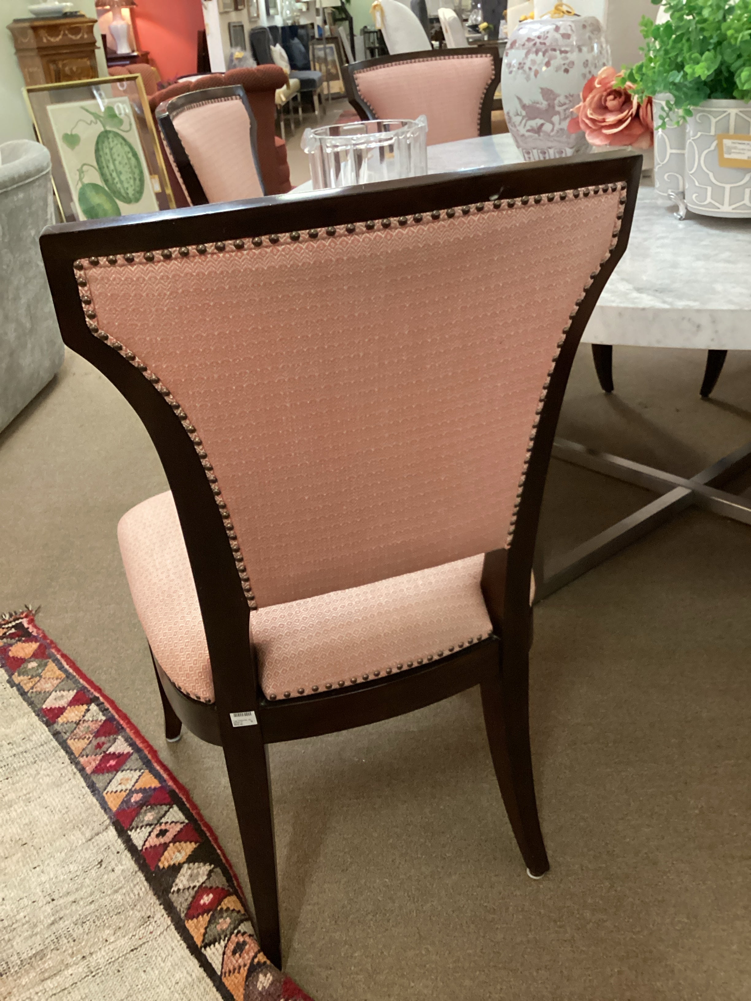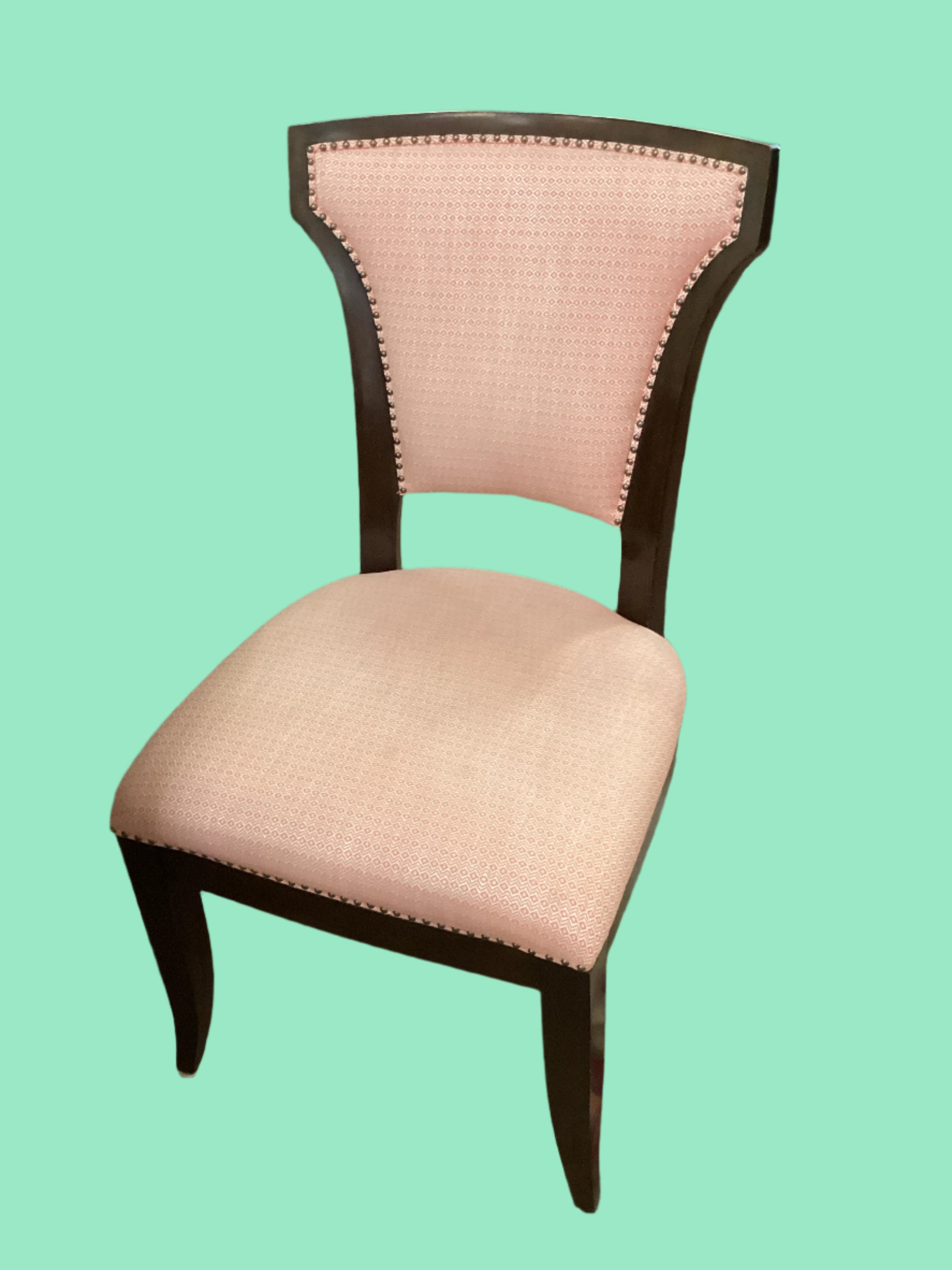 Set of Eight Salmon and Cream Dining Chairs