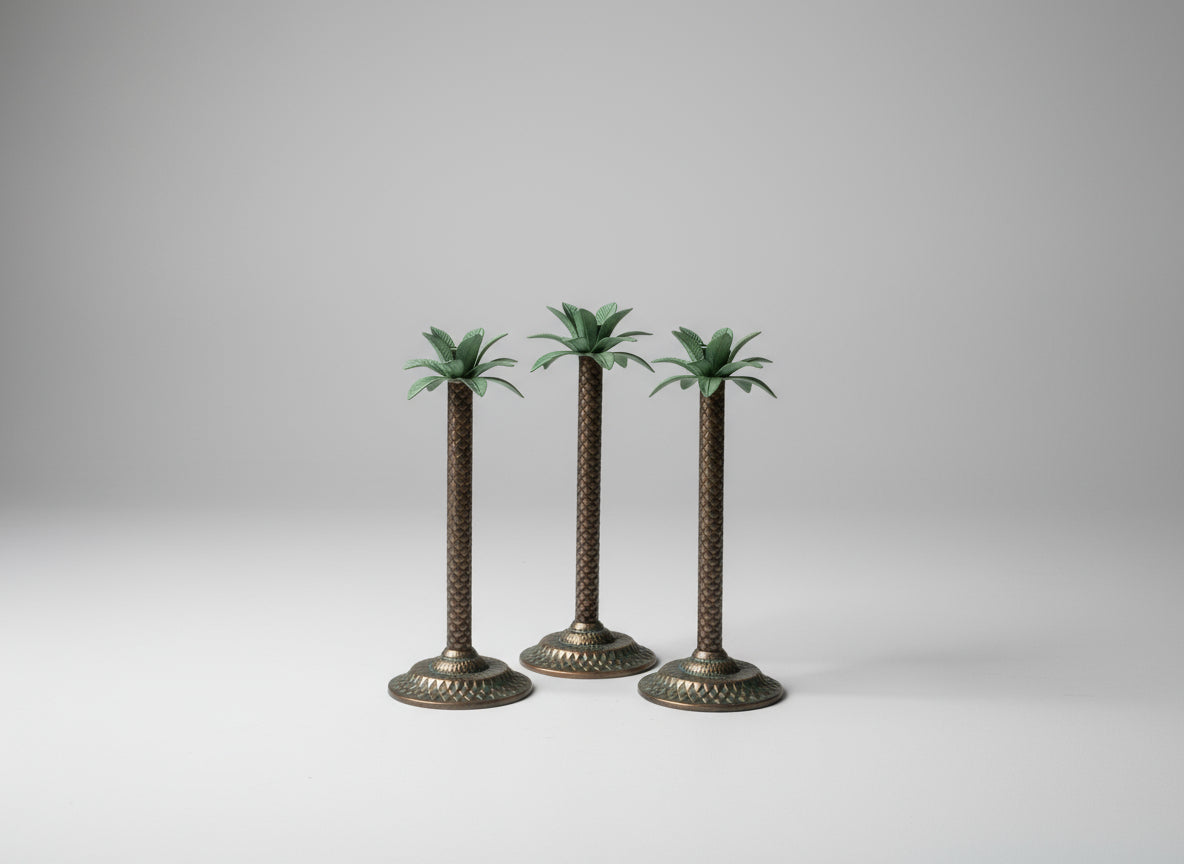 Set of Three Palm Tree Candlesticks