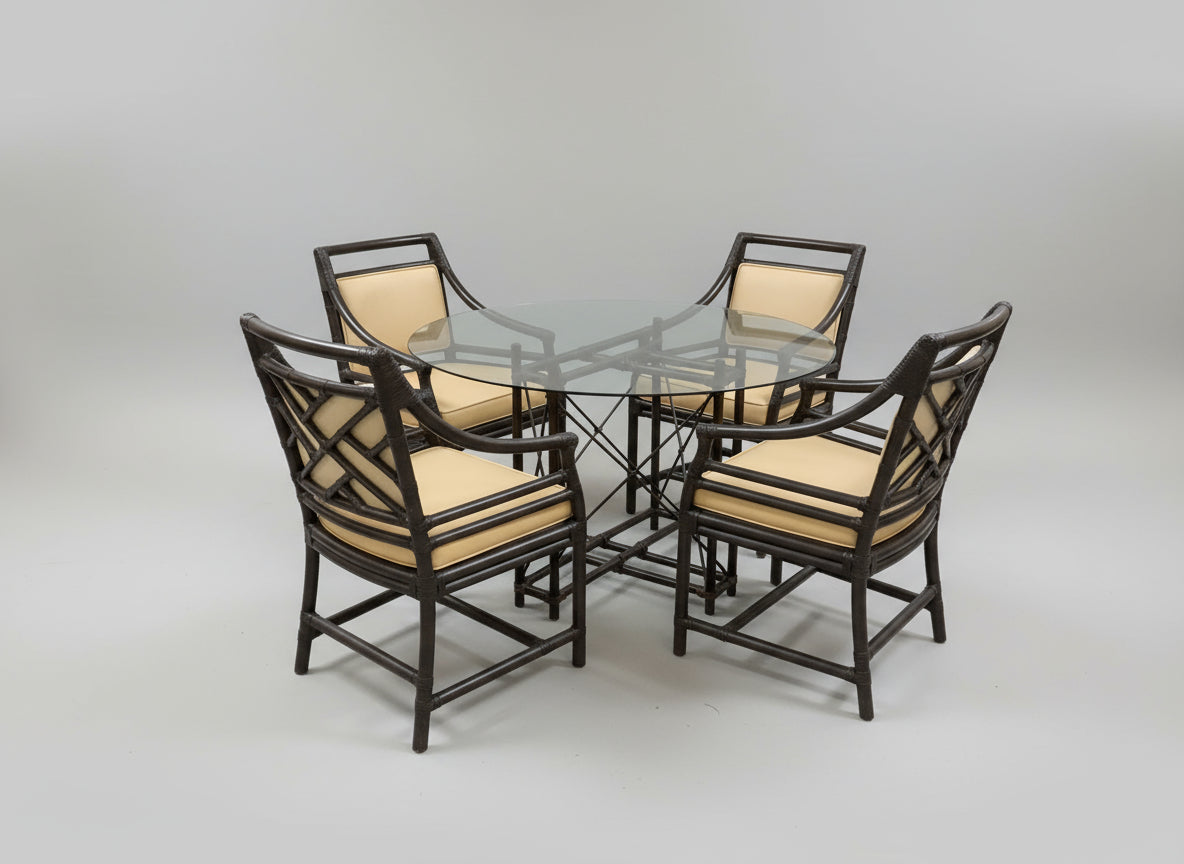 Set Round Glass Top Table and Four Chairs