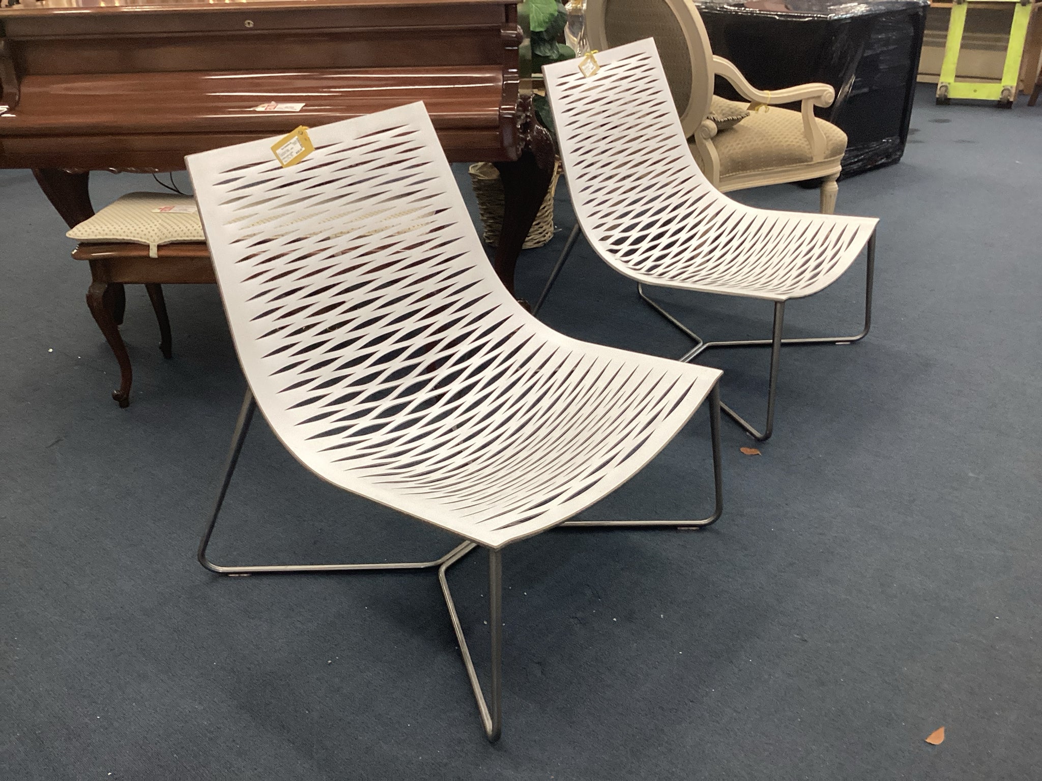 White Lattice Leather Living Room Chair