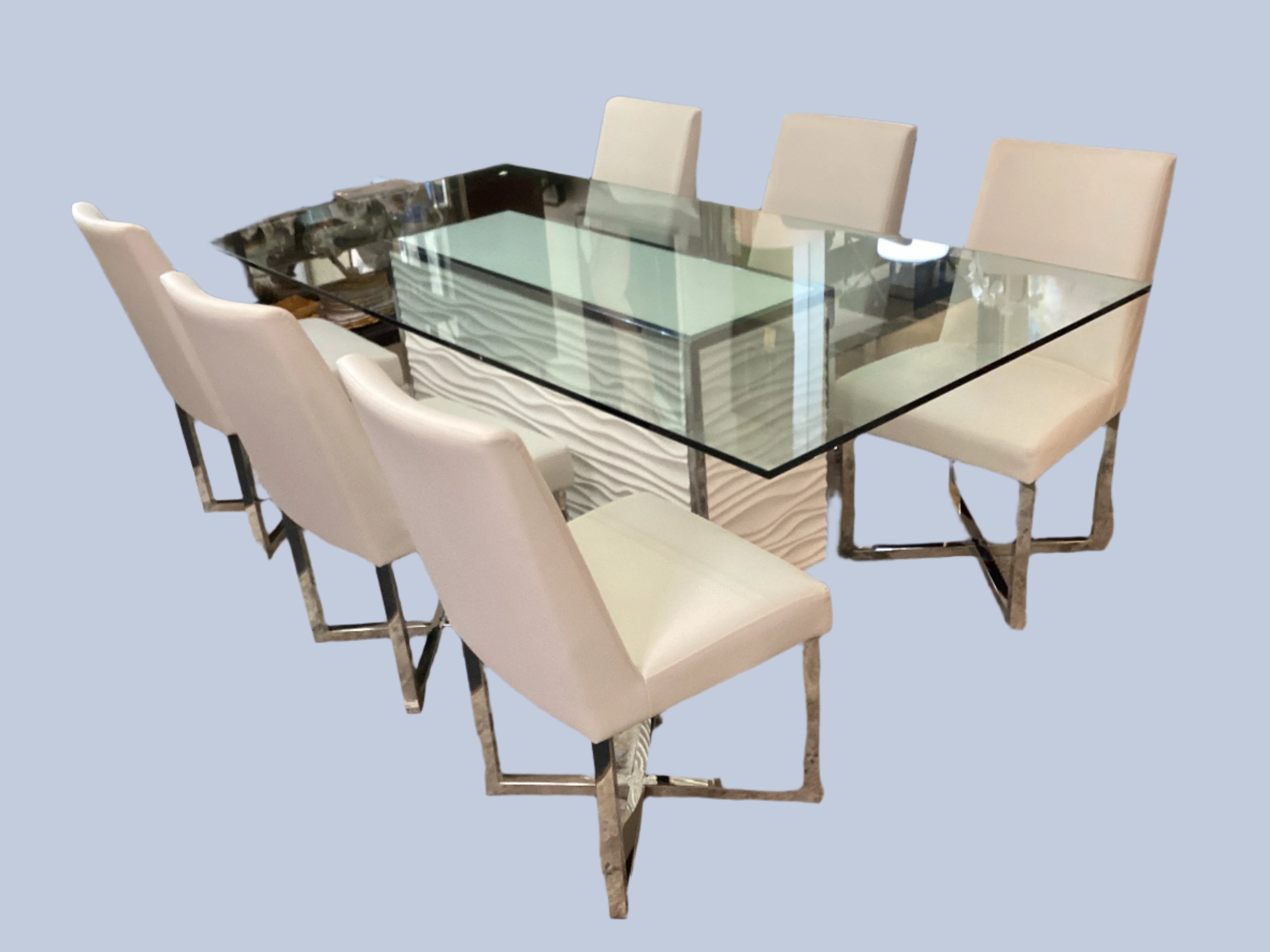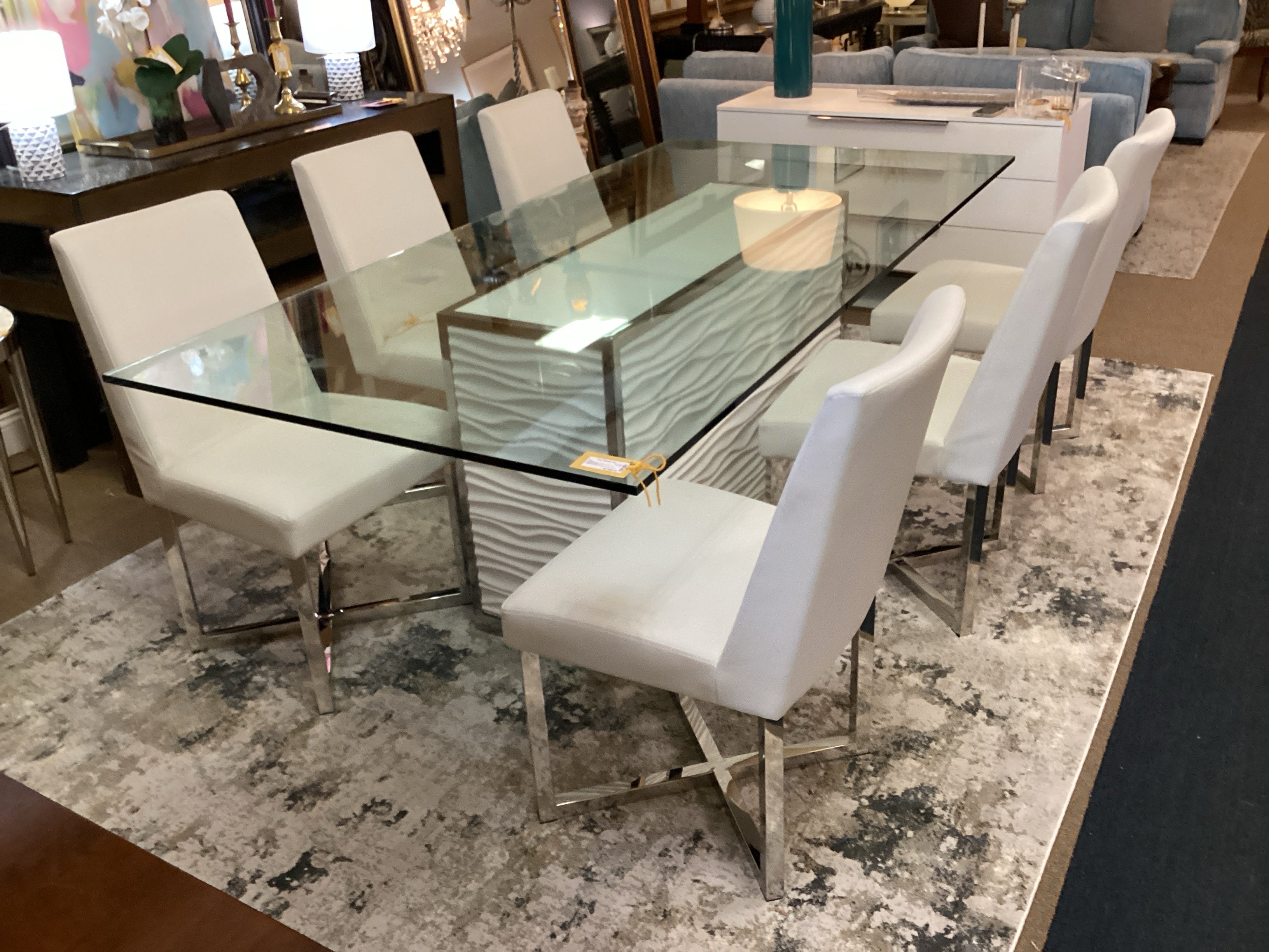 White Pedestal Base Glass Top Dining Table 6 Chairs