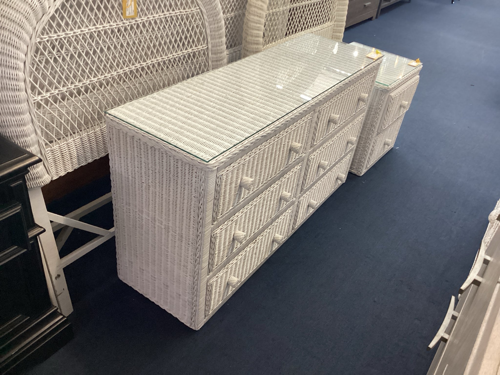 White Wicker Dresser With Glass Top And Six Drawers