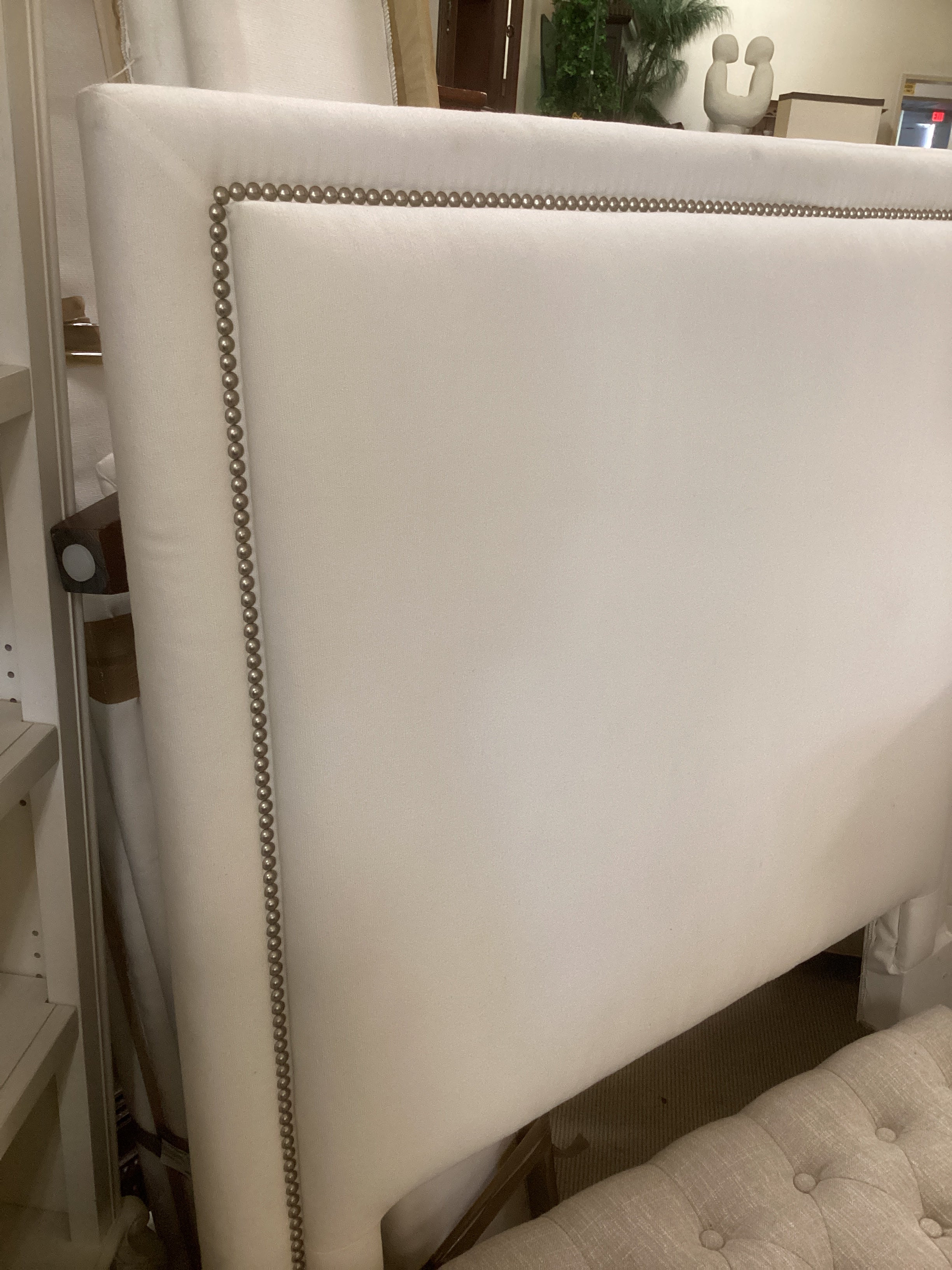 White Twin Headboard and Rails with Nailhead Detail