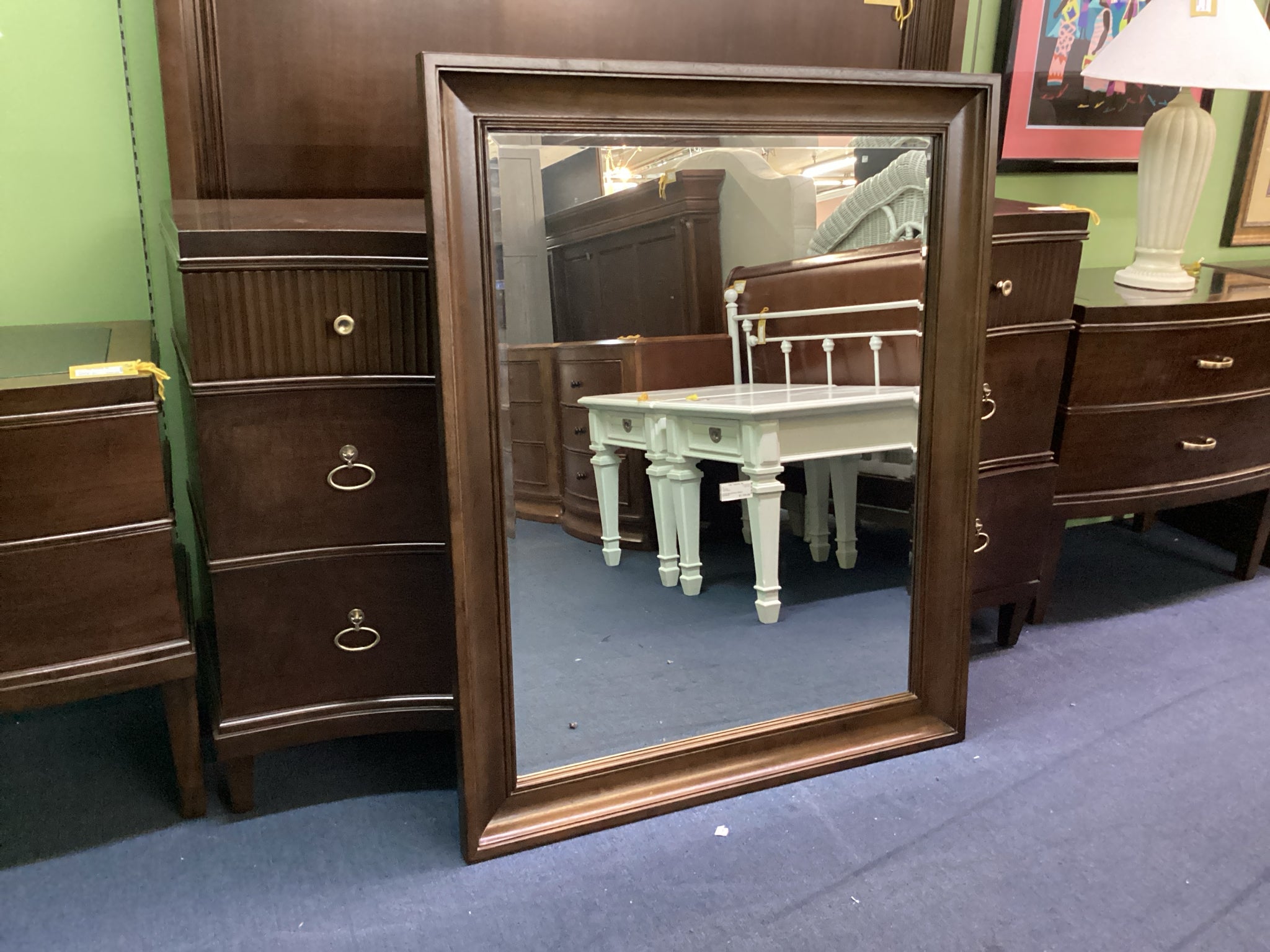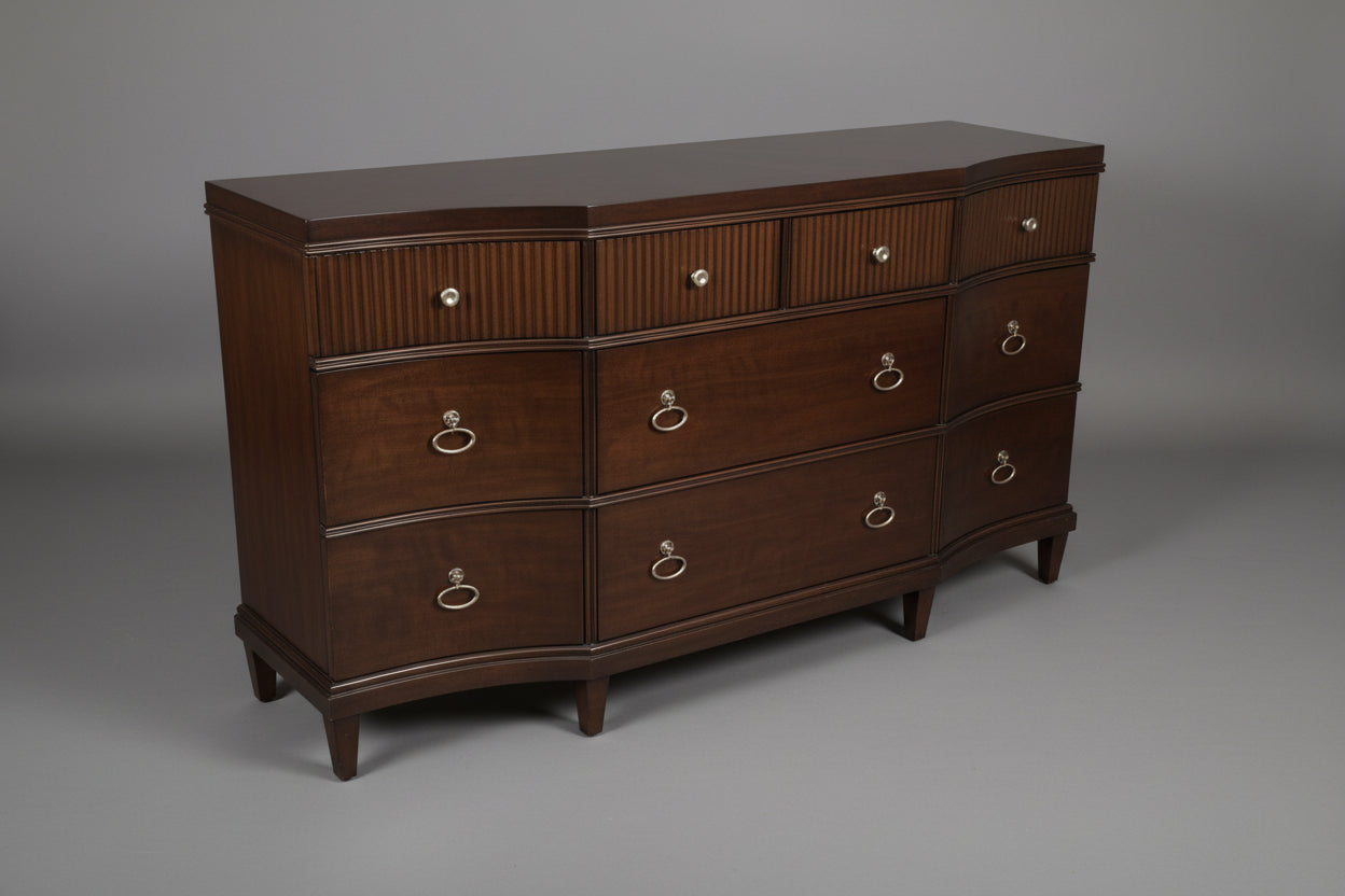 Bernhardt Dark Wood Dresser With Nine Drawers And Mirror