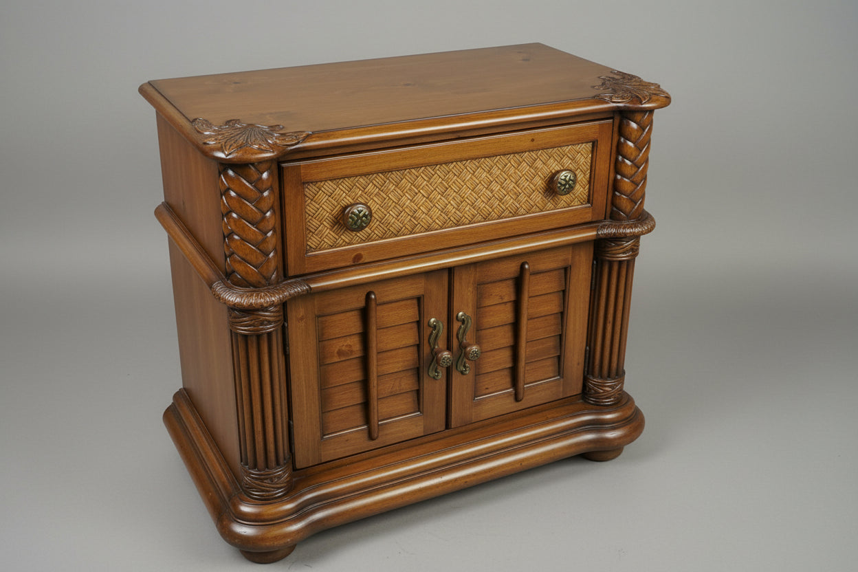 Medium Wood Nightstand With One Door And Two Drawers