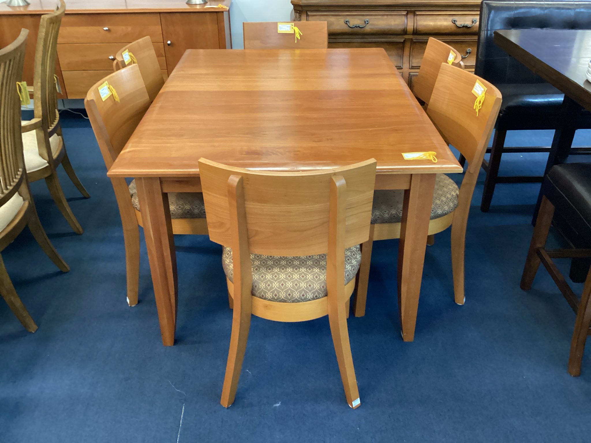 Arhaus Medium Wood Table With Six Chairs And Two Leafs