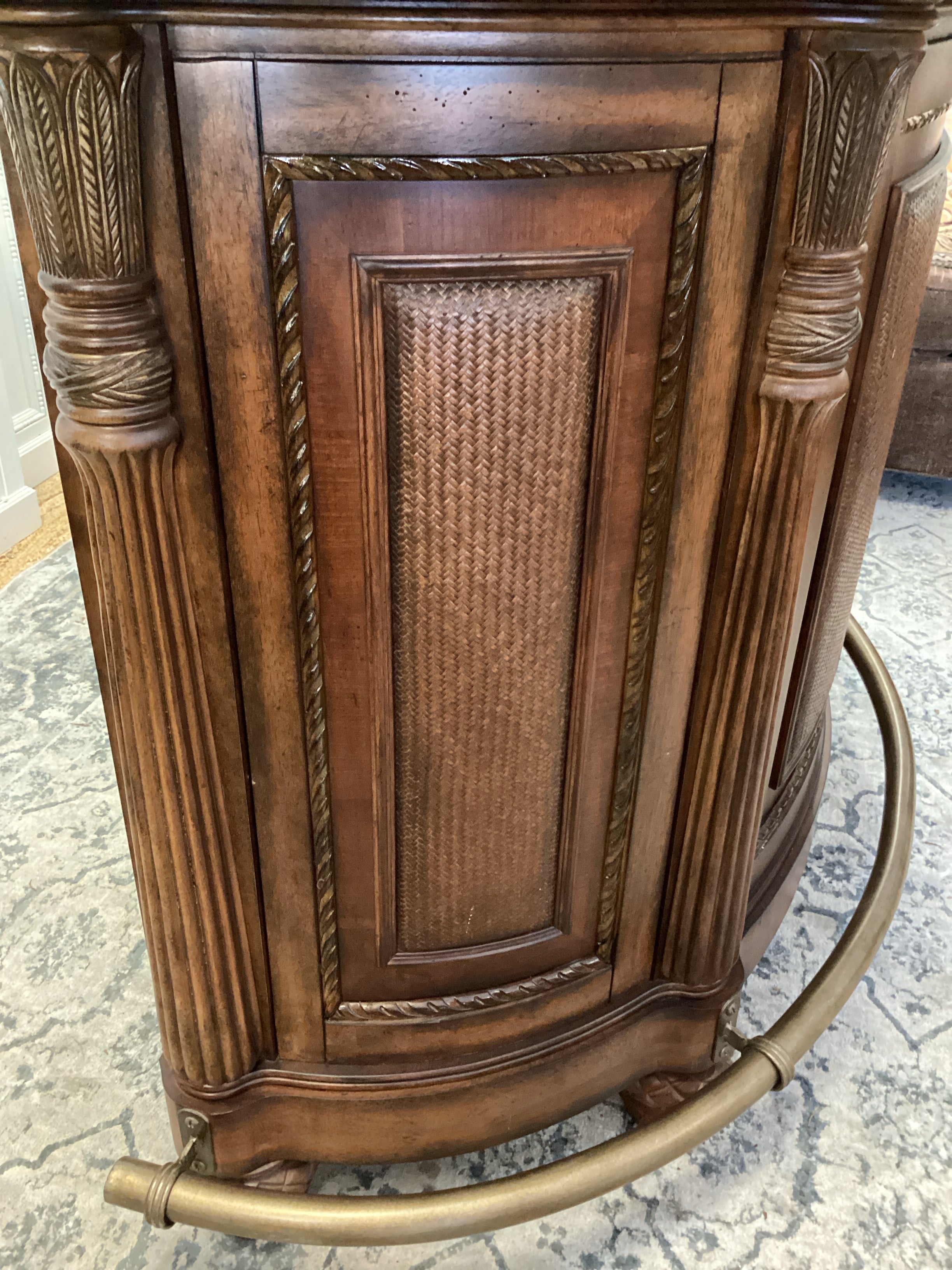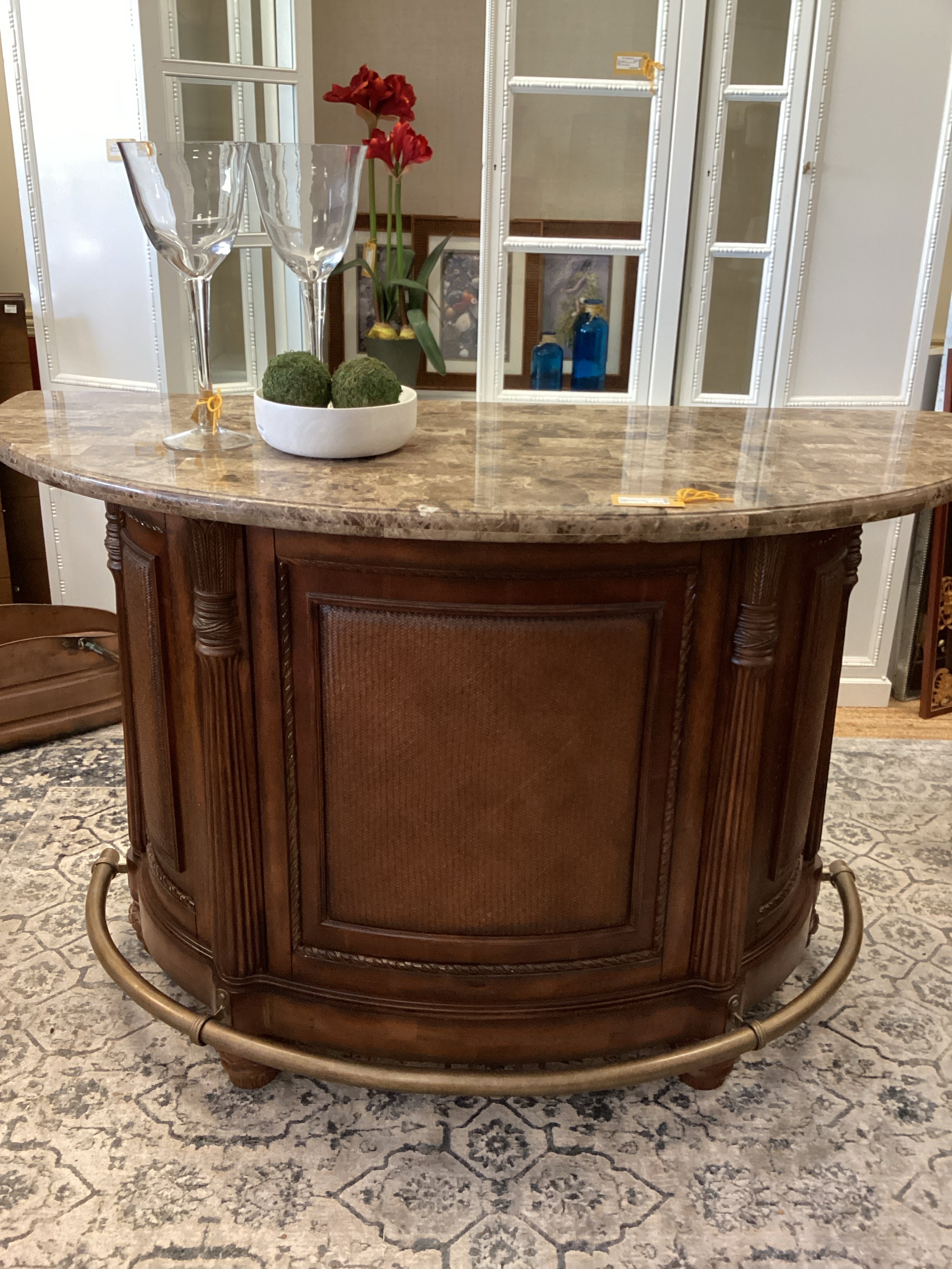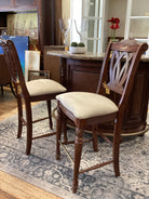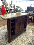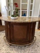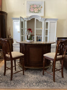 Brown Tessalated Marble Top Bar Wood Base 2 Chairs