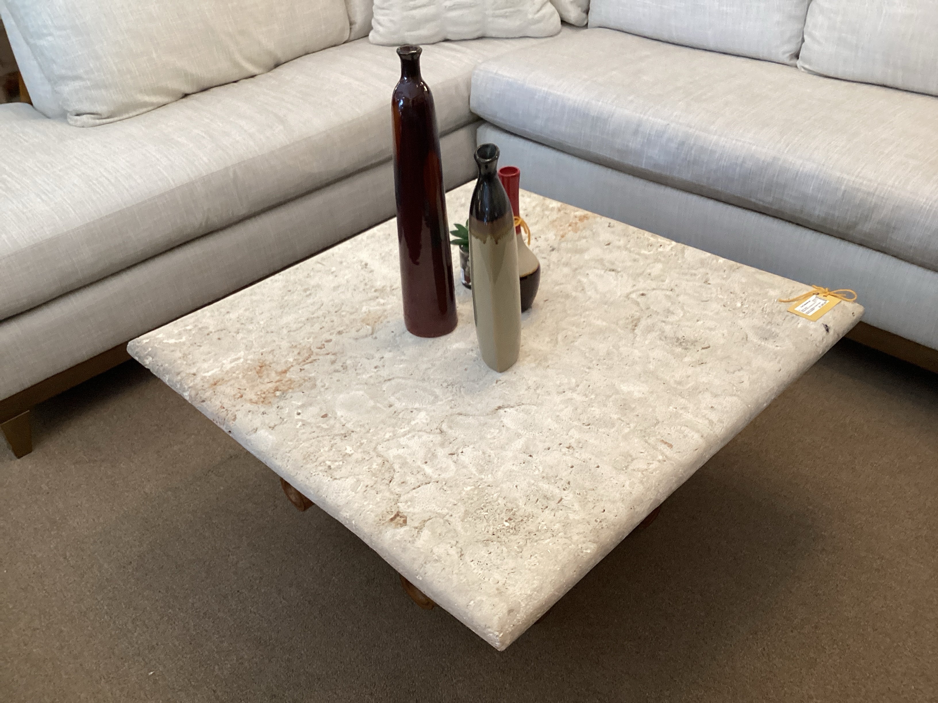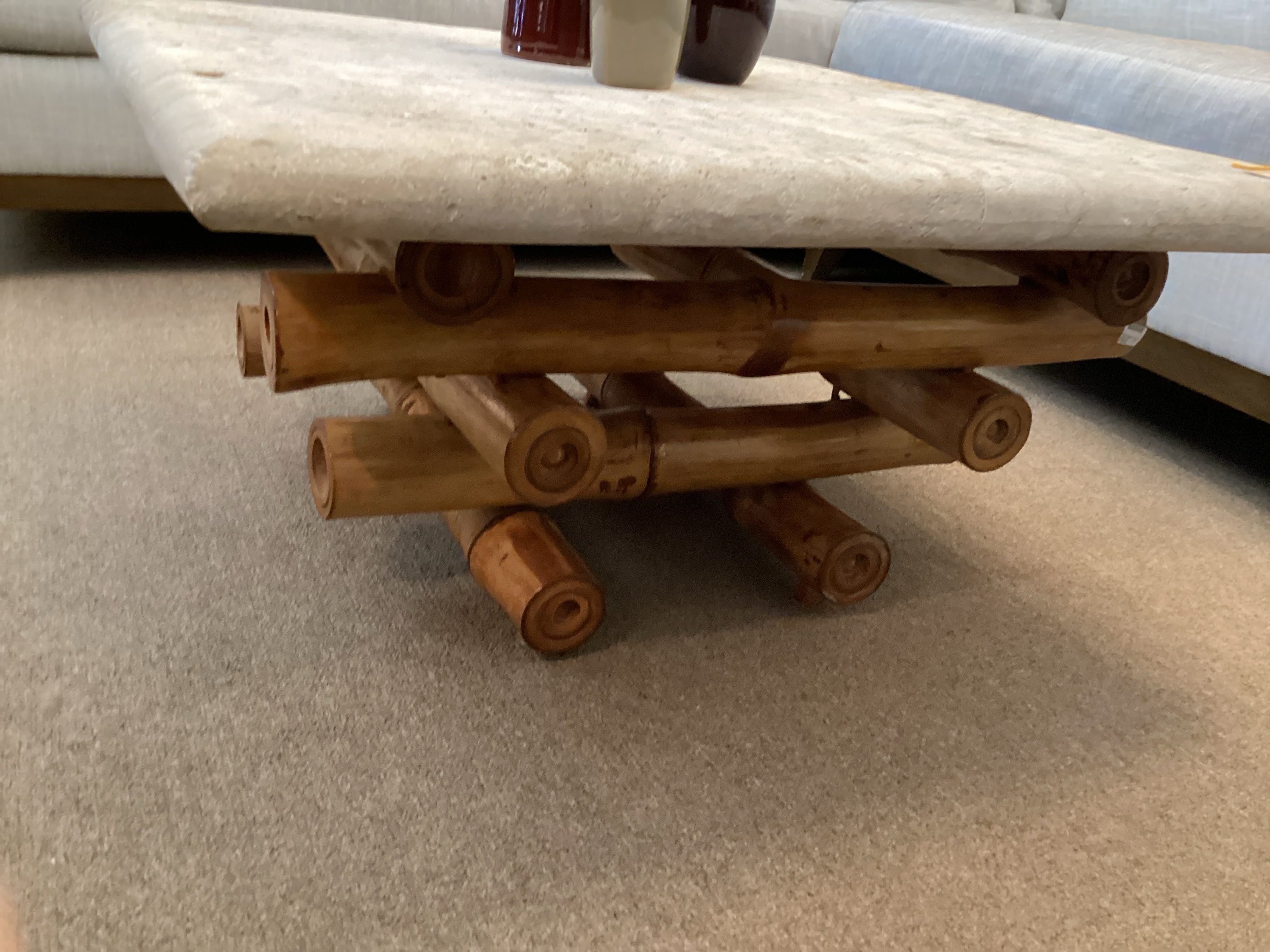 Budji Layug Style Stone Top Bamboo Coffee Table