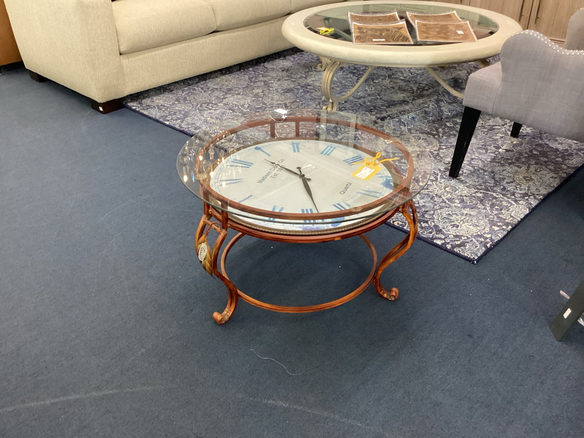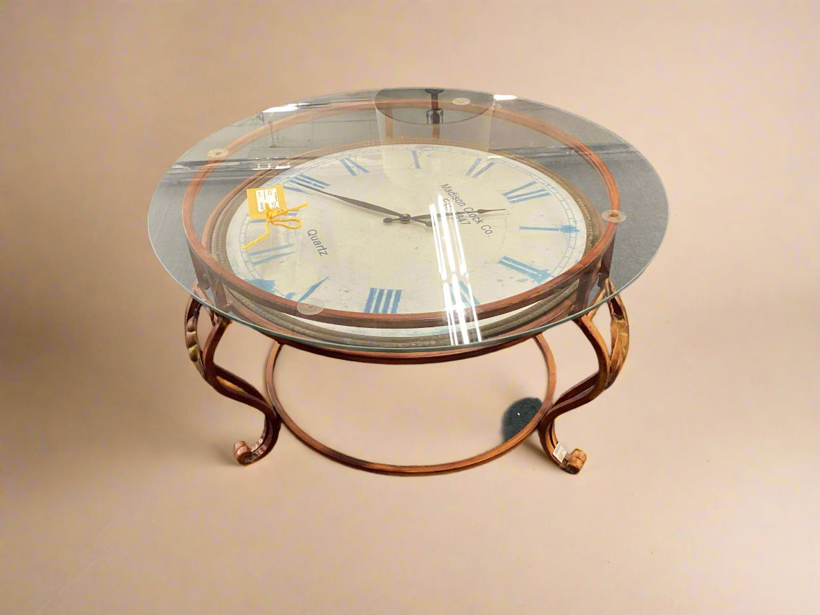 Clock Accent Table With Glass Top