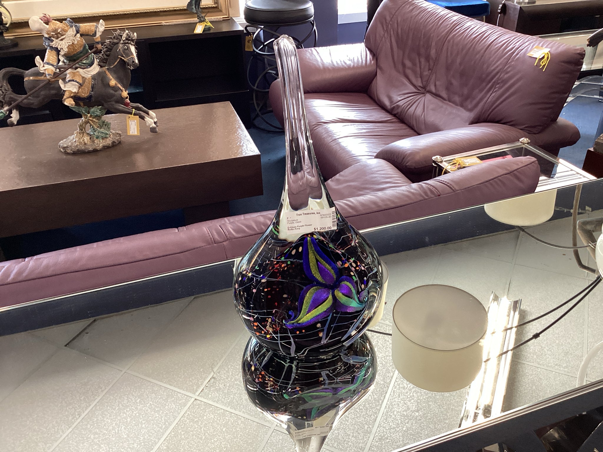 Glass Purple Flower Sculpture