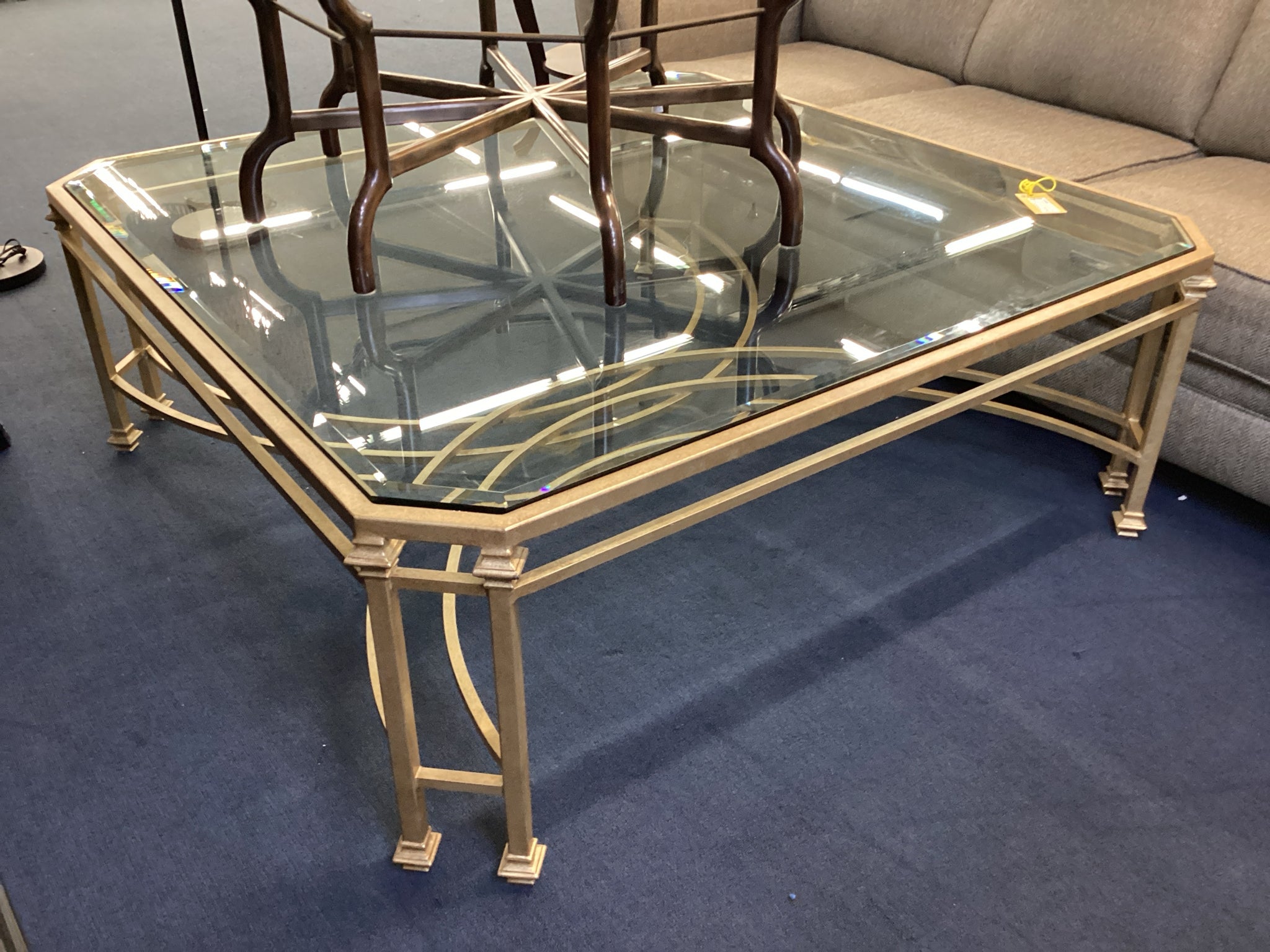 Gold Metal Base Square Extra Large Coffee Table With Glass Top