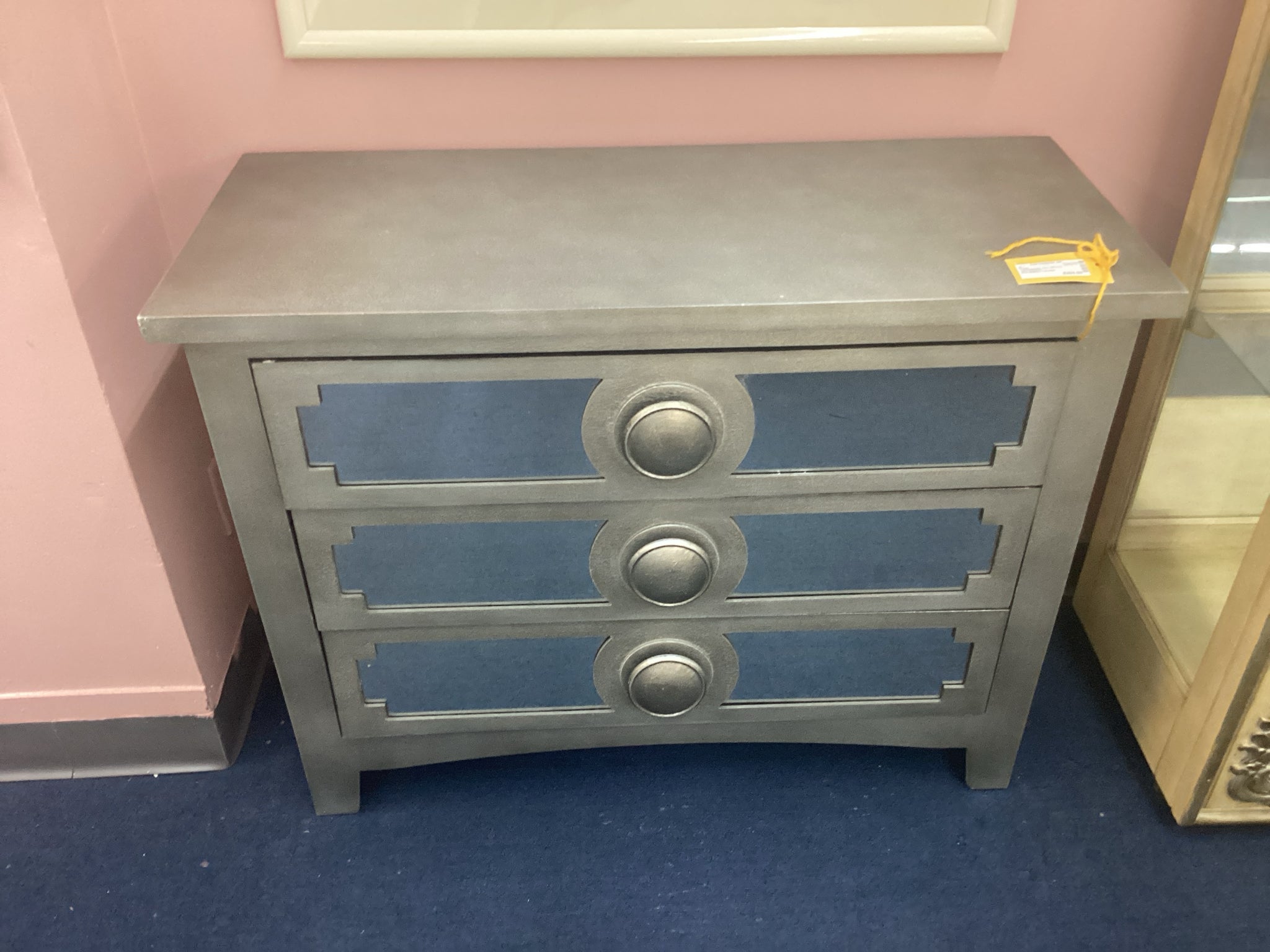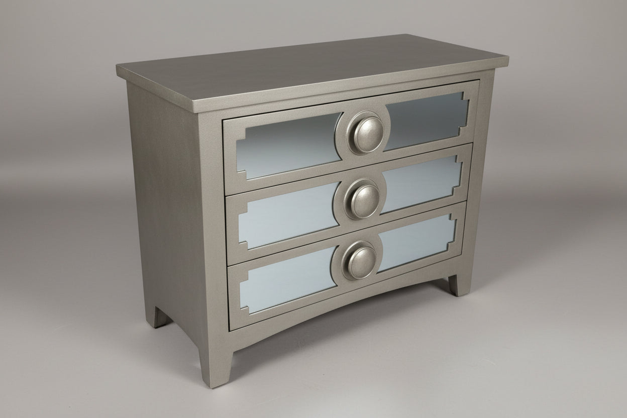 Gray Mirrored Chest With Three Drawers