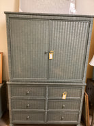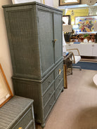 Green Wicker 2 Piece Dresser/TV Armoire 6 Drawers